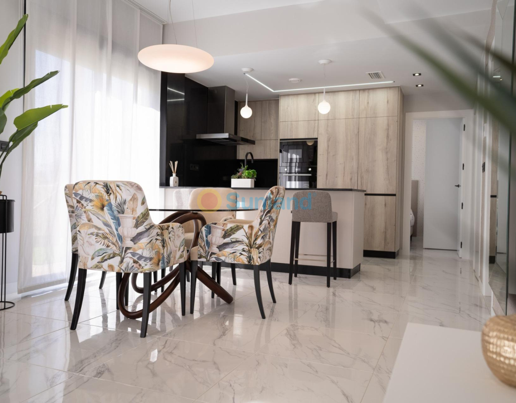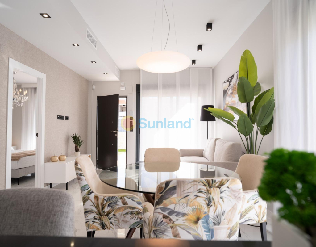 Maisons neuves à Pilar de la Horadada Maisons modernes à proximité de la plage Découvrez ce nouveau complexe résidentiel exclusif à Pilar de la Horadada, qui propose des bungalows à seulement 2 km de la plage. Conçues pour le confort et le style, ces maisons sont une excellente occasion de profiter de la vie sur la Costa Blanca. Des maisons spacieuses et élégantes Ce lotissement propose des maisons de 2 ou 3 chambres avec 2 salles de bains et un parking privé. Vous avez le choix entre Bungalows au rez-de-chaussée avec jardin privé. Bungalows au dernier étage avec solarium privé. Chaque propriété est construite avec des matériaux de haute qualité et des finitions modernes : Pré-installation de l'air conditionné. Menuiserie extérieure en aluminium, double vitrage et volets en aluminium injecté. Porte d'entrée sécurisée pour une plus grande tranquillité d'esprit. Système aérothermique pour une production d'eau chaude efficace. Armoires encastrées dans les chambres. Salles de bains entièrement équipées avec meubles et parois de douche. Caractéristiques communautaires exclusives Ce complexe résidentiel privé dispose d'une belle piscine commune et de jardins paysagers, créant un espace idéal pour la détente. Situé juste à l'extérieur du centre-ville, les résidents peuvent se rendre à pied aux supermarchés, restaurants, bars, écoles et autres services essentiels. Situation privilégiée à Pilar de la Horadada Pilar de la Horadada est une charmante ville espagnole située dans la partie la plus méridionale de la Costa Blanca. Elle offre une rue principale animée avec de nombreux magasins, supermarchés, restaurants et places pittoresques. Les superbes plages de Torre de la Horadada et de Mil Palmeras ne sont qu'à 5 minutes, avec du sable fin et doré et une promenade pittoresque. La ville offre également des pistes cyclables et des sentiers de randonnée bien développés, ainsi qu'une variété d'activités sportives. Accès pratique aux principales destinations Terrain de golf Lo Romero - 5 km (10 minutes en voiture). Aéroport de Corvera (Murcie) - 40 km (40 minutes en voiture). Aéroport d'Alicante - 55 km (55 minutes en voiture). Centres commerciaux (La Zenia Boulevard) - 15 km (15 minutes en voiture). Marina Torre de la Horadada - 3 km (5 minutes en voiture). Réservez la maison de vos rêves dès aujourd'hui Ne manquez pas cette fantastique opportunité de devenir propriétaire d'une maison toute neuve dans un emplacement de choix. Contactez-nous dès aujourd'hui pour plus d'informations et pour organiser une visite !