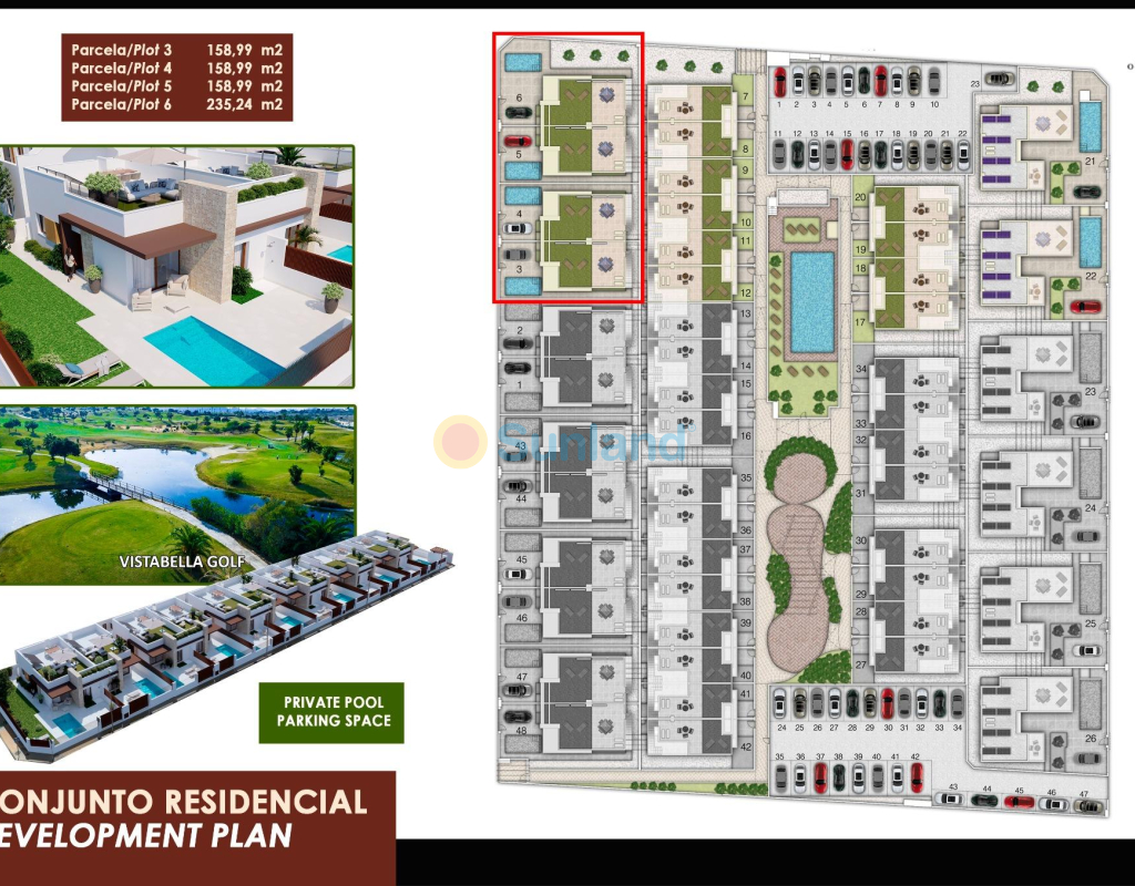 Maisons neuves à Vistabella Golf Resort, Orihuela Développement résidentiel exclusif dans un emplacement de choix pour le golf Découvrez ce nouveau développement à Vistabella Golf Resort, offrant 48 maisons modernes avec un mélange parfait de charme méditerranéen, de chaleur et de modernité. Ce complexe résidentiel unique propose des villas jumelées, des maisons de ville et des villas individuelles, toutes conçues pour le confort, l'efficacité et un mode de vie exclusif. Une variété d'options pour répondre à vos besoins Ce complexe offre trois types de propriétés distinctes, chacune avec des finitions de haute qualité et des caractéristiques d'efficacité énergétique : 12 villas jumelées avec 2 chambres et 2 salles de bains sur un seul niveau. Piscine privée et parking sur le terrain. Possibilité d'ajouter un solarium moyennant un coût supplémentaire. 3 panneaux solaires photovoltaïques inclus. 30 maisons de ville avec 3 chambres et 3 salles de bains. Plusieurs terrasses et un solarium privé. Piscine communautaire, aire de jeux pour enfants et jardins paysagers. Système aérothermique pour l'efficacité énergétique. 6 villas indépendantes avec 4 chambres, 3 salles de bains et 1 toilette pour les invités. Terrains spacieux de plus de 300 m². Jardin privé, piscine et 8 panneaux solaires photovoltaïques. Toutes les propriétés comprennent : Stores automatisés. Chauffage au sol dans les salles de bains. Climatisation préinstallée. Certificat d'efficacité énergétique A pour une vie durable. Vivre au cœur du Vistabella Golf Resort Situé entre San Miguel de Salinas et Los Montesinos, dans la municipalité d'Orihuela, le Vistabella Golf Resort offre un style de vie haut de gamme dans un cadre naturel. Le terrain de golf 18 trous, par-72, s'étend sur plus de 6 000 mètres et présente des fairways vallonnés, des bunkers stratégiques et des lacs pittoresques, ce qui en fait l'un des terrains les plus agréables et les plus difficiles de la région. Le clubhouse du Vistabella Golf, le restaurant, les bars et les magasins locaux se trouvent à seulement 5 minutes de marche, ce qui permet d'accéder à toutes les nécessités de la vie quotidienne. Excellente connectivité avec les principales destinations San Miguel de Salinas et Los Montesinos - 5 km (5 minutes en voiture). Plages Pavillon Bleu de Guardamar - 15 km (15 minutes en voiture). Aéroport d'Alicante - 55 km (35 minutes en voiture). Aéroport de Corvera Murcia - 65 km (45 minutes en voiture). Trouvez la maison de vos rêves sur la Costa Blanca Que vous soyez à la recherche d'une résidence permanente, d'une maison de vacances ou d'un bien d'investissement, ce projet offre une combinaison imbattable de design moderne, de luxe et d'emplacement. Contactez-nous dès aujourd'hui pour en savoir plus et planifier une visite de votre future maison à Vistabella Golf Resort !