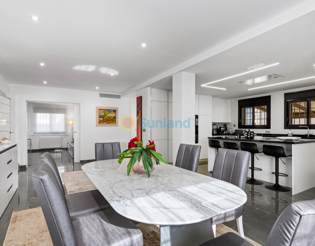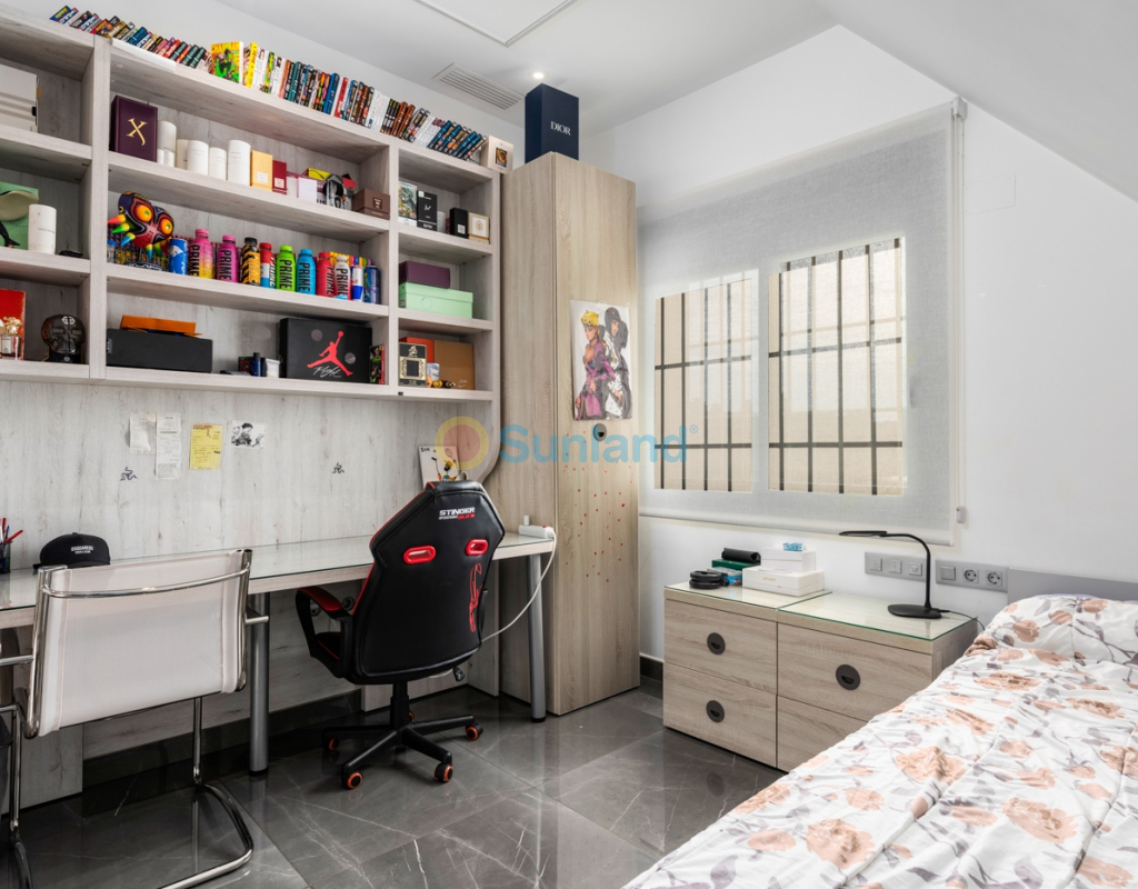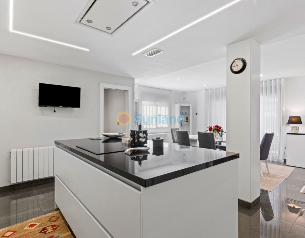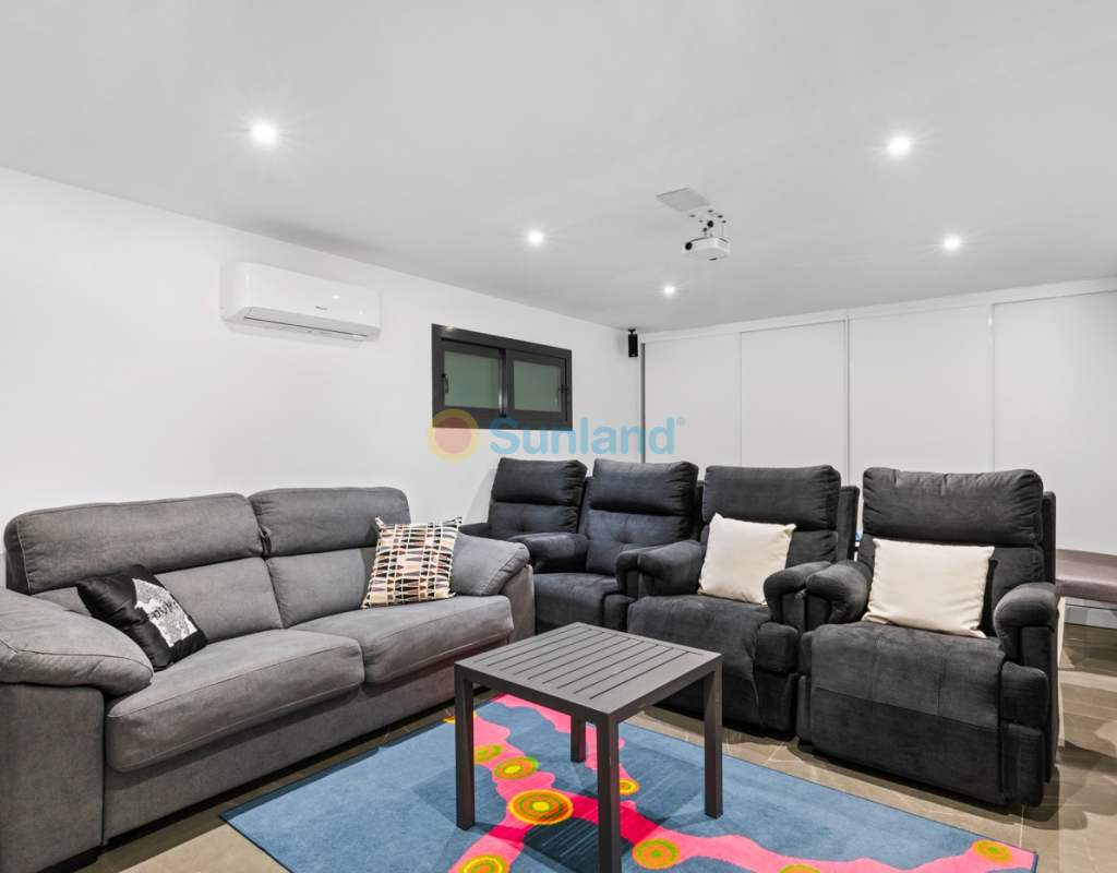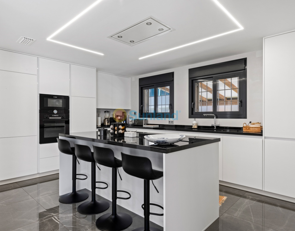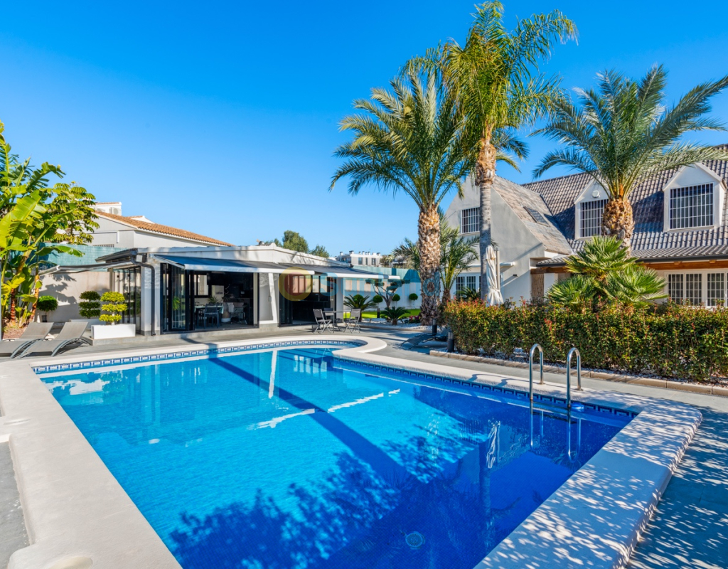 Luxueuse villa de 5 chambres dans l’un des quartiers résidentiels les plus prisés de Playa San Juan, Alicante. La villa est répartie sur trois niveaux et comprend un total de 5 chambres doubles et 3 salles de bain. Au rez-de-chaussée, vous trouverez un grand et lumineux salon, un hall d’entrée, une salle à manger ouverte et une cuisine. La cuisine dispose d’un îlot central et d’un accès direct à la buanderie et au garage. À cet étage, il y a également une salle de bain et une chambre actuellement utilisée comme bureau. Le premier étage se compose de 4 chambres doubles et 2 salles de bain, dont une suite parentale avec une grande salle de bain privative et un dressing. Toutes les autres chambres disposent de placards intégrés. La villa comprend également un sous-sol avec un débarras et une salle de cinéma. Elle est équipée de la climatisation réversible (chaud/froid) dans toute la maison, du chauffage central au gaz, d’un système domotique et d’une porte d’entrée intelligente qui peut être ouverte avec un code ou une clé. À l’entrée, un interrupteur central permet de contrôler tous les volets de la maison. Dans le jardin, vous trouverez une magnifique piscine ainsi qu’une cuisine extérieure équipée d’un barbecue, d’un évier, d’un réfrigérateur et de placards. Un espace repas y est également aménagé. Derrière la cuisine extérieure se trouve une salle de bain pour les invités. Le jardin dispose également d’un parking pour 3 voitures en plus du grand garage. La porte du garage ainsi que le portail donnant sur la rue sont automatiques. De plus, il y a une grande zone avec du gazon artificiel, idéale pour un espace de jeux. Un jardin d’herbes aromatiques ainsi qu’une terrasse couverte avec un coin salon complètent les extérieurs. La villa est située dans un quartier exclusif d’Alicante, à proximité de toutes les commodités.