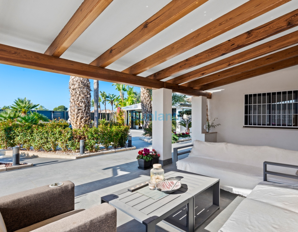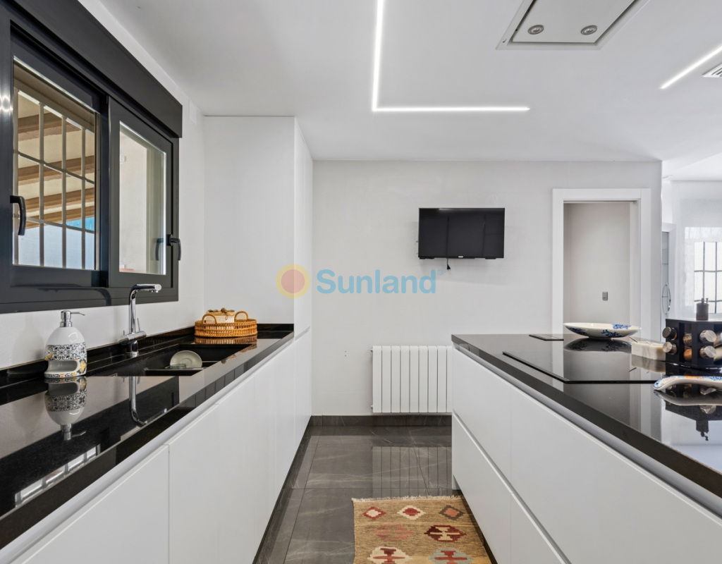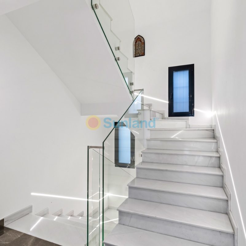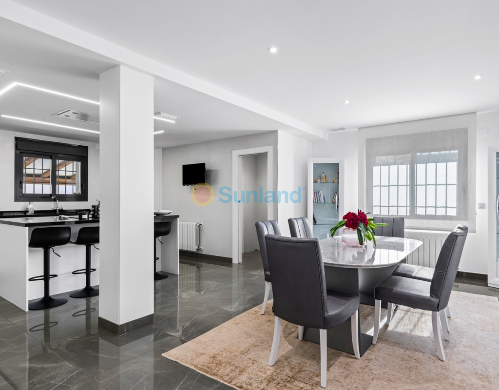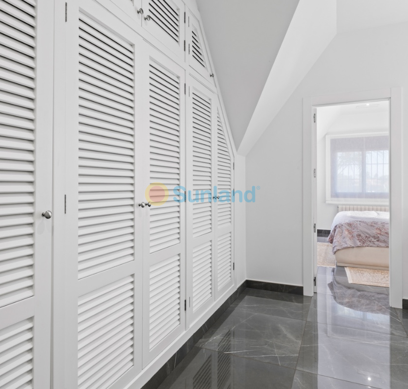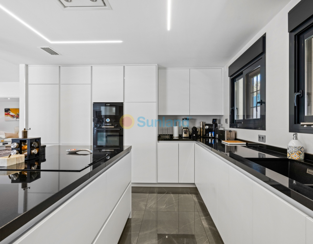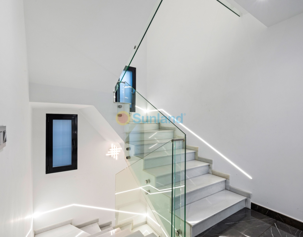 Luxueuse villa de 5 chambres dans l’un des quartiers résidentiels les plus prisés de Playa San Juan, Alicante. La villa est répartie sur trois niveaux et comprend un total de 5 chambres doubles et 3 salles de bain. Au rez-de-chaussée, vous trouverez un grand et lumineux salon, un hall d’entrée, une salle à manger ouverte et une cuisine. La cuisine dispose d’un îlot central et d’un accès direct à la buanderie et au garage. À cet étage, il y a également une salle de bain et une chambre actuellement utilisée comme bureau. Le premier étage se compose de 4 chambres doubles et 2 salles de bain, dont une suite parentale avec une grande salle de bain privative et un dressing. Toutes les autres chambres disposent de placards intégrés. La villa comprend également un sous-sol avec un débarras et une salle de cinéma. Elle est équipée de la climatisation réversible (chaud/froid) dans toute la maison, du chauffage central au gaz, d’un système domotique et d’une porte d’entrée intelligente qui peut être ouverte avec un code ou une clé. À l’entrée, un interrupteur central permet de contrôler tous les volets de la maison. Dans le jardin, vous trouverez une magnifique piscine ainsi qu’une cuisine extérieure équipée d’un barbecue, d’un évier, d’un réfrigérateur et de placards. Un espace repas y est également aménagé. Derrière la cuisine extérieure se trouve une salle de bain pour les invités. Le jardin dispose également d’un parking pour 3 voitures en plus du grand garage. La porte du garage ainsi que le portail donnant sur la rue sont automatiques. De plus, il y a une grande zone avec du gazon artificiel, idéale pour un espace de jeux. Un jardin d’herbes aromatiques ainsi qu’une terrasse couverte avec un coin salon complètent les extérieurs. La villa est située dans un quartier exclusif d’Alicante, à proximité de toutes les commodités.