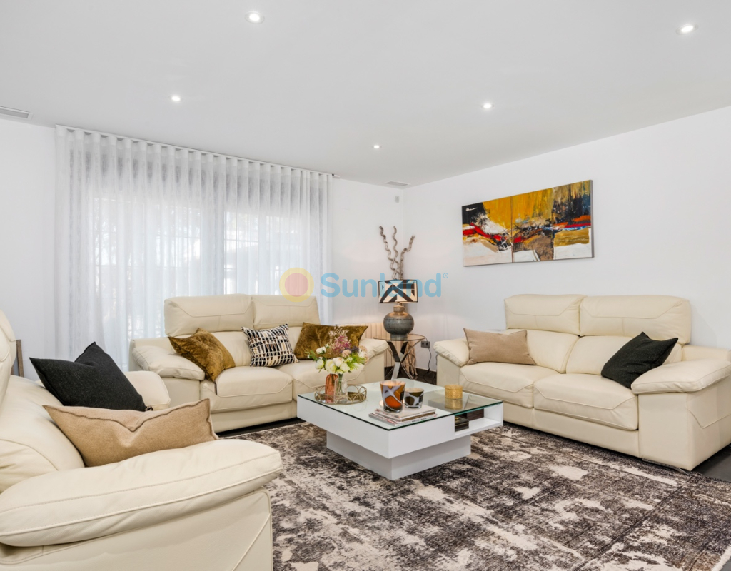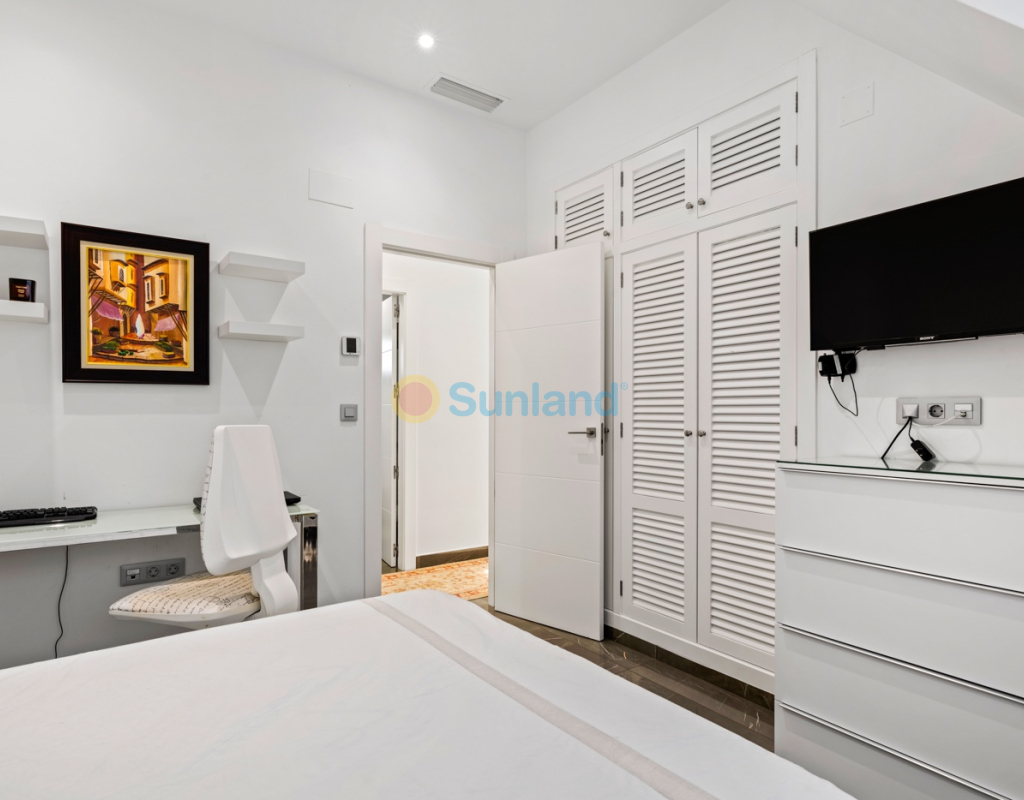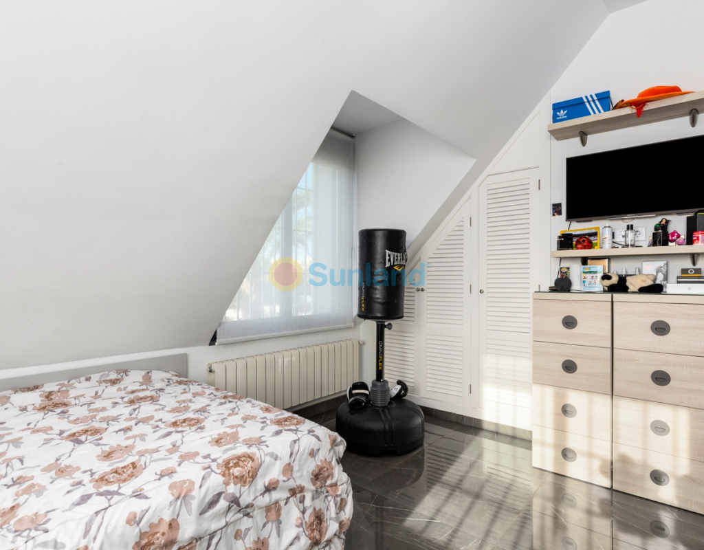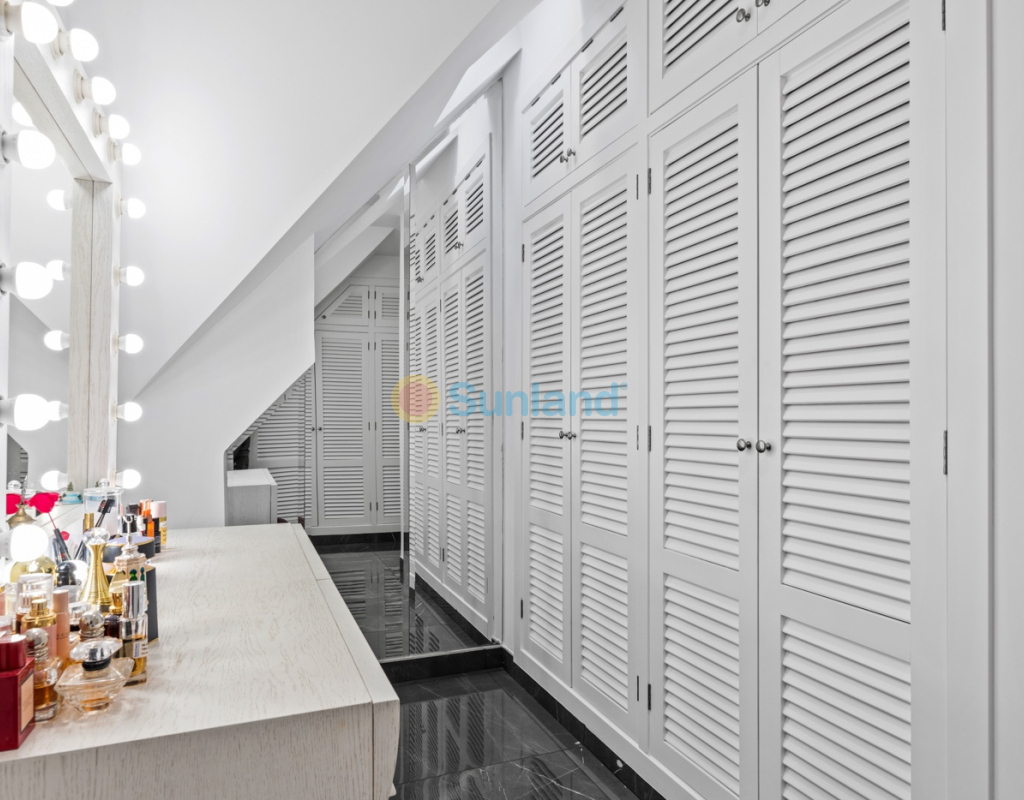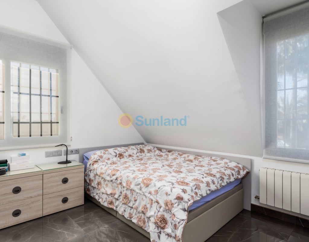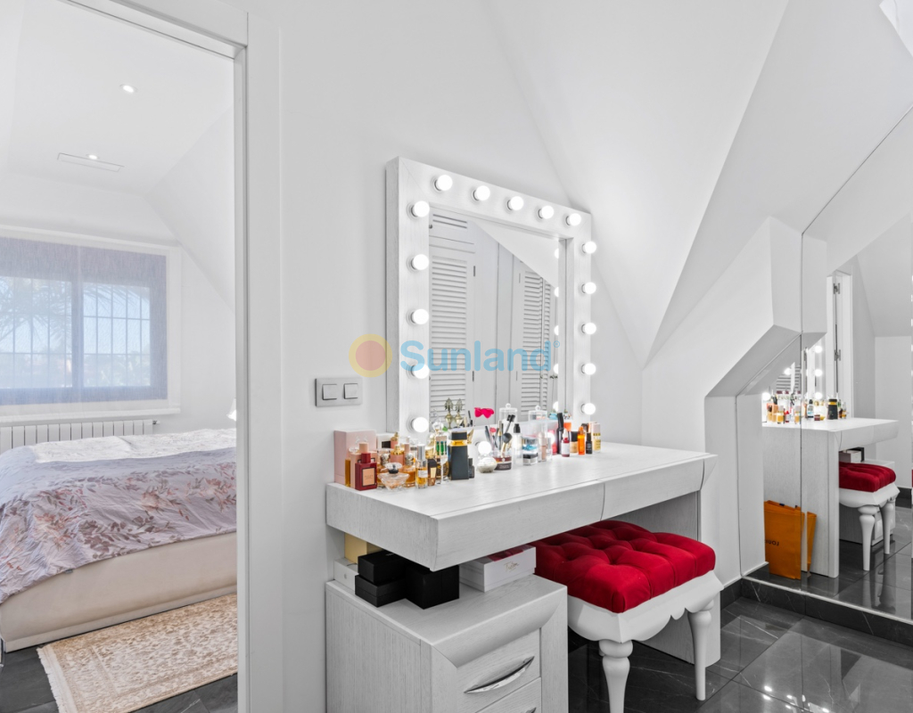Luxueuse villa de 5 chambres dans l’un des quartiers résidentiels les plus prisés de Playa San Juan, Alicante. La villa est répartie sur trois niveaux et comprend un total de 5 chambres doubles et 3 salles de bain. Au rez-de-chaussée, vous trouverez un grand et lumineux salon, un hall d’entrée, une salle à manger ouverte et une cuisine. La cuisine dispose d’un îlot central et d’un accès direct à la buanderie et au garage. À cet étage, il y a également une salle de bain et une chambre actuellement utilisée comme bureau. Le premier étage se compose de 4 chambres doubles et 2 salles de bain, dont une suite parentale avec une grande salle de bain privative et un dressing. Toutes les autres chambres disposent de placards intégrés. La villa comprend également un sous-sol avec un débarras et une salle de cinéma. Elle est équipée de la climatisation réversible (chaud/froid) dans toute la maison, du chauffage central au gaz, d’un système domotique et d’une porte d’entrée intelligente qui peut être ouverte avec un code ou une clé. À l’entrée, un interrupteur central permet de contrôler tous les volets de la maison. Dans le jardin, vous trouverez une magnifique piscine ainsi qu’une cuisine extérieure équipée d’un barbecue, d’un évier, d’un réfrigérateur et de placards. Un espace repas y est également aménagé. Derrière la cuisine extérieure se trouve une salle de bain pour les invités. Le jardin dispose également d’un parking pour 3 voitures en plus du grand garage. La porte du garage ainsi que le portail donnant sur la rue sont automatiques. De plus, il y a une grande zone avec du gazon artificiel, idéale pour un espace de jeux. Un jardin d’herbes aromatiques ainsi qu’une terrasse couverte avec un coin salon complètent les extérieurs. La villa est située dans un quartier exclusif d’Alicante, à proximité de toutes les commodités.