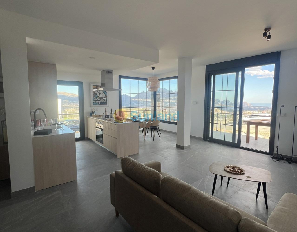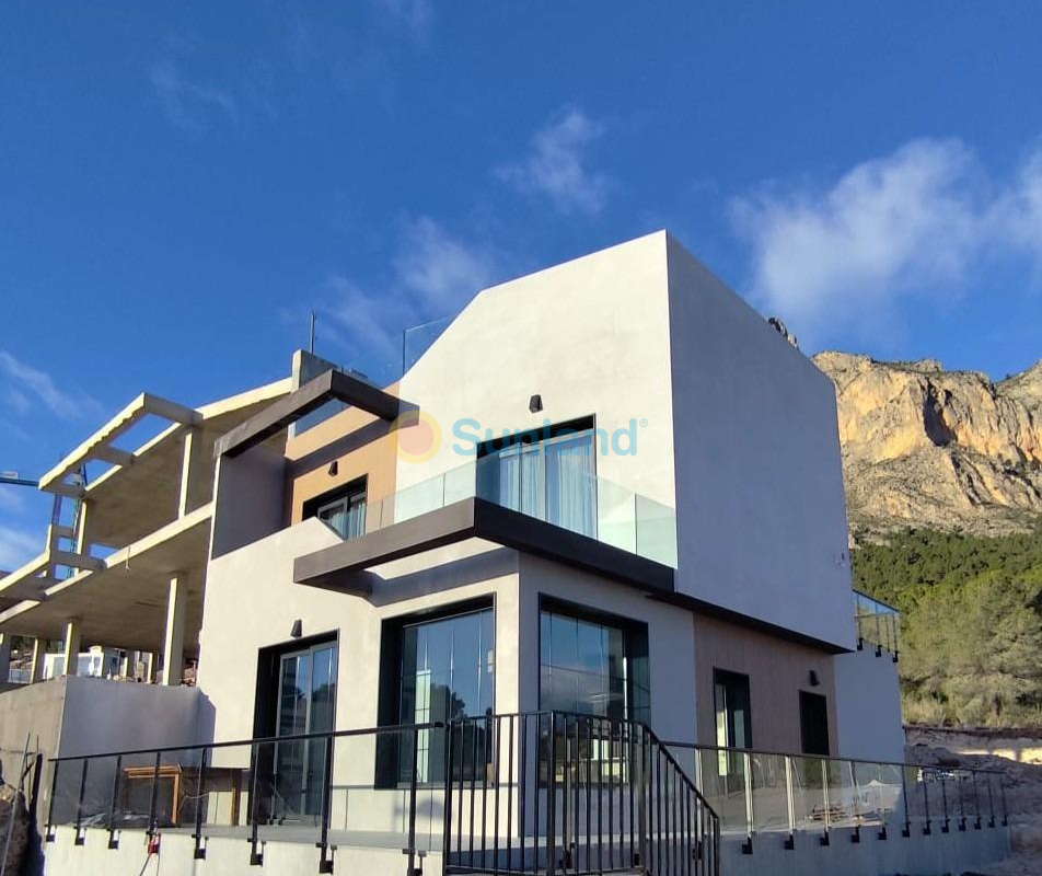 VILLAS JUMELÉES NEUVES À POLOP Nouvelle construction de villas jumelées avec plusieurs terrasses et solarium, entièrement clôturées, avec parking pour véhicules et piscine privée à Polop. Propriétés modernes avec 3 chambres spacieuses avec armoires encastrées (la principale au rez-de-chaussée, avec salle de bain et dressing en suite), 2 salles de bain spacieuses, grand salon-salle à manger avec cuisine ouverte, terrasses spacieuses. Cuisine équipée d'éléments bas et de plans de travail en pierre, avec plaque vitrocéramique, four, hotte aspirante, réfrigérateur, lave-linge, lave-vaisselle et chauffage aérothermique. Premières qualités : menuiserie intérieure en bois et stratifiés laqués blancs, menuiserie extérieure en pvc gris anthracite avec double vitrage et rupture de pont thermique, et stores automatiques à lamelles aluminium, sols céramiques de 1ère qualité antidérapants, murs lisses, porte blindée avec 5 points d'ancrage, grandes armoires encastrées. La ville de Polop offre une gamme étonnante d'options pour les amateurs de grands espaces entourés de nature et d'une paix inégalée. La municipalité jouit d'un climat méditerranéen avec des températures plus fraîches et un air plus pur. Elle est située à moins de 10 kilomètres de Benidorm, d'Altea et de leurs plages. Elle s'étend des rivières Guadalest et Algar jusqu'à la ville de Villajoyosa, en passant par les plages d'Albir et de Benidorm ; à l'intérieur des terres, elle est bordée par Callosa et Guadalest.