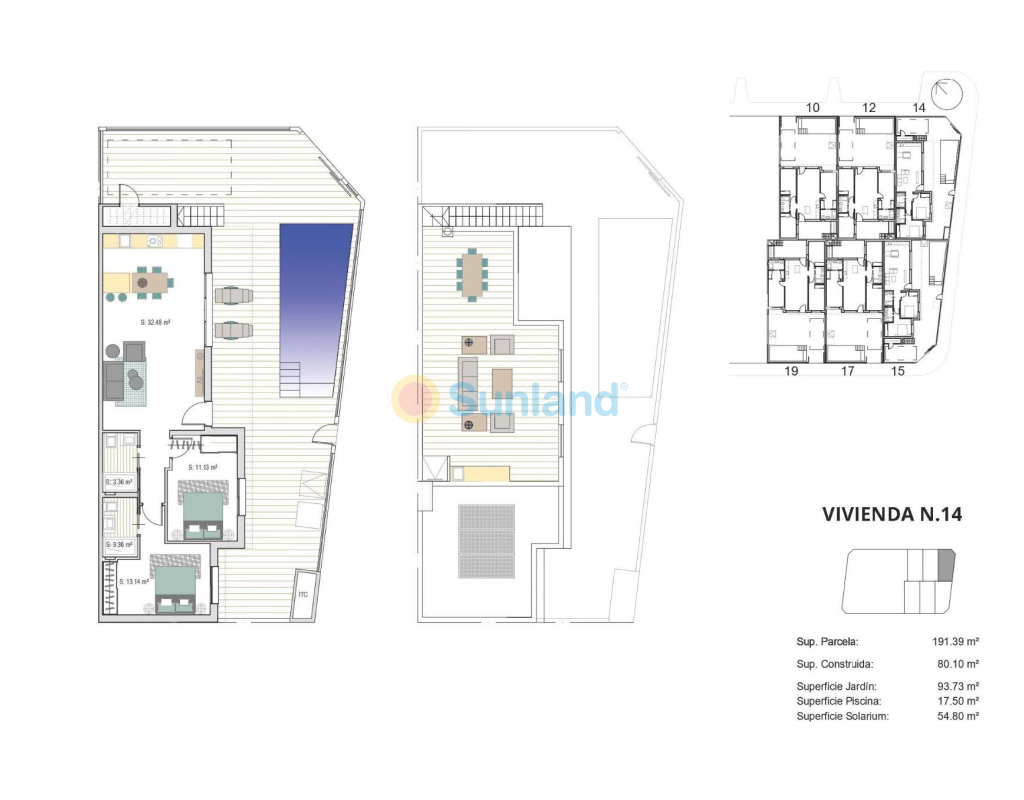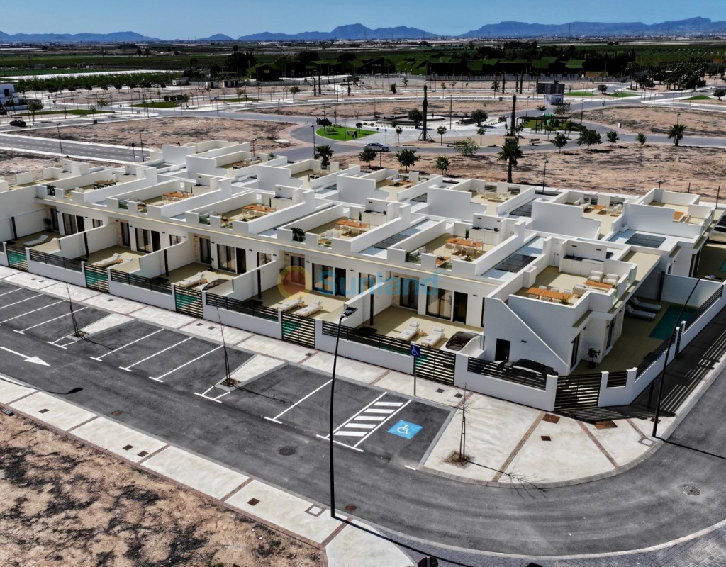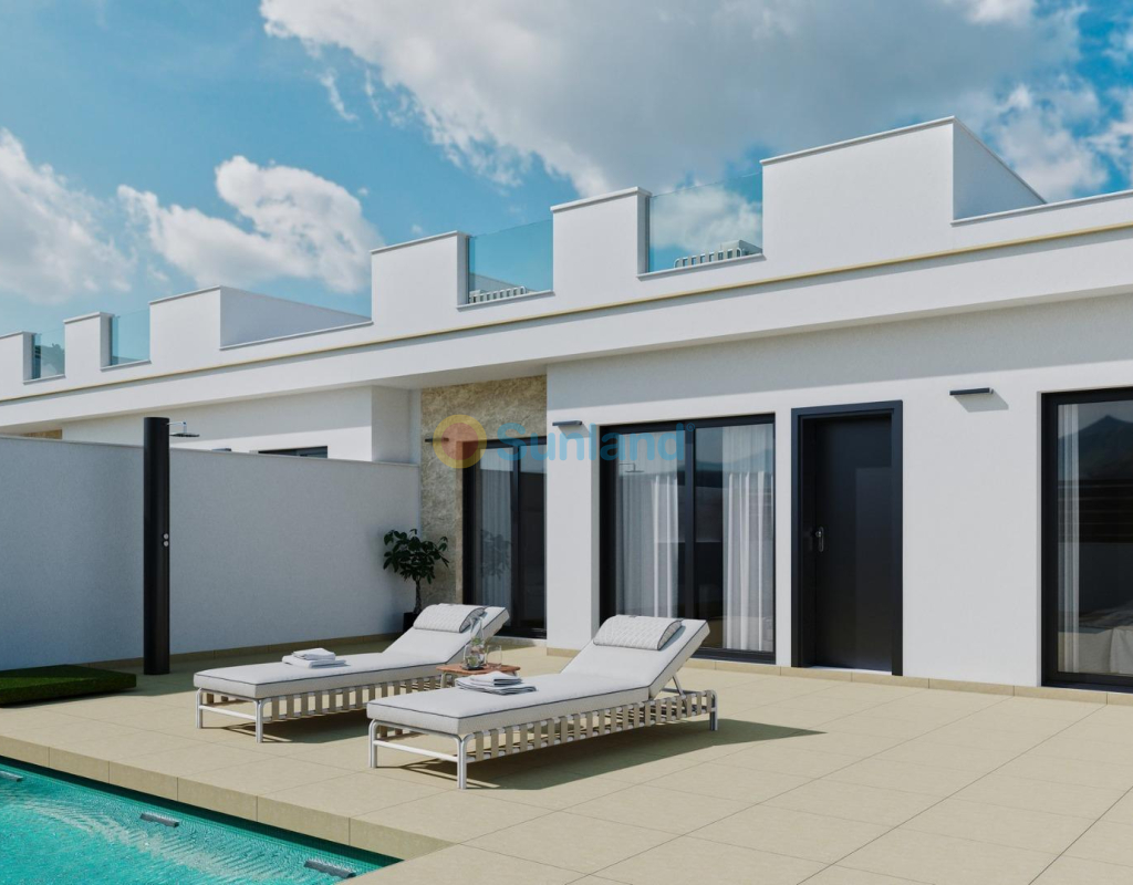 Villas jumelées et semi-détachées à Roldán, Murcie, Espagne Villas modernes de plain-pied avec solarium et piscine privée Découvrez ce projet exclusif de villas jumelées et mitoyennes de plain-pied à Roldán (Murcie), conçues pour le confort, le style et l'efficacité énergétique. Avec des options de 2 ou 3 chambres et 2 salles de bains, chaque propriété dispose d'un solarium privé, d'une piscine et d'un parking sur le terrain, idéal pour profiter du climat méditerranéen tout au long de l'année. Situé dans un complexe fermé avec contrôle de sécurité, ce projet garantit l'intimité et la tranquillité, tout en étant proche de tous les services essentiels, des parcs, des installations sportives et des prestigieux terrains de golf. Caractéristiques de haute qualité et conception fonctionnelle Chaque villa a été construite avec des matériaux de première qualité pour offrir une maison moderne et confortable : Menuiserie extérieure en PVC avec rupture de pont thermique et double vitrage. Cuisine entièrement équipée avec des éléments de grande capacité et des produits blancs inclus. Salles de bains élégantes avec meubles suspendus, miroir avec éclairage LED et écrans de douche. Porte d'entrée sécurisée pour la tranquillité d'esprit. Pré-installation pour air conditionné. 3 panneaux solaires photovoltaïques (1,5 kW) pour une plus grande efficacité énergétique. Cuisine d'été sur le solarium avec évier et prise pour réfrigérateur. Emplacement stratégique à Roldán, Murcie Roldán est un charmant village traditionnel qui jouit d'une situation privilégiée dans la région de Murcie. Il dispose de toutes les commodités essentielles telles que des supermarchés, des restaurants, des bars, des cliniques, des pharmacies, des stations-service et plus encore. De plus, ce lotissement se trouve à quelques minutes des meilleurs terrains de golf de la région, tels que La Torre Golf et Terrazas Golf, offrant une expérience unique aux amateurs de golf. Distances des principaux points d'intérêt : Aéroport de Murcia-Corvera - 15 km (15 minutes en voiture). Plages de Mar Menor - 15 km (20 minutes en voiture). Terrains de golf La Torre et Terrazas - moins de 5 km. Centre ville de Murcie - 30 km (30 minutes en voiture). Une maison méditerranéenne parfaite Qu'il s'agisse d'une résidence permanente, d'une maison de vacances ou d'un bien d'investissement, ces villas à Roldan offrent la combinaison parfaite d'un design moderne, d'un emplacement de choix et d'une qualité de vie. Contactez-nous dès aujourd'hui pour plus d'informations ou pour organiser une visite de votre future maison à Roldán.