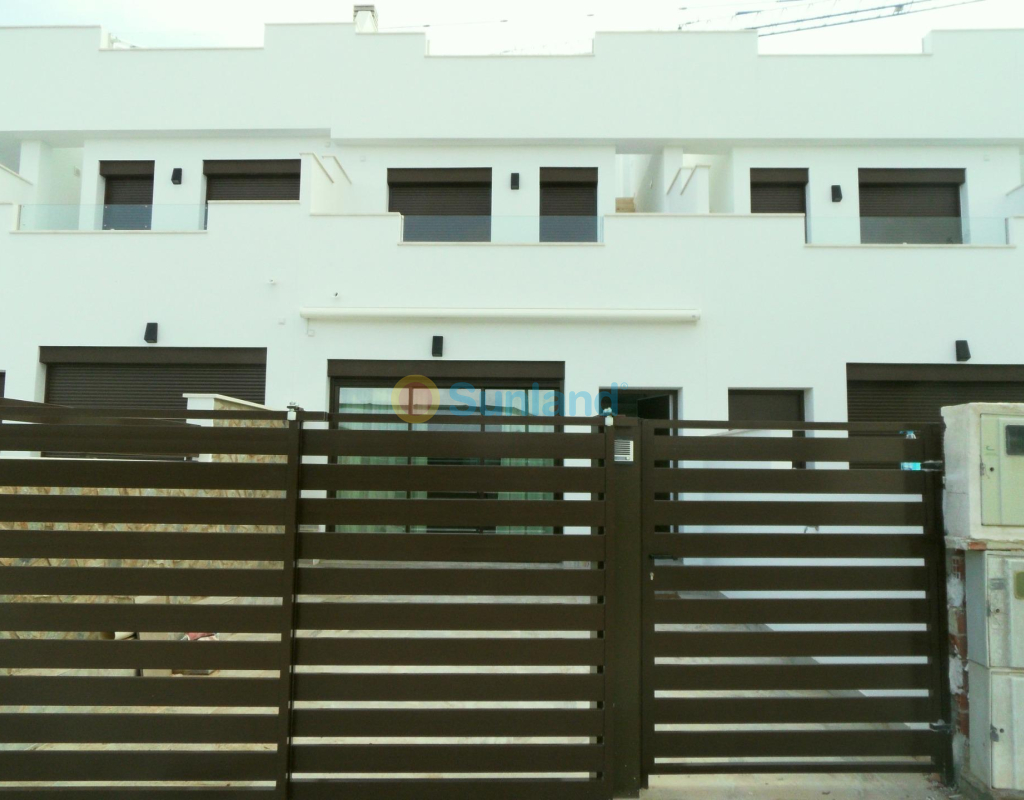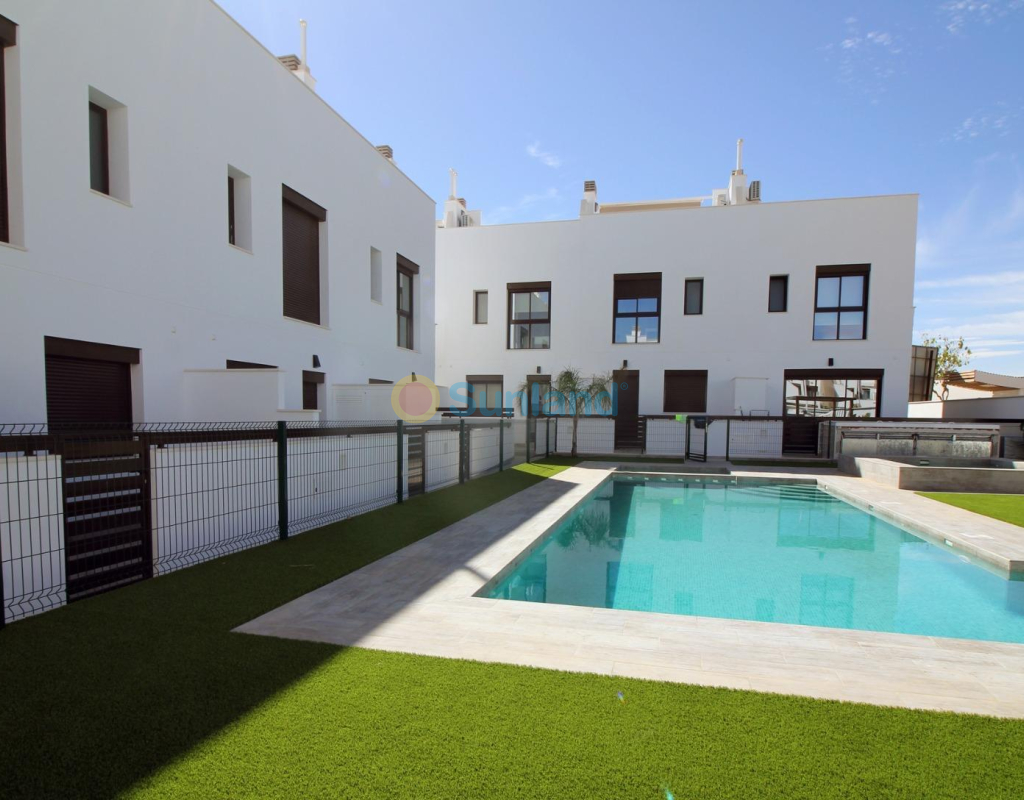 MAISON DE VILLE JUMELÉE NOUVELLEMENT CONSTRUITE À PILAR DE LA HORADADA Nouvelles maisons de ville modernes construites dans une partie calme de Pilar de la Horadada avec la proximité de tout ce dont vous avez besoin. Les maisons ont 3 chambres à coucher, 2 salles de bains, une cuisine ouverte, un salon avec un accès direct à la piscine, une terrasse à l'arrière avec un espace de stationnement, une terrasse et un grand toit solarium. Pilar de la Horadada est un village espagnol typique dans la partie la plus méridionale de la Costa Blanca. La grande rue principale a des supermarchés, beaucoup de magasins, des restaurants et des bars et quelques belles places. Les belles plages de Torre de la Horadada et de Mil Palmeras, avec leur sable fin et leur promenade, ne sont qu'à 5 minutes. Les aéroports de Corvera (Murcie) et d'Alicante sont respectivement à 40 et 55 minutes.