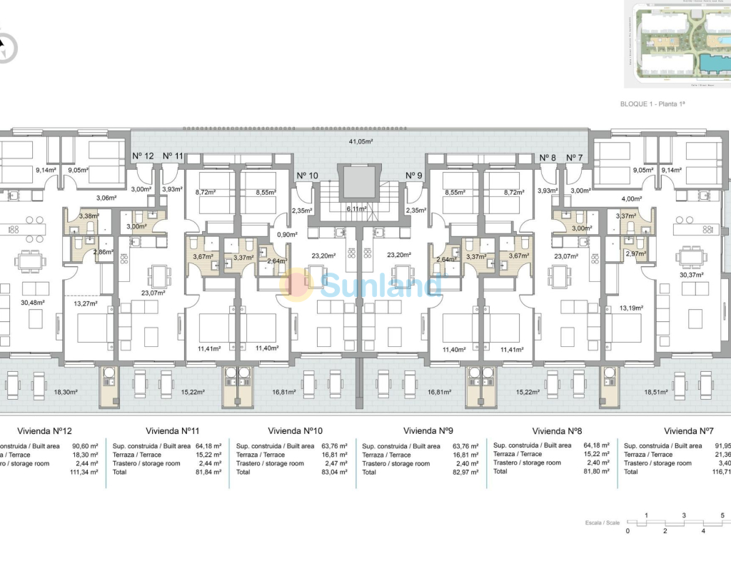 NOUVEAU COMPLEXE RÉSIDENTIEL À PILAR DE LA HORADADA Nouvelle construction résidentielle d'appartements et de penthouses avec des finitions exceptionnelles à Pilar de la Horadada. Les appartements du rez-de-chaussée sont dotés de jardins privés, ceux de l'étage intermédiaire de grandes terrasses et les penthouses du dernier étage de solariums privés. La cuisine est livrée entièrement meublée, laissant suffisamment d'espace pour que vous puissiez choisir les appareils électroménagers selon vos préférences. Seuls des matériaux nobles ont été utilisés, comme les menuiseries intérieures entièrement en bois et les fenêtres extérieures en Climalit/aluminium, idéales tant pour leur design que pour le haut niveau thermo-acoustique qu'elles présentent. Toutes les terrasses sont orientées vers le sud. Portails automatiques dans la résidence, tant pour l'accès des piétons que pour celui des véhicules. L'immeuble est entouré de jardins, il disposera également d'une piscine commune, d'un parking à l'intérieur du complexe et chaque propriété dispose de son propre local de stockage privé. Dans les environs de ce complexe résidentiel, vous trouverez toutes les facilités des transports publics, des écoles, des supermarchés, des centres commerciaux, des terrains de golf et de fantastiques parcs municipaux avec leurs aires de jeux pour enfants. Tout est à portée de main pour que vous puissiez profiter d'un excellent emplacement. Pilar de la Horadada est un village espagnol typique situé dans la partie la plus méridionale de la Costa Blanca. La grande rue principale abrite des supermarchés, de nombreux magasins, des restaurants et des bars, ainsi que de jolies places. Les belles plages de Torre de la Horadada et de Mil Palmeras, avec leur promenade de sable fin, ne sont qu'à 5 minutes. Les aéroports de Corvera (Murcia) et d'Alicante sont respectivement à 40 et 55 minutes.