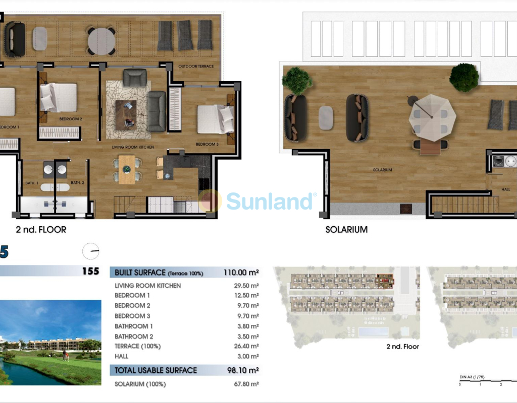 NOUVEAU COMPLEXE RÉSIDENTIEL PRÈS DU GOLF LA SERENA, LOS ALCAZARES Ce magnifique complexe sera composé de 244 appartements de 2 et 3 chambres à coucher, répartis en 8 blocs et 20 villas privées. Appartements modernes sur 3 étages (rez-de-chaussée plus 2), le rez-de-chaussée avec de beaux jardins, certains avec piscine privée et le deuxième étage avec de belles terrasses et des solariums privés. Les appartements d'angle (4 par étage) et les appartements du dernier étage ont 3 chambres à coucher et les autres 2 chambres à coucher. Les propriétés sont orientées à l'est et donnent sur les zones communes et à l'ouest avec une vue magnifique sur le terrain de golf. Le complexe dispose d'une piscine commune et de zones communes. Chaque appartement dispose de sa propre place de parking et d'un espace de stockage privé au sous-sol, inclus dans le prix. Résidence située en première ligne du prestigieux terrain de golf "La Serena Golf". Ce terrain de golf est réputé pour ses lacs et sa végétation qui s'entremêlent avec le terrain de golf. L'eau et les lacs sont présents dans 16 des 18 trous, mais tout le parcours est conçu pour offrir au golfeur des stratégies différentes à chaque trou. Un autre aspect qui rend ce terrain de golf unique est qu'il est relié à pied au centre-ville, ce qui est impossible à trouver dans d'autres lieux de golf et qui nous permet de profiter du calme et de la beauté de la région sans refuser l'accès aux services qu'offre Los Alcázares. Los Alcázares est une zone exceptionnelle sur la Costa Cálida, à seulement 25 minutes de l'aéroport de Murcie et 55 minutes de l'aéroport d'Alicante. La région est reliée par l'autoroute aux villes de Cartagena, Murcia et Alicante et au reste des plages de la Costa Cálida et de la Costa Blanca.