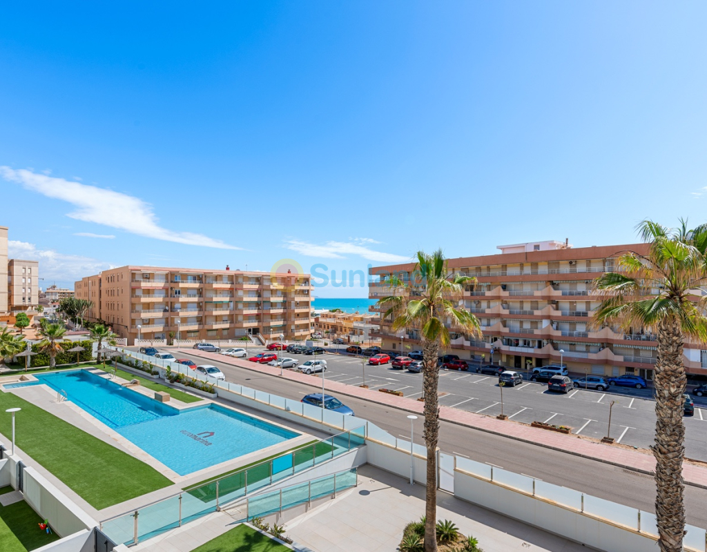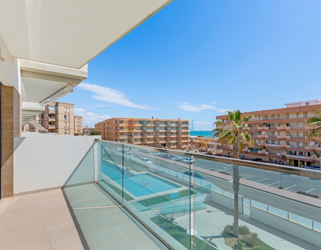 Vivez le rêve méditerranéen à Guardamar del Segura Imaginez vous réveiller chaque matin au son de la mer et de vues panoramiques qui vous invitent à la détente. Cet appartement exclusif de 2 chambres et 2 salles de bains (une en suite) offre exactement cela et bien plus encore. Située à seulement 100 mètres de la plage dans l'une des villes les plus prisées de la Costa Blanca, Guardamar del Segura, cette maison est le refuge idéal pour profiter du style de vie côtier. La cuisine ouverte se connecte harmonieusement avec le salon-salle à manger, créant un espace lumineux et accueillant. Depuis le salon et la chambre principale, vous pourrez profiter d'une vue sur la mer qui transformera votre quotidien en une expérience unique. L'immeuble dispose d'un ascenseur pour votre confort. Vous pourrez également vous détendre dans la piscine commune, profiter du temps en plein air dans l'espace barbecue et profiter d'un garage avec un débarras au sous-sol, offrant sécurité et espace supplémentaire. À quelques pas de la plage et à proximité de toutes les commodités nécessaires, cet appartement allie la tranquillité de l'environnement naturel à la commodité de la vie urbaine. Ne manquez pas l'opportunité de vivre dans ce paradis côtier. Contactez-nous pour plus d'informations et faites de cet appartement votre nouvelle maison !