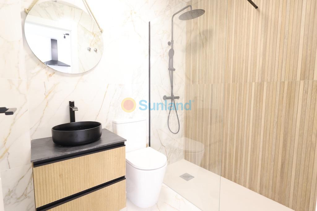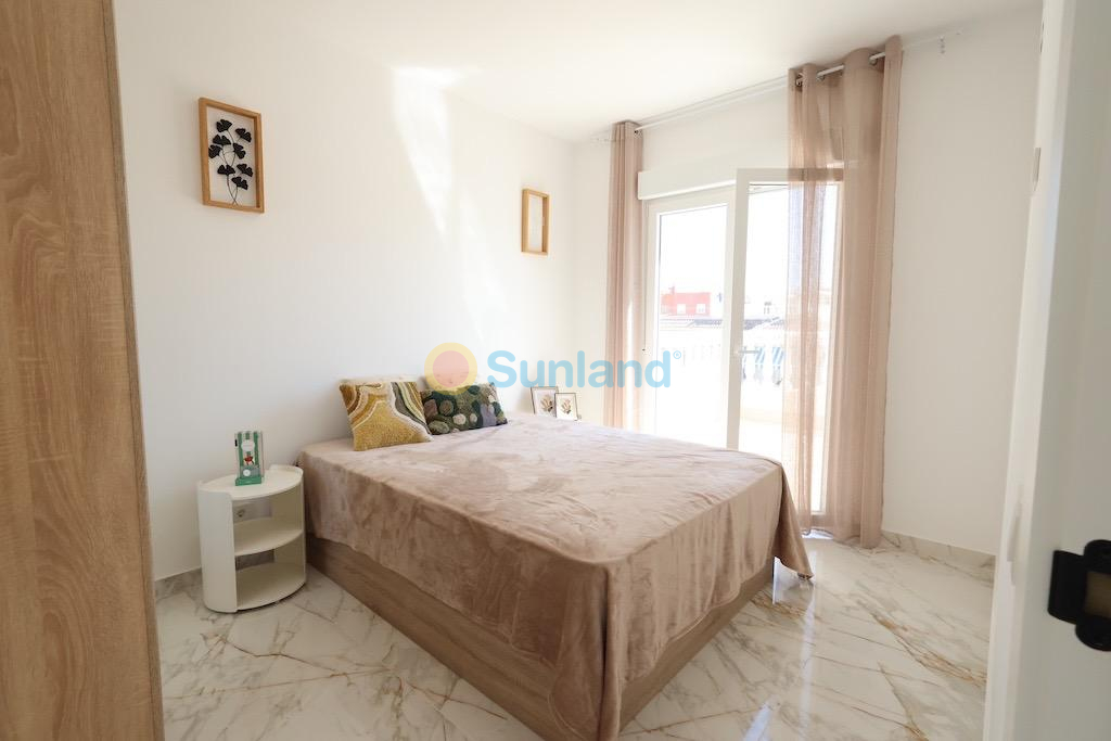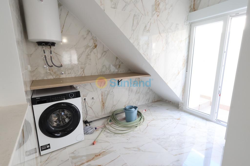 Maison Mitoyenne Rénovée à El Chaparral avec Appartement Indépendant à l'Étage. . Nous vous présentons cette magnifique maison mitoyenne entièrement rénovée et équipée, située dans le quartier paisible d’El Chaparral — idéale comme résidence principale ou comme investissement locatif, que ce soit pour les vacances ou à long terme.. . La propriété offre 88 m2 construits, répartis sur deux niveaux avec entrées indépendantes :. . - Rez-de-chaussée : comprend 2 chambres, 1 salle de bain complète, une cuisine ouverte sur le salon avec buanderie, et un vaste salon-salle à manger lumineux.. - Étage supérieur : avec accès indépendant, dispose de 1 chambre, 1 salle de bain, une cuisine, un salon et une grande terrasse de 14,5 m2, parfaite pour profiter du soleil ou accueillir des invités en toute intimité.. . La maison bénéficie également d’un espace de stationnement privé et d’un jardin entièrement carrelé d’environ 54 m2, idéal pour profiter de l’extérieur sans entretien.. . Située à proximité du nouveau parc et du parc aquatique, cette propriété offre un environnement très attrayant, tant pour y vivre que pour la mettre en location.. La maison est vendue entièrement meublée, avec électroménagers inclus et pré-installation de la climatisation..