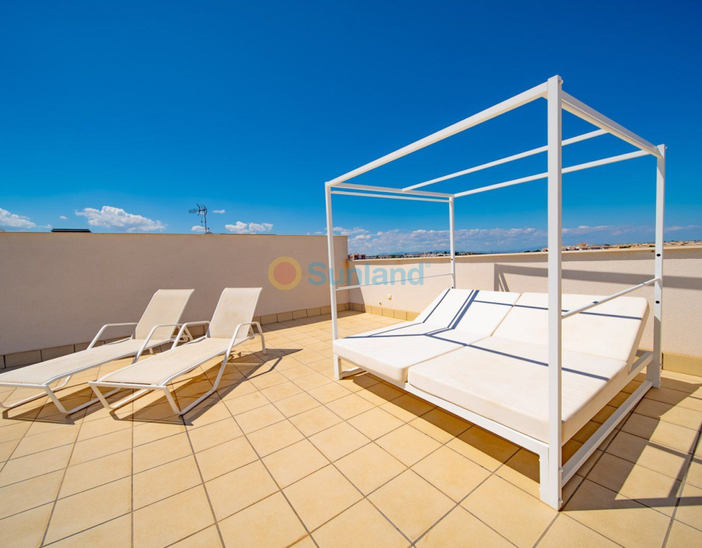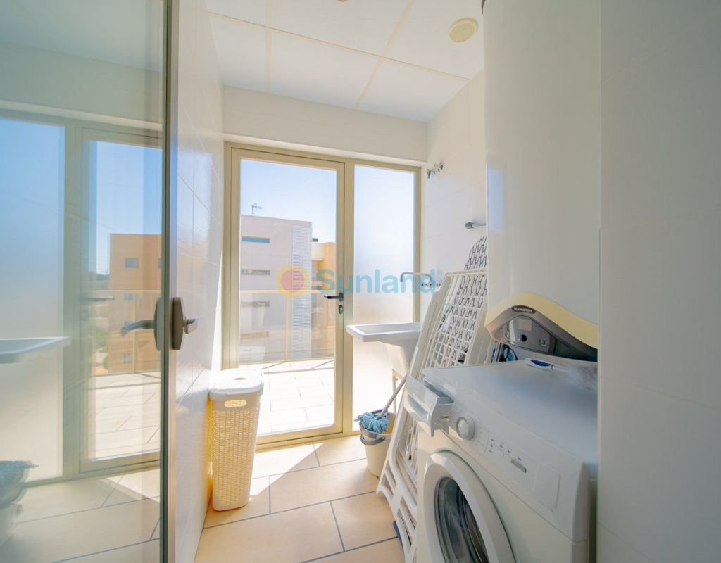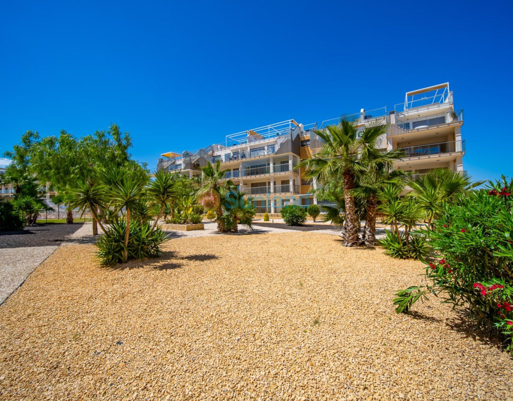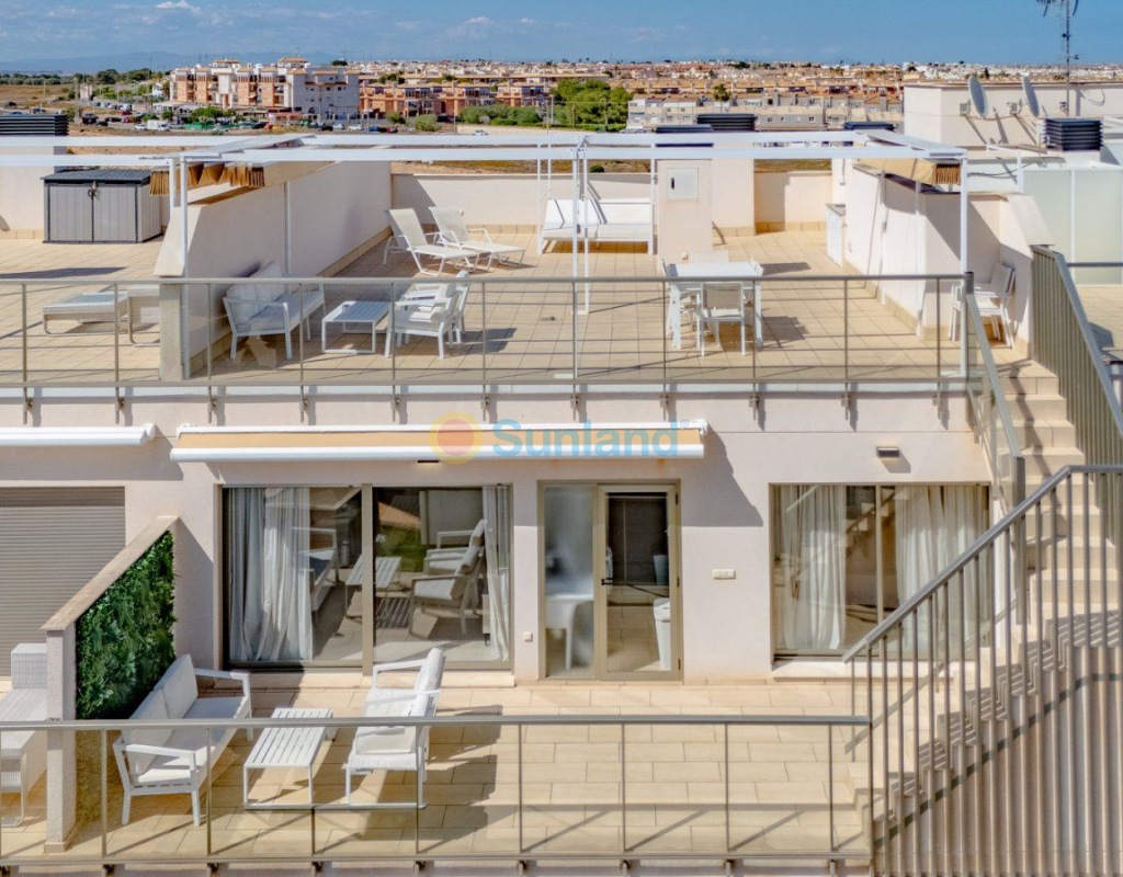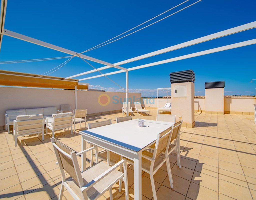 Penthouse avec 3 chambres à Villamartin, Orihuela Costa. Nous vous présentons ce fantastique penthouse situé dans Villamartin Gardens, un complexe résidentiel privé avec piscine commune. Son emplacement est idéal, dans une zone qui offre tout : Commerces, supermarchés, à quelques minutes du centre commercial Zenia Boulevard et du golf de Villamartin. Large choix de restaurants, bars, cafés, pharmacie à proximité. Plages d’Orihuela Costa à seulement 5 minutes en voiture. Caractéristiques principales 3 chambres et 2 salles de bains (dont une en suite) Chauffage au sol dans les salles de bains Grand salon-salle à manger Cuisine avec bar américain Buanderie Terrasse de 22 m² Orientation sud Solarium privé de 85 m² Parking souterrain Débarras 2 piscines communautaires La propriété est vendue meublée et avec des électroménagers de qualité. Elle comprend des finitions haut de gamme et a été utilisée comme résidence secondaire, donc en excellent état.