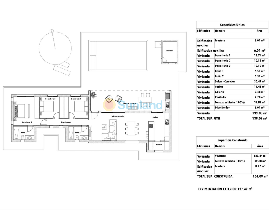 Villas neuves situées dans la commune d'Aspe. Villas neuves avec plusieurs modèles au choix, comprenant 2, 3 ou 4 chambres, sur un ou deux étages et construites avec dalle ou structure : le prix exact sera calculé en fonction du modèle et du terrain choisi. Toutes les villas sont construites sur des terrains rustiques de plus de 10 000 m2, dont environ 2 500 m2 seront clôturés. Les villas disposent d'une cuisine américaine avec salon, de placards intégrés, d'une piscine privée, d'un porche, d'un débarras et d'une place de parking extérieure. Plusieurs terrains sont disponibles, le prix a été calculé sur la base d'un terrain de 77 500 euros (si vous choisissez un autre terrain, la différence sera payée ou remboursée en fonction du prix de celui-ci). Réalisé en autopromotion, livraison dans un délai de 12 mois à compter de l'octroi du permis. Si vous recherchez un environnement calme, à proximité de villages typiques espagnols loin de la foule touristique, entouré de montagnes, avec un très grand terrain et à environ 30 minutes de la mer, cette maison est faite pour vous. Aspe est un village espagnol typique avec tous les services nécessaires à la vie quotidienne, entouré de montagnes et avec plusieurs sites naturels à proximité où vous pourrez faire des randonnées ou du VTT. Situé à 25 km de la plage, à 9 km d'Elche et à environ 20 km de l'aéroport d'Alicante.