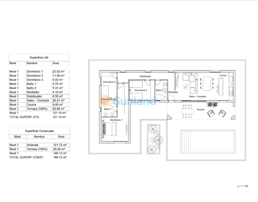 Villas neuves situées à La Romana. Villas neuves avec plusieurs modèles au choix, comprenant 2 ou 3 chambres, sur un ou deux étages et construites avec dalle ou structure : le prix exact sera calculé en fonction du modèle et du terrain choisi. Toutes les villas sont construites sur des terrains rustiques de plus de 10 000 m², dont 2 500 m² seront clôturés. Les villas disposent d'une cuisine américaine avec salon, placards intégrés, piscine privée, porche et place de parking extérieure. Plusieurs terrains sont disponibles, le prix a été calculé sur la base d'un terrain de 62 000 euros (si vous choisissez un autre terrain, la différence sera payée ou remboursée en fonction du prix de celui-ci). Réalisé en autopromotion, livraison dans un délai de 12 mois à compter de l'octroi du permis. Si vous recherchez un environnement calme, à proximité de villages espagnols typiques, loin du tourisme de masse, entouré de montagnes, avec un très grand terrain et à environ 30 minutes de la mer, cette maison est faite pour vous. La Romana est un village espagnol typique avec tous les services nécessaires à la vie quotidienne, entouré de montagnes et de plusieurs sites naturels à proximité où vous pourrez faire des randonnées ou du VTT. Situé à 30 minutes de l'aéroport d'Alicante.
