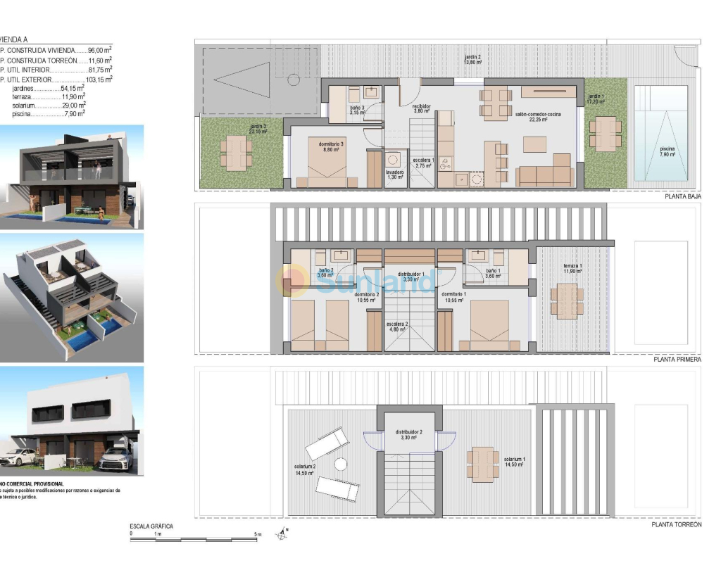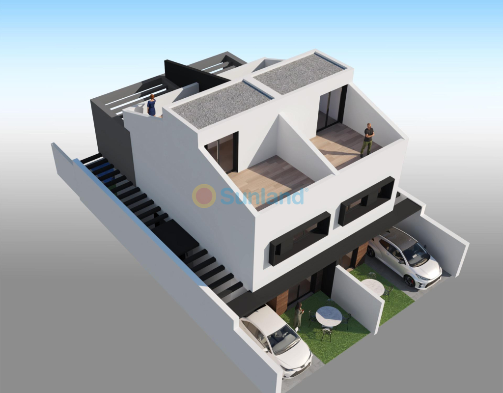 Villas jumelées modernes avec piscine privée près de la mer à Santiago de la Ribera Nouvelle construction exclusive à seulement 1 km de la plage Découvrez ce projet immobilier en édition limitée composé de seulement deux villas jumelées situées à Santiago de la Ribera, une charmante ville côtière de la côte murcienne, connue pour son style de vie décontracté, ses plages propres et son excellent climat tout au long de l'année. Ces nouvelles maisons sont situées à seulement 1 km des rives de la Mar Menor, offrant une combinaison parfaite entre intimité, confort et proximité des services essentiels et des loisirs. Design contemporain et agencement fonctionnel Chaque villa est judicieusement répartie sur deux étages et dispose d'un solarium sur le toit, offrant ainsi un espace généreux pour un mode de vie moderne. Les propriétés comprennent : 3 chambres spacieuses, dont une au rez-de-chaussée 3 salles de bains entièrement équipées, dont deux en suite Un jardin privé et une piscine Une terrasse au premier étage et un solarium sur le toit, idéal pour prendre le soleil ou recevoir des invités Un parking privé sur le terrain, avec accès depuis la rue arrière et une entrée piétonne séparée à l'avant Cette disposition garantit une intimité optimale et un accès facile tout en maximisant l'espace de vie extérieur. Finitions et équipements de haute qualité Construites avec le souci du détail et selon les normes modernes, les maisons comprennent : Menuiserie extérieure en aluminium avec rupture de pont thermique et fenêtres à double vitrage Installation complète de climatisation centralisée Piscine privée incluse avec chaque villa Place de parking sécurisée dans la propriété Ces maisons sont conçues pour offrir un confort optimal tout au long de l'année, que ce soit comme résidence principale, résidence secondaire ou investissement locatif. Emplacement privilégié sur la Costa Cálida Santiago de la Ribera offre un style de vie méditerranéen dynamique avec tout à proximité : Plage (Mar Menor) – 1 km Centre commercial La Ribera – 2 km Roda Golf – 5 km Aéroport de San Javier – 6 km Port de plaisance Lo Pagán – 4 km Centre commercial Dos Mares – 3 km Excellent accès routier à Murcie (40 km) et Carthagène (30 km) Avec sa riche culture locale, ses marchés hebdomadaires, ses promenades en bord de mer et ses possibilités de sports nautiques, Santiago de la Ribera est un cadre idéal pour profiter du meilleur de la Costa Cálida. Faites de la vie au bord de la mer une réalité Ne manquez pas cette occasion rare d'acquérir une villa élégante et neuve dans l'une des zones les plus prisées du littoral de Murcie. Contactez-nous dès maintenant pour obtenir plus d'informations ou pour organiser une visite.