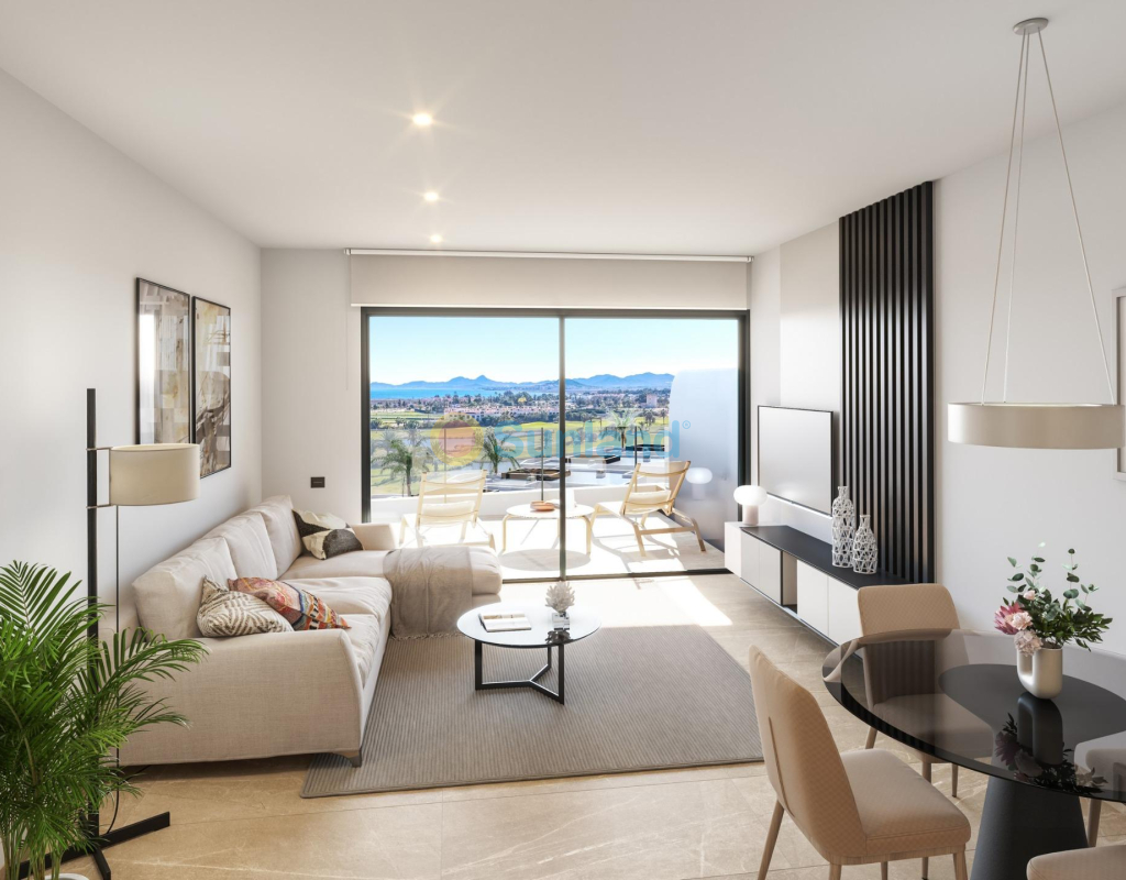 Nouvelle construction résidentielle en première ligne du golf La Serena à Los Alcázares Appartements et villas modernes en bord de golf sur la Costa Cálida Situé à Los Alcázares, une charmante ville côtière de la région de Murcie, ce nouveau complexe résidentiel offre un style de vie haut de gamme en contact direct avec la nature et le golf. Le complexe est situé dans le domaine de La Serena Golf, un parcours 18 trous réputé pour son terrain plat, ses lacs pittoresques et les défis techniques posés par le vent dominant du Levant. Ce complexe résidentiel exclusif comprend 30 appartements modernes et 10 villas de plain-pied, tous conçus pour offrir un maximum de confort et d'élégance, avec des vues panoramiques sur le terrain de golf et les paysages environnants. À seulement 1,7 km de la plage et du centre-ville, le complexe bénéficie d'un emplacement paisible et bien desservi. Distances vers les principaux points d'intérêt : Aéroport international de Murcie : 35 km Aéroport d'Alicante : 95 km Centre commercial Dos Mares : 15 km Puerto Deportivo Los Alcázares : 2 km Roda Golf : 4 km Centre-ville de Carthagène : 25 km Appartements élégants avec terrasses spacieuses ou penthouses avec solariums privés Les immeubles proposent des appartements de 2 ou 3 chambres, disponibles au rez-de-chaussée et aux étages intermédiaires avec de grandes terrasses ou en penthouses avec solariums privés. Chaque appartement dispose d'un accès à un jardin commun de style méditerranéen et à une grande piscine, idéal pour se détendre et se retrouver sous le soleil. Des places de parking dans un garage souterrain et des ascenseurs dans chaque immeuble ajoutent au confort. Villas exclusives de plain-pied avec piscines privées Les 10 villas individuelles comprennent 3 chambres, 2 salles de bains et un WC, le tout de plain-pied, pour une vie harmonieuse entre intérieur et extérieur. Chaque villa dispose d'une piscine privée, d'un jardin, d'un débarras et d'un parking privé. Leur emplacement en première ligne du terrain de golf offre une vue imprenable. Finitions de haute qualité et conception économe en énergie Toutes les maisons comprennent : Menuiserie extérieure en aluminium avec rupture de pont thermique et volets motorisés Éclairage LED et interrupteurs noirs design dans toute la maison Salles de bains équipées avec receveurs de douche en résine et parois en verre Climatisation gainable préinstallée Ascenseurs dans les immeubles Caves dans les villas Cuisine moderne et espaces de vie ouverts Vivez au bord de la mer et de la verdure Ce complexe est idéal pour les amateurs de golf, les passionnés de plage et tous ceux qui recherchent un style de vie serein sur la Costa Cálida. Avec leur architecture moderne, leurs excellentes commodités et leur environnement imbattable, ces maisons sont parfaites pour y vivre à l'année ou comme investissement. Contactez-nous dès aujourd'hui pour planifier votre visite et découvrir votre future maison à Los Alcázares.