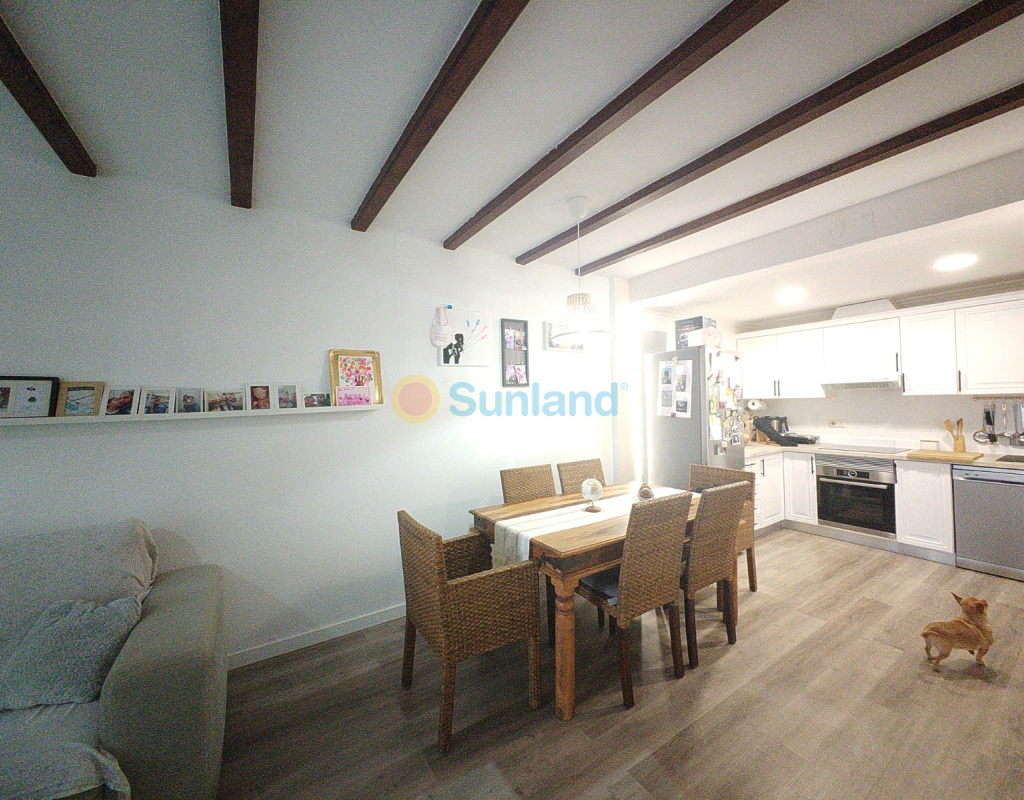 Appartement rez-de-chaussée à Gran Alacant Charmant rez-de-chaussée rénové à Gran Alacant avec terrasse privée et vue sur la piscine Nous vous présentons ce bel appartement en rez-de-chaussée, idéal pour profiter de la vie sur la Costa Blanca dans un environnement calme et bien desservi. Situé dans le secteur prisé de Gran Alacant, à seulement 1 km de la plage du Carabassí et à 11 km de l’aéroport d’Alicante, il est parfait comme résidence principale, maison de vacances ou investissement locatif. L'appartement de 60 m² a été entièrement rénové avec goût et comprend 2 chambres avec armoire encastrée, 1 salle de bain complète, un salon-salle à manger lumineux avec climatisation (chaud/froid) et une cuisine ouverte entièrement équipée. La grande terrasse privée offre une vue dégagée sur la piscine communautaire et un accès direct aux espaces communs. Vendu meublé avec électroménagers, il est prêt à emménager. Il dispose également d’un jardin, buanderie, débarras et place de parking privée au sein de la résidence. L’urbanisation propose une piscine commune et un cadre tranquille et familial. Cette propriété dispose d'une licence touristique valide, ce qui en fait une excellente option pour les locations de vacances avec une forte demande dans la région. Idéalement situé à 500 mètres des bars et restaurants internationaux et à 15 km du golf El Plantío, ce logement est une belle opportunité sur la côte. Vous souhaitez en savoir plus ? Consultez nos propriétés à Gran Alacant ou contactez-nous pour une sélection personnalisée.