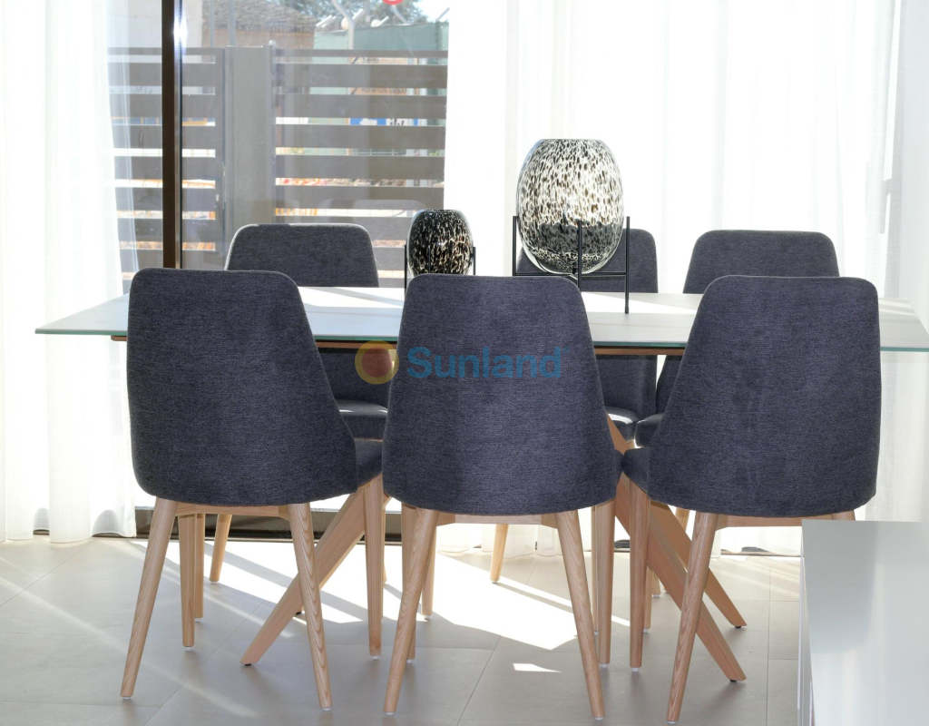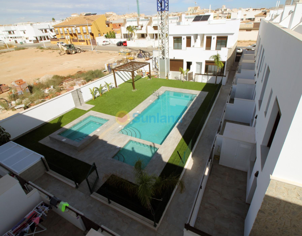 Maisons mitoyennes et jumelées modernes à Pilar de la Horadada Découvrez ce lotissement résidentiel exclusif composé de seulement six maisons mitoyennes et jumelées modernes dans la paisible ville de Pilar de la Horadada, à la pointe sud de la Costa Blanca. Conçues avec une architecture contemporaine et des finitions de haute qualité, ces propriétés neuves offrent un mélange parfait de confort et de style dans un emplacement très recherché. Spacieuses dispositions de trois et quatre chambres Chaque maison dispose de pièces à vivre spacieuses avec une cuisine ouverte et un salon conçus pour maximiser la lumière naturelle. Choisissez parmi des plans de trois ou quatre chambres, avec deux ou trois salles de bains selon le modèle. Les logements du rez-de-chaussée comprennent deux terrasses : une terrasse à l'avant avec un espace pour un parking privé et une terrasse à l'arrière avec accès direct à la piscine commune. Le premier étage dispose d'une terrasse supplémentaire à côté des chambres, tandis qu'à l'étage supérieur, un solarium sur le toit offre une vue panoramique et un espace idéal pour se détendre en plein air. Finitions intérieures de haute qualité Les intérieurs sont équipés de matériaux haut de gamme, notamment des murs en plâtre lisse, du carrelage en grès cérame dans toutes les pièces et des armoires encastrées dans chaque chambre. Les cuisines ouvertes sont entièrement équipées avec des meubles modernes. Le confort supplémentaire comprend la pré-installation de la climatisation gainable et de systèmes aérothermiques pour une eau chaude économe en énergie. Équipements communautaires et parking privé Les résidents bénéficient d'une piscine commune bien entretenue, parfaite pour se détendre pendant les journées ensoleillées. Chaque maison dispose d'une place de parking privée sur le terrain, garantissant sécurité et commodité. Pilar de la Horadada : le charme traditionnel de la Costa Blanca Pilar de la Horadada est une charmante ville espagnole connue pour son atmosphère accueillante et son architecture traditionnelle. Le centre-ville est à quelques pas, où vous trouverez des supermarchés, des magasins locaux, des restaurants, des bars et des places pittoresques. Profitez d'une promenade tranquille le long de la rue principale, en dégustant une cuisine méditerranéenne authentique ou en explorant les boutiques d'artisanat. Proximité des plages et des aéroports Profitez du meilleur de la vie côtière avec les plages de sable fin de Torre de la Horadada et Mil Palmeras à seulement 5 minutes en voiture (environ 2 km) de votre nouvelle maison. Ces plages offrent des eaux claires, du sable doré et une promenade animée bordée de cafés et de restaurants avec vue sur la mer. Pour faciliter vos déplacements, l'aéroport de Corvera (Murcie) est à environ 40 km (40 minutes en voiture) et l'aéroport d'Alicante est à environ 55 km (55 minutes en voiture). De plus, le centre commercial La Zenia Boulevard se trouve à 15 km (15 minutes) du complexe, offrant un large choix de magasins, de restaurants et de divertissements. Assurez-vous dès aujourd'hui votre nouvelle maison Ne manquez pas cette occasion d'acquérir une maison jumelée ou mitoyenne neuve à Pilar de la Horadada. Alliant un design moderne, des finitions de qualité supérieure et un emplacement privilégié à proximité des plages, des commerces et des services, ces propriétés sont idéales comme résidence permanente, maison de vacances ou investissement. Contactez-nous dès maintenant pour obtenir plus d'informations et organiser une visite.