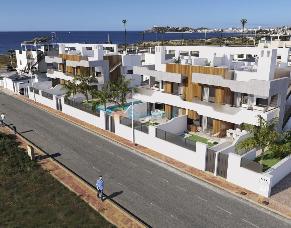 Maisons neuves à seulement 150 mètres de la plage à Puerto de Mazarrón Projet résidentiel exclusif près de Playa Negra Découvrez ce petit lotissement de seulement 8 maisons modernes situées à seulement 150 mètres de Playa Negra à Puerto de Mazarrón, dans la région de Murcie. Ce nouveau projet immobilier offre un mélange parfait entre vie côtière, intimité et confort contemporain, idéal pour vivre toute l'année ou passer des vacances. Profitez de la vue sur la mer, d'un environnement paisible et d'un accès facile à l'une des plus belles plages de la Costa Cálida. Le projet est situé dans un quartier résidentiel calme, à proximité de tous les services essentiels, notamment des supermarchés, des restaurants, des écoles et des centres médicaux. Types de propriétés et agencements Le projet propose un choix de maisons au rez-de-chaussée ou au dernier étage : Appartements au rez-de-chaussée : 3 chambres et 2 salles de bains avec jardins privés. Piscine privée disponible en option moyennant un supplément. Appartements au dernier étage : 2 chambres et 2 salles de bains avec grandes terrasses et solariums privés sur le toit, parfaits pour prendre le soleil et manger en plein air. Toutes les propriétés comprennent un débarras et une place de parking attribuée dans le garage souterrain. Caractéristiques modernes et finitions de haute qualité Ces maisons neuves sont conçues avec des matériaux haut de gamme et des détails bien pensés pour améliorer le confort et l'efficacité : Menuiserie extérieure en PVC avec double vitrage et chambre à air pour l'isolation Porte d'entrée renforcée Chauffage au sol électrique dans les salles de bains Cuisines entièrement équipées avec appareils électroménagers inclus Système de climatisation centralisé installé Piscine commune avec jardin paysager Préinstallation pour la télévision par satellite Emplacement privilégié à Puerto de Mazarrón Puerto de Mazarrón est l'une des destinations côtières les plus prisées de la région de Murcie, connue pour ses plages pittoresques, son port de plaisance animé et son atmosphère méditerranéenne détendue. La région offre un large éventail d'activités de plein air, de la voile et la plongée sous-marine à la randonnée et au cyclisme dans la Sierra de las Moreras toute proche. Distances vers les principaux points d'intérêt : Playa Negra : 150 mètres Port de Mazarrón : 2 km Cartagena : 35 km Ville de Murcie : 70 km Aéroport de Corvera (Murcie) : 45 km Terrains de golf (Camposol, Hacienda del Álamo) : 25-35 km Centre commercial Mazarrón Park : 5 km Faites de la côte votre nouveau chez-vous Ne manquez pas cette occasion rare d'acquérir une maison neuve près de la plage à Puerto de Mazarrón. Contactez-nous dès aujourd'hui pour en savoir plus ou pour visiter les logements disponibles et découvrir le style de vie méditerranéen.