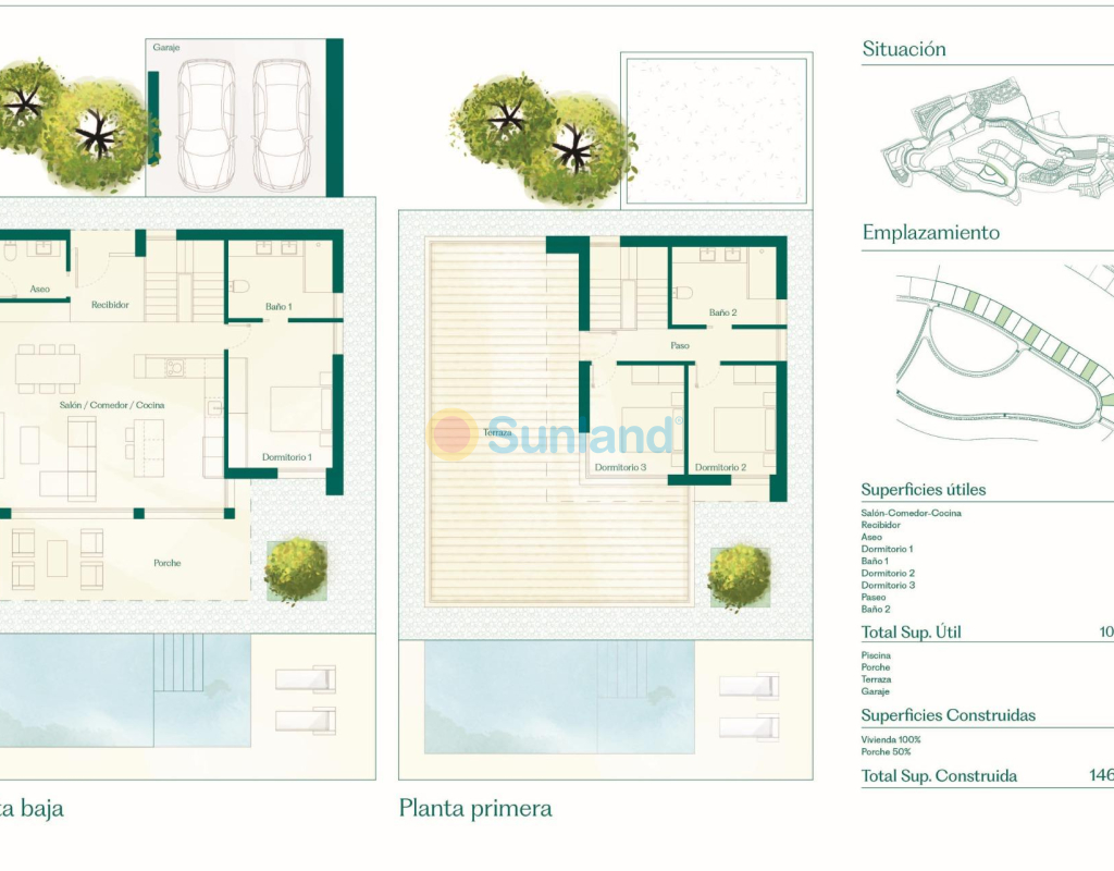 Villas exclusives en première ligne de golf à Hacienda del Álamo, Costa Cálida Villas modernes dans l'un des meilleurs complexes de golf d'Espagne Découvrez une opportunité unique d'acquérir une villa de luxe neuve en première ligne du complexe de golf Hacienda del Álamo, situé entre les villes historiques de Carthagène et Murcie, au cœur de la Costa Cálida. Ces villas contemporaines sont conçues pour offrir confort, intimité et élégance, dans un cadre exceptionnel dédié au golf et aux loisirs. Chaque propriété offre un agencement spacieux avec 3 chambres, 2 salles de bains et des toilettes pour invités, sur un ou deux niveaux, selon le modèle choisi. Avec des terrains généreux à partir de 700 mètres carrés et une surface construite de 146 mètres carrés, ces maisons offrent un espace généreux pour la vie à l'intérieur comme à l'extérieur. Caractéristiques et finitions de haute qualité Ces villas en première ligne sont équipées de commodités modernes pour assurer un maximum de confort et de style, notamment : Piscine privée et jardin paysager avec système d'irrigation goutte à goutte Cuisine entièrement équipée avec armoires et appareils électroménagers inclus Climatisation centralisée dans toute la propriété Salles de bains avec meubles, miroirs et parois de douche Fenêtres en aluminium à rupture de pont thermique et double vitrage Accès à une grande piscine communautaire avec gazon naturel et aire de jeux pour enfants Une vie luxueuse dans le complexe de golf Hacienda del Álamo Hacienda del Álamo est réputé pour être l'un des meilleurs complexes de golf d'Espagne, offrant à ses résidents un style de vie alliant détente, sport et commodité. Parcours de golf de championnat 18 trous et académie Installations sportives comprenant tennis, paddle, salle de sport et cours de fitness Club-house principal avec vue panoramique, restaurant servant une cuisine méditerranéenne et terrasses ensoleillées Hôtel 4 étoiles et spa pour la détente et le bien-être Espaces adaptés aux familles, avec aires de jeux pour enfants, piscines et pistes cyclables Village traditionnel espagnol avec boutiques, cafés et nouveaux restaurants à venir Emplacement stratégique avec d'excellentes connexions Aéroport de Corvera (Murcie) : 18 km (environ 15 minutes) Carthagène : 36 km Centre-ville de Murcie : 40 km Plages de Mar Menor : 28 km Centres commerciaux (Dos Mares, Espacio Mediterráneo) : à moins de 30 km La maison de vos rêves au bord du golf vous attend Que vous recherchiez une résidence permanente, une maison de vacances ou un investissement intelligent sur la Costa Cálida, ces villas en première ligne de golf à Hacienda del Álamo sont faites pour vous. Contactez-nous dès aujourd'hui pour en savoir plus ou pour organiser une visite personnalisée.