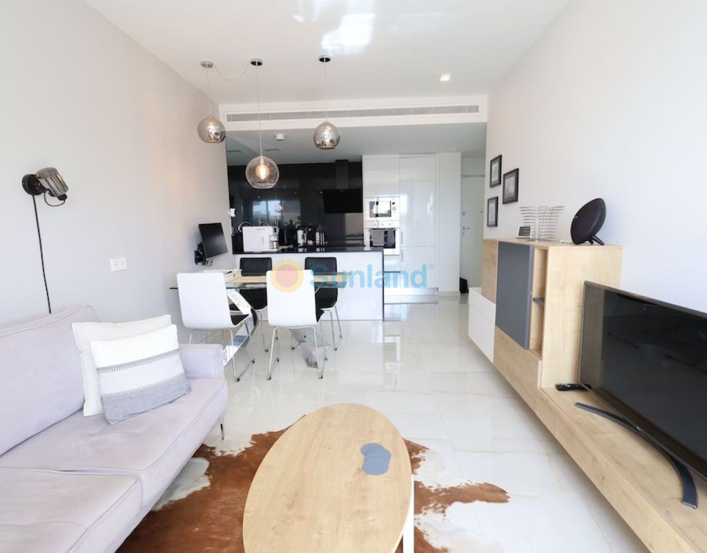 Nous vous présentons avec fierté cet élégant appartement situé au deuxième étage de la résidence exclusive Amanecer 3, un véritable havre de paix et de confort. Grâce à son emplacement privilégié, juste en face de la piscine commune et entouré de vastes espaces verts, vous profiterez d’un cadre de vie serein, facilement accessible et proche de toutes les commodités essentielles. Avec une surface habitable de 76,6 m², ce bien dispose d’une disposition bien pensée comprenant deux chambres spacieuses, deux salles de bains entièrement équipées, ainsi qu’un séjour lumineux et ouvert avec une cuisine moderne. L’orientation plein sud apporte une lumière naturelle abondante et donne accès à une grande terrasse de 21 m², équipée de stores, idéale pour des moments de détente au soleil ou des soirées conviviales entre amis. Confort et qualité sont au cœur de cet appartement, qui est équipé de : Chauffage au sol dans les salles de bains Climatisation Système d’alarme Fenêtres avec moustiquaires Barbecue sur la terrasse Le bien est vendu semi-meublé et entièrement prêt à emménager. En atouts supplémentaires, l’appartement bénéficie de deux places de parking souterrain, chacune équipée de bornes de recharge pour véhicules électriques, un véritable avantage sur le marché actuel. Que vous cherchiez une résidence principale sous le soleil ou un investissement solide avec un fort potentiel locatif, ce bien a tout pour vous séduire. Ne manquez pas cette opportunité unique – contactez-nous dès aujourd’hui pour organiser une visite !