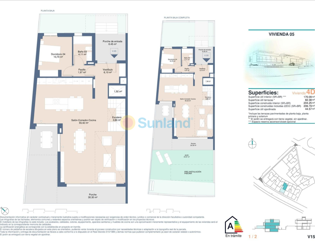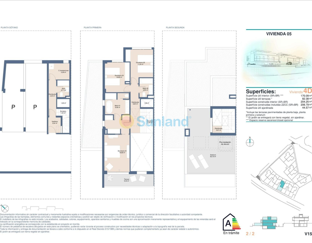 Maisons mitoyennes et jumelées neuves à Cabo de las Huertas, Alicante Maisons haut de gamme dans le meilleur quartier résidentiel d'Alicante Ce complexe résidentiel exclusif à Cabo de las Huertas, Alicante, propose 14 maisons mitoyennes et jumelées de 4 et 5 chambres, dans l'un des quartiers les plus prisés de la ville, entre la plage de l'Albufereta et la plage de San Juan. À seulement 300 mètres de la mer, entouré de criques naturelles, de services, d'écoles et de zones commerciales, ce projet allie tranquillité, confort et excellente connectivité avec le centre d'Alicante. Design moderne avec des espaces fonctionnels Chaque logement est distribué en sous-sol, certaines unités avec cave, rez-de-chaussée, premier étage et solarium, offrant espace, intimité et multiples ambiances pour la vie quotidienne. De plus, tous les logements disposent d'un jardin privé et d'une option de piscine individuelle. Les parties communes comprennent une piscine communautaire et des espaces verts, idéaux pour profiter du climat méditerranéen dans un environnement calme et familial. Finitions de haute qualité et confort énergétique Les logements ont été conçus avec des matériaux de première qualité et des systèmes qui garantissent l'efficacité énergétique et le confort tout au long de l'année : Aérothermie individuelle pour l'eau chaude sanitaire Climatisation par conduits et plancher chauffant dans tout le logement, sauf au sous-sol Porte d'entrée blindée et menuiserie à rupture de pont thermique, double vitrage et volets roulants motorisés Salles de bains modernes avec douche, parois de douche, meubles et miroirs grand format Toutes les terrasses sont équipées d'un éclairage et d'une prise de courant ; celles du rez-de-chaussée et du solarium séparé disposeront d'une prise d'eau. Distances clés : Plage la plus proche : 0,3 km Centre d'Alicante : 6 km Centre commercial Gran Vía : 4 km Camp de golf Alicante Golf : 3 km Port de plaisance d'Alicante : 6,5 km Aéroport d'Alicante-Elche : 23 km TRAM et arrêt de bus : à moins de 500 m Une vie méditerranéenne complète Cabo de las Huertas est synonyme d'exclusivité, de nature et de services de qualité. Ce complexe résidentiel est parfait pour ceux qui souhaitent vivre près de la mer sans renoncer aux avantages d'une ville moderne. Dans les environs, vous trouverez des écoles prestigieuses, des universités, des centres commerciaux, des zones culturelles et sportives, ainsi qu'un accès facile aux autoroutes, aux trains à grande vitesse et à l'aéroport international. Ne manquez pas l'occasion de vivre dans l'un des endroits les plus privilégiés d'Alicante. Contactez-nous dès aujourd'hui pour organiser une visite et découvrir votre nouvelle maison à Cabo de las Huertas.