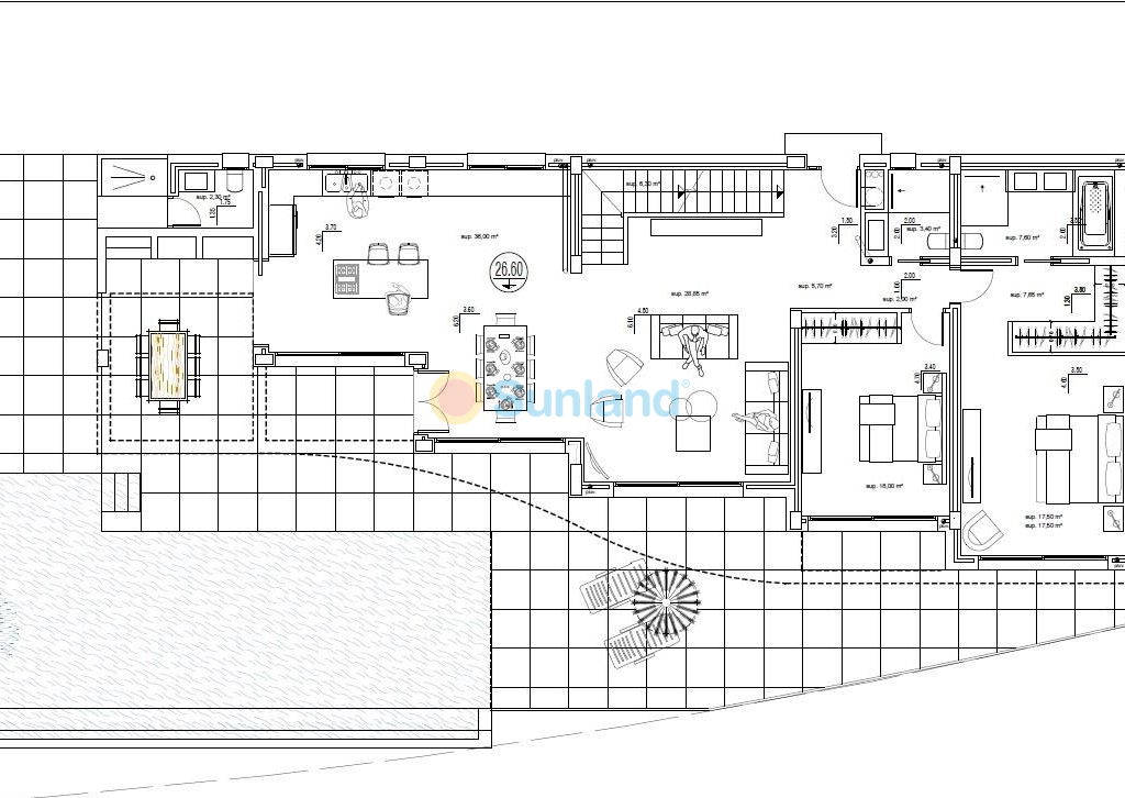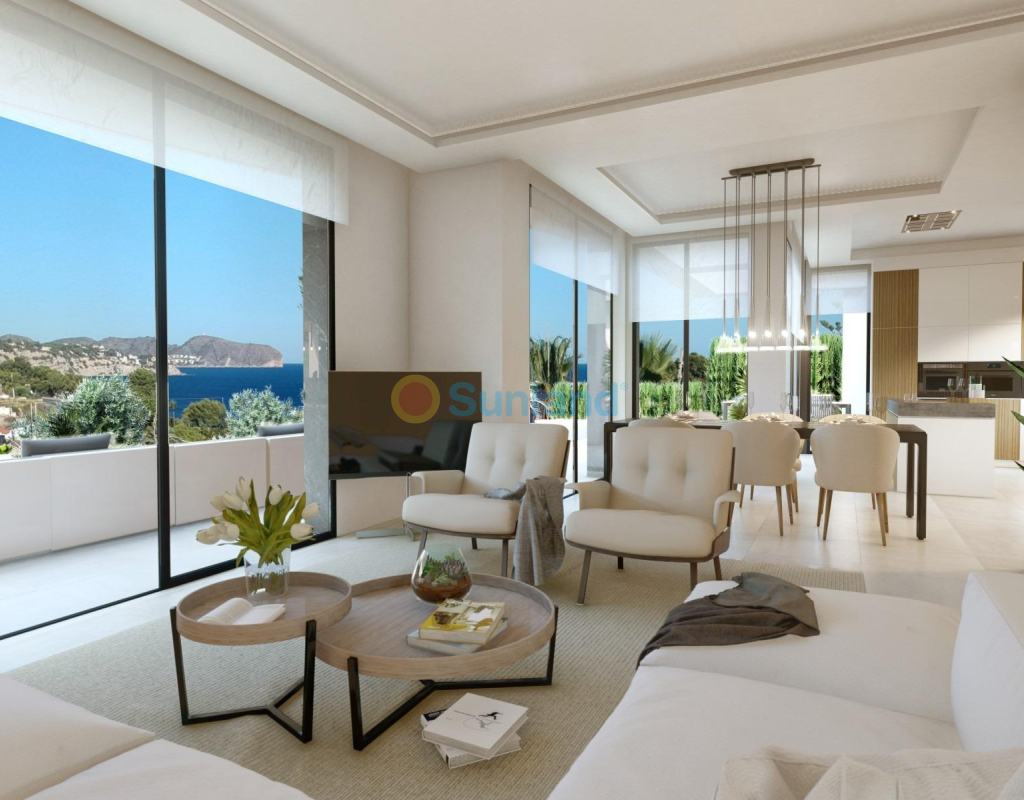 VILLA NEUVE AVEC VUE SUR LA MER A BENISSA Nouvelle villa de luxe construite sur un grand terrain de 1250m2, offrant une vue imprenable sur la mer et une vue dégagée vers Moraira. Moraira, très bien située dans une urbanisation tranquille à seulement 200 m de la plage ''La fustera'' et à 2 km du centre de Calpe. centre de Calpe. Villa de luxe distribuée sur 3 étages et dispose de 4 chambres à coucher, 5 salles de bains, cuisine ouverte équipée, salon avec de grandes fenêtres et accès direct à la piscine. Belle terrasse avec la piscine et l'espace barbecue, d'où il y a de belles vues sur la mer. La villa est située dans l'un des plus beaux quartiers résidentiels de la Costa Blanca. Les villes de Calpe, Benissa et Moraira offrent un littoral extraordinairement attrayant, d'un grand intérêt paysager et écologique, avec une côte accidentée aux nombreuses plages et criques cachées. Benissa est située entre Valence et la ville d'Alicante. L'aéroport de Manises à Valence est à une heure de route et celui de L'Altet à Alicante à 50 minutes. Ces deux aéroports sont de grands aéroports internationaux desservis par un grand nombre de compagnies aériennes à bas prix.