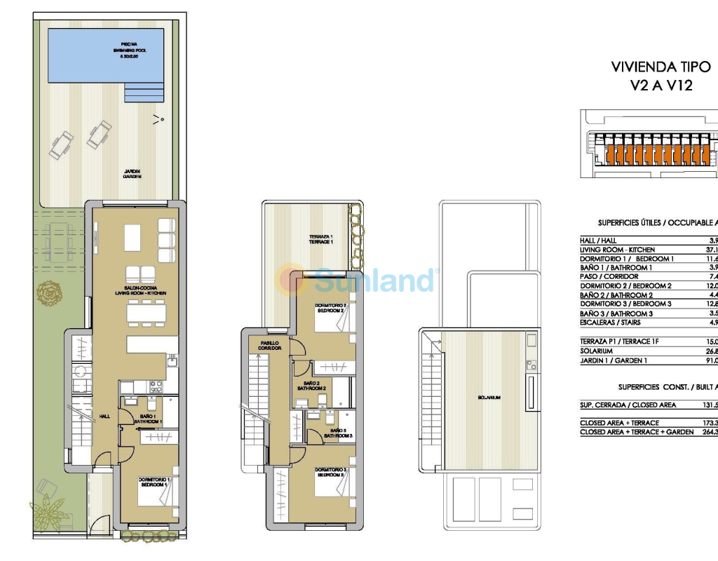 VILLAS NEUVES A MIL PALMERAS Nouvelle construction résidentielle de villas à Mila Palmeras conçues pour profiter du climat méditerranéen. Chaque villa dispose de magnifiques terrasses, d'un solarium et d'un beau jardin avec une piscine design. Avec une orientation imbattable, à proximité de la plage et dans une urbanisation consolidée avec des installations sportives et des zones de loisirs. Les propriétés ont des pièces spacieuses distribuées sur 2 étages. Au rez-de-chaussée, relié au jardin, se trouvent un salon-salle à manger lumineux, une cuisine, une chambre double et une salle de bains. Au premier étage, il y a deux autres chambres doubles, chacune avec sa propre salle de bains. Un fantastique solarium complète l'ensemble sur le toit. Mil Palmeras est situé dans un quartier privilégié de Torre de la Horadada. Sa tranquillité ainsi que sa proximité avec la plage et tous les services en font une enclave imbattable. Villasl est situé à proximité de la plage de sable avec une promenade entre Campoamor et Torre de la Horadada, toutes les commodités dont vous avez besoin tels que les écoles, les restaurants, les installations sportives, etc qui sont ouverts toute l'année. Le village dispose d'une petite place et d'une grande "allée des restaurants" qui regorge de restaurants internationaux. Le parc naturel de Lo Monte est une réserve spéciale pour les oiseaux. Le parc naturel de Rio Seco est également là pour les amoureux de la nature et de la randonnée. Les aéroports de Murcie et d'Alicante se trouvent à 45 minutes.