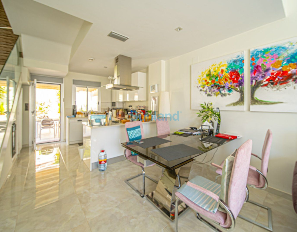 Villa moderne avec piscine privée, à seulement 10 minutes de la plage de Campoamor. Située à proximité de tous les services, cette villa au design contemporain est vendue entièrement meublée et prête à emménager. Les espaces extérieurs sont pensés pour profiter pleinement du climat méditerranéen toute l’année, avec une grande terrasse avec pergola et une piscine privée. Un solarium sur le toit avec pergola vitrée complète l’ensemble. Caractéristiques principales : 3 chambres et 3 salles de bain Cuisine ouverte sur le salon-salle à manger Surface construite : 119 m² Terrasse privée avec vues dégagées Piscine privée Solarium avec pergola Système de panneaux solaires Place de parking sur la parcelle Orientation sud-est Meublée et équipée IBI : 430 € par an