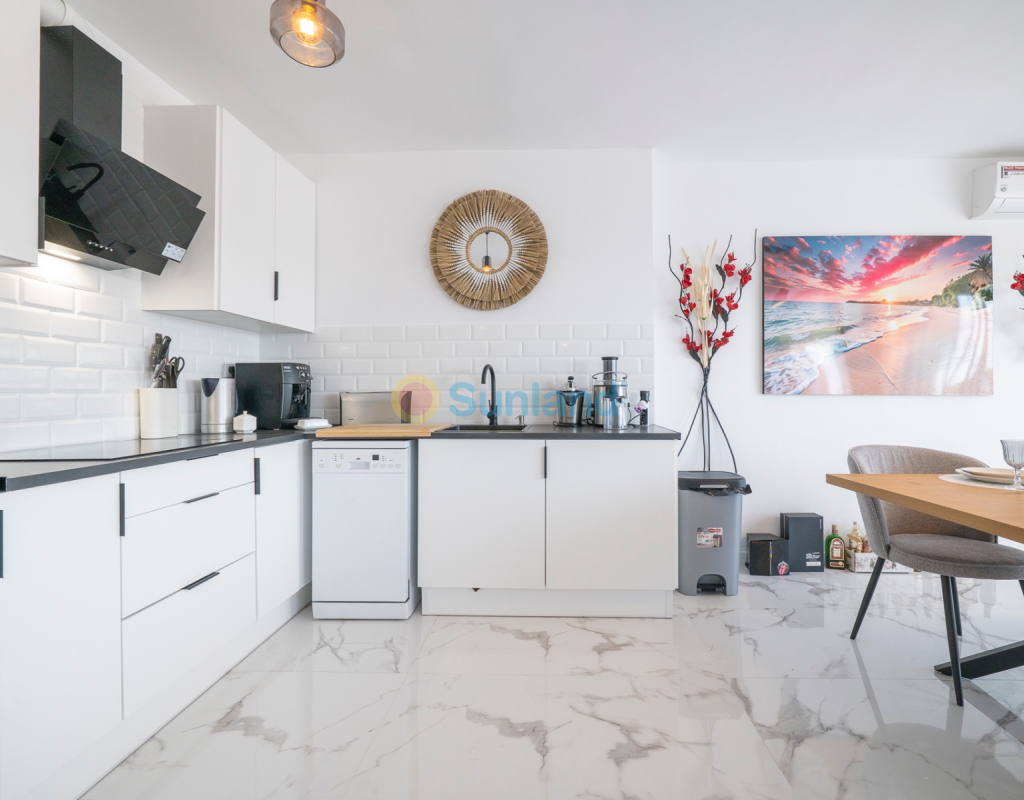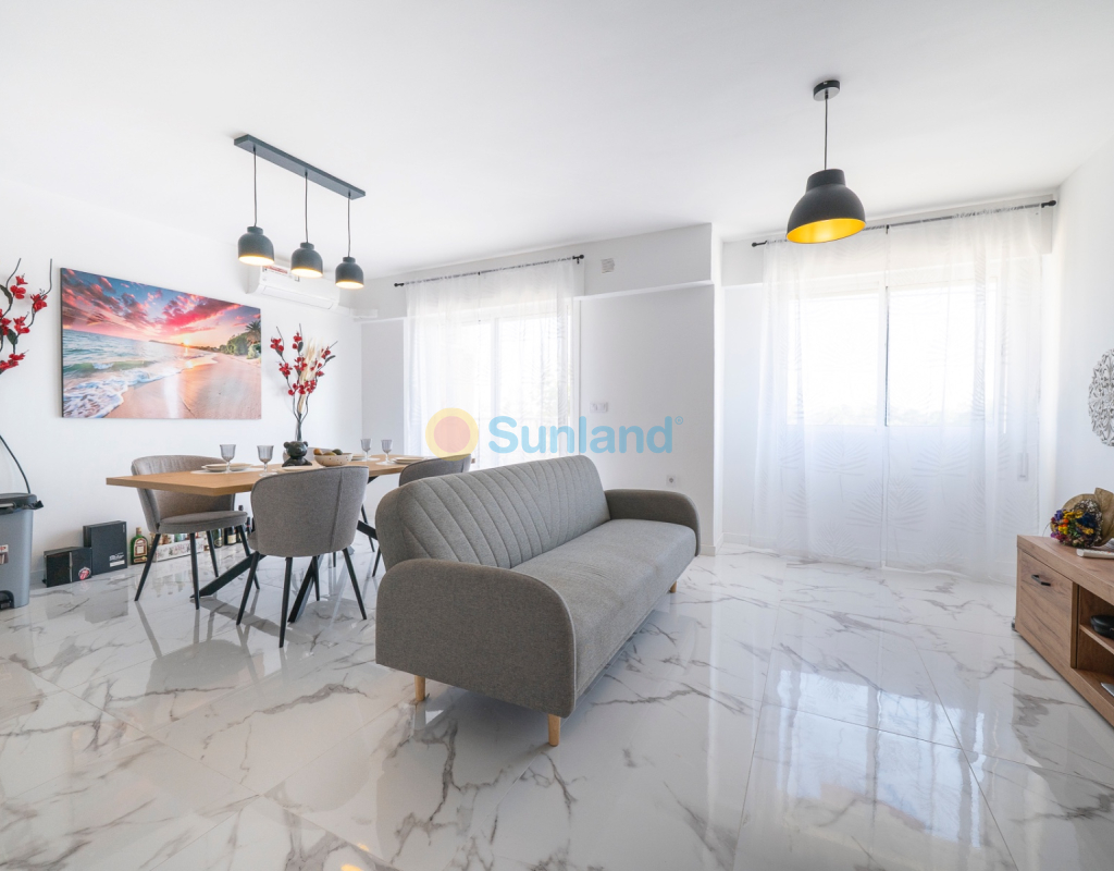 Votre nouveau chez-vous en bord de mer vous attend ! Découvrez ce lumineux appartement 2 chambres et 2 salles de bain, conçu pour vous offrir confort, espace et une qualité de vie exceptionnelle. Situé dans une résidence sécurisée exclusive à Punta Prima, ce bien est idéal aussi bien comme résidence principale que comme investissement locatif. Dès l'entrée, vous serez accueilli par un spacieux salon-salle à manger avec cuisine ouverte, idéal pour passer du bon temps en famille ou entre amis. L'intégration des espaces et l'excellente orientation permettent un apport constant de lumière naturelle tout au long de la journée. Depuis le confortable balcon privé, vous profiterez d'une vue imprenable sur la mer, l'endroit idéal pour se détendre en fin de journée. ✅ 2 chambres doubles avec placards intégrés ✅ 2 salles de bain complètes ✅ Cuisine moderne entièrement équipée ✅ Parking privé inclus ✅ Résidence sécurisée ✅ À quelques minutes de toutes les commodités : supermarchés, restaurants, transports en commun, écoles et espaces de loisirs ✅ Environnement calme et bien desservi Une propriété alliant style, fonctionnalité et emplacement privilégié. Venez la visiter et vous serez séduit !