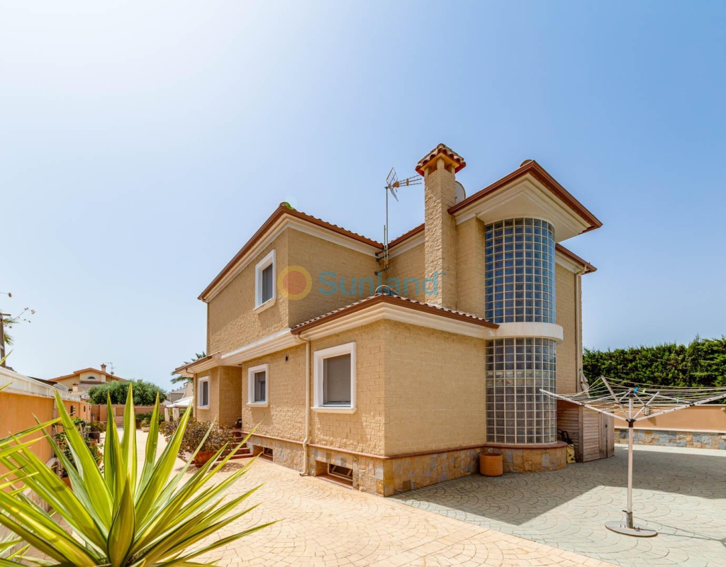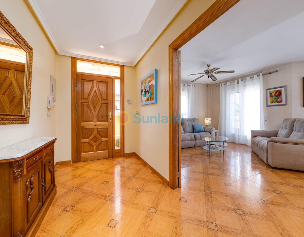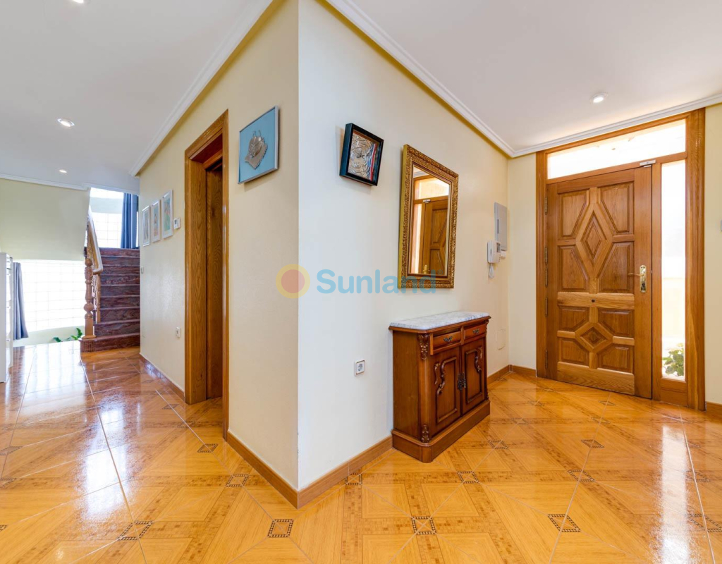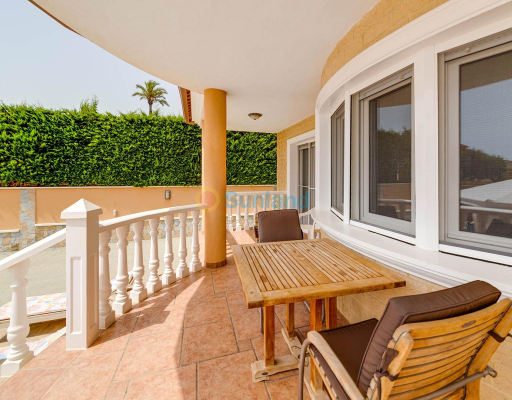 Villa élégante et spacieuse dans le quartier prisé de San Javier Laissez-vous séduire par cette villa alliant luxe, confort et emplacement exceptionnel. Dès l’entrée, un jardin joliment pavé, facile à entretenir, avec portail automatique vous accueille et mène à un espace de stationnement privé. L’extérieur abrite une magnifique piscine d’eau salée avec jacuzzi et douche extérieure, idéale pour profiter en toutes saisons. Rez-de-chaussée : Un hall d’entrée spacieux s’ouvre sur une cuisine indépendante, entièrement équipée. Ce niveau comprend deux chambres, dont une suite parentale avec dressing et salle de bain attenante avec jacuzzi et douche. Un vaste salon/salle à manger de 38 m² donne sur une terrasse avant, parfaite pour la détente. Des toilettes pour invités complètent ce niveau. Étage supérieur : Un escalier élégant orné de blocs de verre mène à deux grandes chambres, l’une avec dressing et l’autre avec placard intégré. Les deux chambres offrent un accès direct à une terrasse ensoleillée avec vue sur la piscine. Une salle de bain familiale avec jacuzzi complète cet étage. Sous-sol : Le demi-sous-sol de 82 m² est aménagé en salle de loisirs, atelier et local technique. Caractéristiques supplémentaires : 4 unités de climatisationChauffage central avec radiateursFenêtres en PVC de haute qualitéSystème d’alarmeConnexion internetEntièrement meublée Située à proximité immédiate du centre commercial Molino Plaza, du golf de Roda et des plages du Mar Menor, cette villa est idéale comme résidence principale. À seulement 20 minutes de l’aéroport de Murcie et à 60 minutes de celui d’Alicante. Contactez-nous pour organiser une visite et découvrez ce cadre de vie exceptionnel ! Appelez-moi: +34650023677