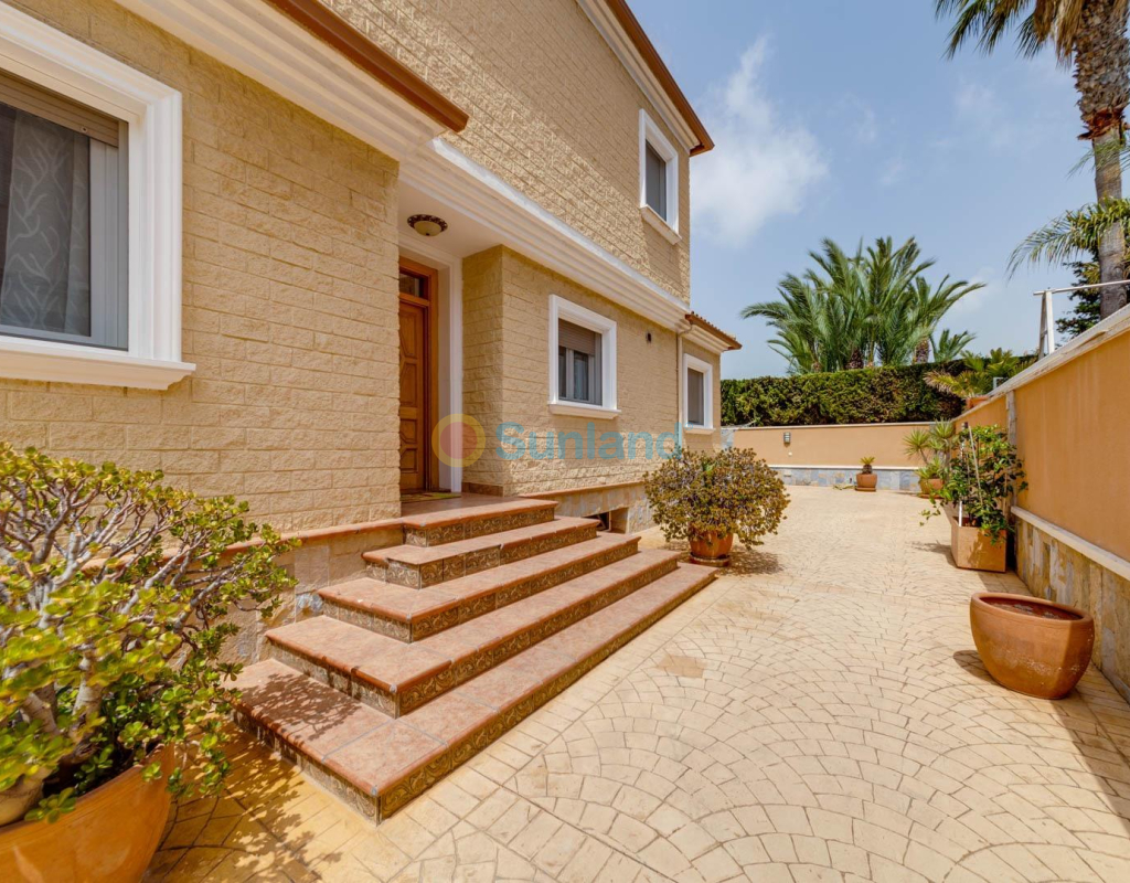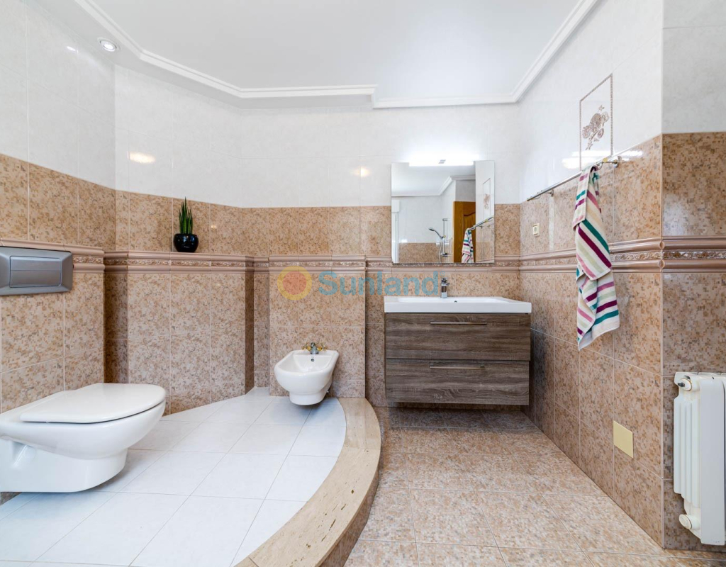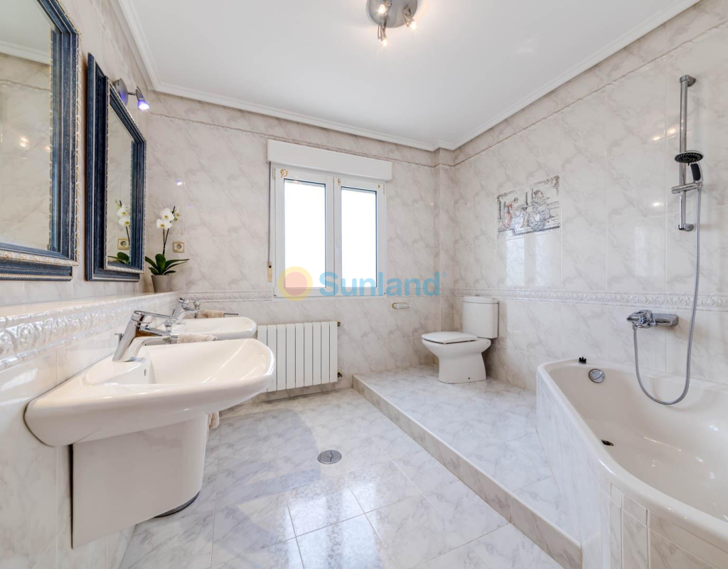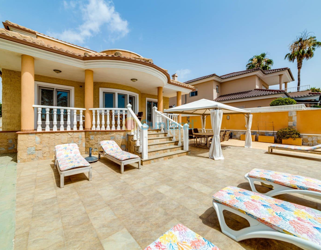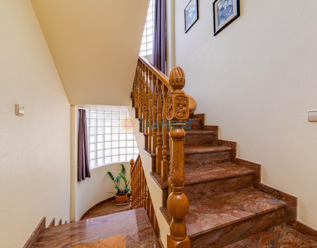 Villa élégante et spacieuse dans le quartier prisé de San Javier Laissez-vous séduire par cette villa alliant luxe, confort et emplacement exceptionnel. Dès l’entrée, un jardin joliment pavé, facile à entretenir, avec portail automatique vous accueille et mène à un espace de stationnement privé. L’extérieur abrite une magnifique piscine d’eau salée avec jacuzzi et douche extérieure, idéale pour profiter en toutes saisons. Rez-de-chaussée : Un hall d’entrée spacieux s’ouvre sur une cuisine indépendante, entièrement équipée. Ce niveau comprend deux chambres, dont une suite parentale avec dressing et salle de bain attenante avec jacuzzi et douche. Un vaste salon/salle à manger de 38 m² donne sur une terrasse avant, parfaite pour la détente. Des toilettes pour invités complètent ce niveau. Étage supérieur : Un escalier élégant orné de blocs de verre mène à deux grandes chambres, l’une avec dressing et l’autre avec placard intégré. Les deux chambres offrent un accès direct à une terrasse ensoleillée avec vue sur la piscine. Une salle de bain familiale avec jacuzzi complète cet étage. Sous-sol : Le demi-sous-sol de 82 m² est aménagé en salle de loisirs, atelier et local technique. Caractéristiques supplémentaires : 4 unités de climatisationChauffage central avec radiateursFenêtres en PVC de haute qualitéSystème d’alarmeConnexion internetEntièrement meublée Située à proximité immédiate du centre commercial Molino Plaza, du golf de Roda et des plages du Mar Menor, cette villa est idéale comme résidence principale. À seulement 20 minutes de l’aéroport de Murcie et à 60 minutes de celui d’Alicante. Contactez-nous pour organiser une visite et découvrez ce cadre de vie exceptionnel ! Appelez-moi: +34650023677