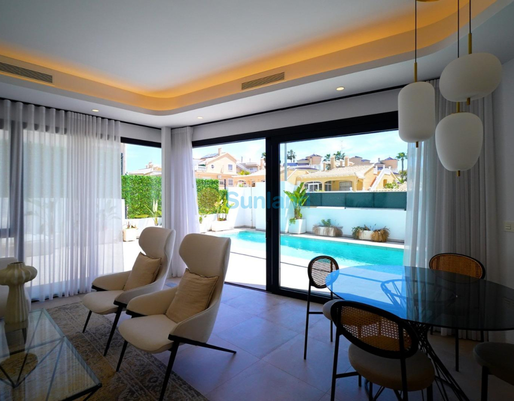 Villas de luxe neuves à Orihuela Costa – À moins de 4 km de la plage Découvrez une vie côtière haut de gamme dans ce nouveau complexe exclusif de 10 villas indépendantes situées à Los Altos, l'un des quartiers les plus prisés d'Orihuela Costa, à Alicante. Conçues dans un souci de confort, de style et de fonctionnalité, ces villas de luxe offrent un mélange parfait entre architecture moderne et style de vie méditerranéen, à quelques minutes de la mer et des services essentiels. Villas spacieuses avec piscines privées et solariums Chaque villa est répartie sur deux étages plus un solarium sur le toit et comprend : 3 chambres, dont 2 avec salle de bains attenante 3 salles de bains entièrement équipées Cuisine ouverte sur le salon Grandes fenêtres laissant entrer la lumière naturelle et donnant directement sur la terrasse Jardin privé avec terrasse semi-couverte et piscine Parking privé sur place Ces maisons sont idéales pour les familles, les retraités ou les investisseurs à la recherche d'une résidence de haute qualité près de la plage sur la Costa Blanca. Finitions haut de gamme et systèmes à faible consommation d'énergie Construites selon des spécifications élevées, chaque villa dispose de : Carrelage Porcelanosa dans toute la propriété Système de chauffage de l'eau par aérothermie pour une meilleure efficacité énergétique Salles de bains modernes avec meubles et parois de douche Stores motorisés dans toutes les chambres Grand solarium sur le toit, idéal pour prendre le soleil ou se détendre en plein air Tous les matériaux et finitions ont été soigneusement sélectionnés pour offrir une maison raffinée, durable et respectueuse de l'environnement. Emplacement privilégié à Los Altos, Orihuela Costa Situé à moins de 4 km des plages de Punta Prima et Playa Flamenca, ce complexe résidentiel offre un accès facile au meilleur d'Orihuela Costa. La région est connue pour ses excellentes infrastructures et ses services, notamment : Centre commercial Zenia Boulevard – 3 km Golf Villamartín – 5 km Golf Las Ramblas – 7 km Aéroport d'Alicante – 55 km Aéroport de Murcie-Corvera – 60 km Port de Torrevieja – 6 km Los Altos est un quartier paisible mais animé, avec des supermarchés, des écoles, des centres médicaux et des restaurants, ce qui en fait un endroit idéal pour vivre toute l'année ou passer des vacances. Votre villa de luxe vous attend sur la Costa Blanca Ne manquez pas l'occasion de devenir propriétaire d'une superbe villa neuve dans l'un des endroits les plus prisés de la côte d'Alicante. Contactez-nous dès aujourd'hui pour obtenir plus d'informations ou pour réserver une visite.