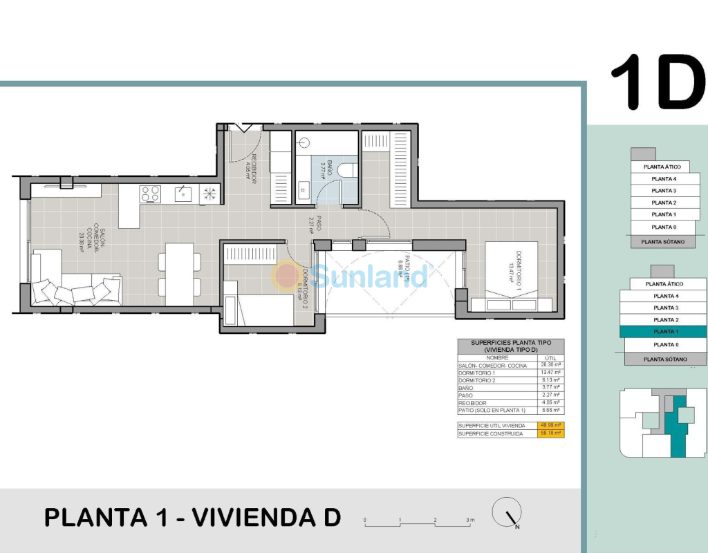 Élégant immeuble résidentiel à 60 m de la plage El Acequion à Torrevieja 23 logements fonctionnels avec un choix d'appartements de 1, 2 et 3 chambres et de penthouses avec de grandes terrasses privées. Places de parking en sous-sol en option pour plus de commodité. Profitez de la vie à quelques pas de la Méditerranée. Entouré de tout ce dont vous avez besoin (supermarchés, écoles, restaurants, parcs et bars de plage), c'est l'endroit idéal pour vivre toute l'année ou profiter d'une résidence secondaire. Chaque logement est soigneusement conçu pour maximiser la lumière naturelle, l'espace et la fonctionnalité. Certaines maisons disposent d'une terrasse privée ou d'une buanderie. Sur le toit, les résidents peuvent profiter d'un solarium commun avec un espace lounge relaxant et une piscine, idéal pour profiter du soleil et de la brise marine toute l'année. Distances des points clés : Plage d'Acequión : 60 m Centre-ville de Torrevieja : 500 m Port de plaisance Marina Salinas : 1,5 km Hôpital universitaire de Torrevieja : 5,5 km Parcours de golf Villamartín : 10 km Centre commercial Habaneras : 3 km Aéroport d'Alicante : 45 km Finitions haut de gamme dans chaque logement Les logements ont été construits avec des matériaux de première qualité et un design contemporain : Menuiserie extérieure en aluminium avec rupture de pont thermique et double vitrage Stores motorisés dans les chambres. Porte d'entrée blindée Cuisine équipée avec éléments hauts et bas Eau chaude produite par un système aérothermique Pré-installation de la climatisation Salles de bains avec meubles, miroirs et vitres fixes dans les douches. Ascenseur dans l'immeuble Vivez à deux pas de la mer et du centre-ville Torrevieja est l'une des villes côtières les plus dynamiques et les plus en expansion de la Costa Blanca, célèbre pour son climat, ses plages, ses salines et sa vie culturelle. Ce complexe est idéal comme résidence permanente, investissement ou résidence secondaire pour les vacances. Contactez-nous dès aujourd'hui pour obtenir plus d'informations ou pour organiser une visite et vous assurer votre maison en bord de mer à Torrevieja. Torrevieja est l'une des villes côtières les plus dynamiques et en pleine croissance de la Costa Blanca, célèbre pour son climat, ses plages, ses salines et sa vie culturelle. Cette promotion est idéale comme résidence principale, investissement ou résidence secondaire pour les vacances. Contactez-nous dès aujourd'hui pour plus d'informations ou pour organiser une visite et assurez-vous votre maison en bord de mer à Torrevieja.