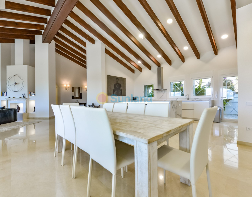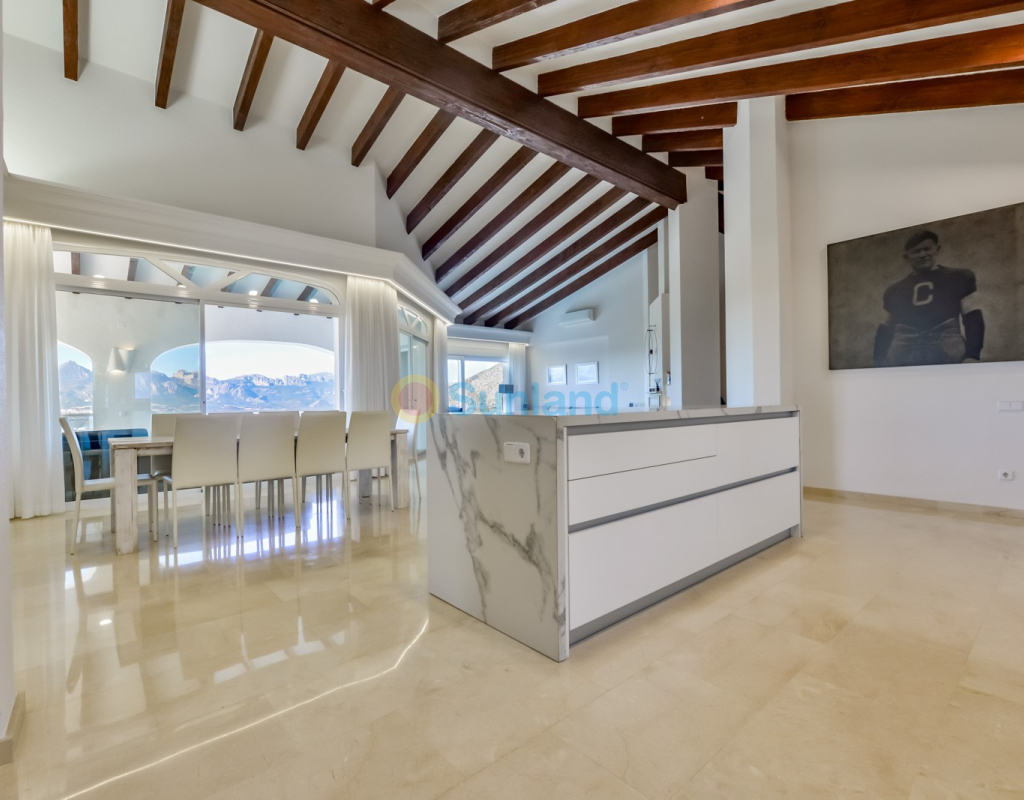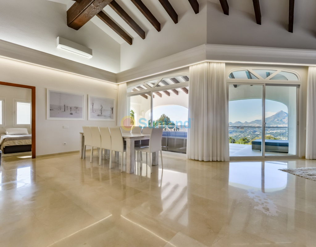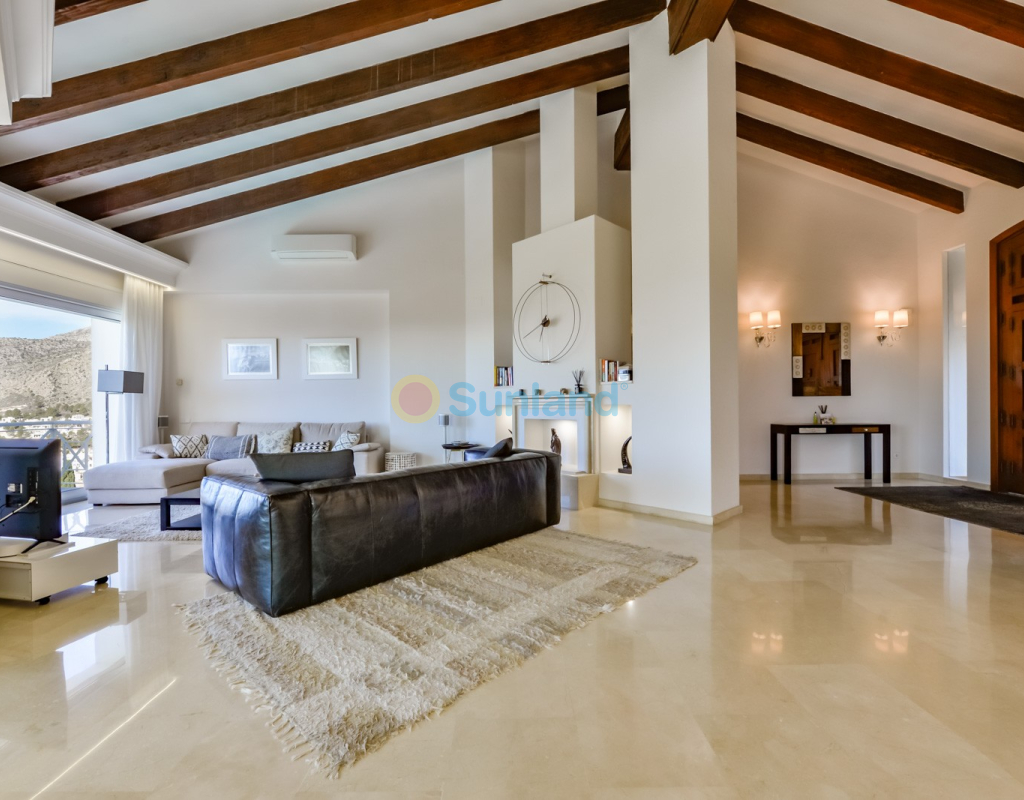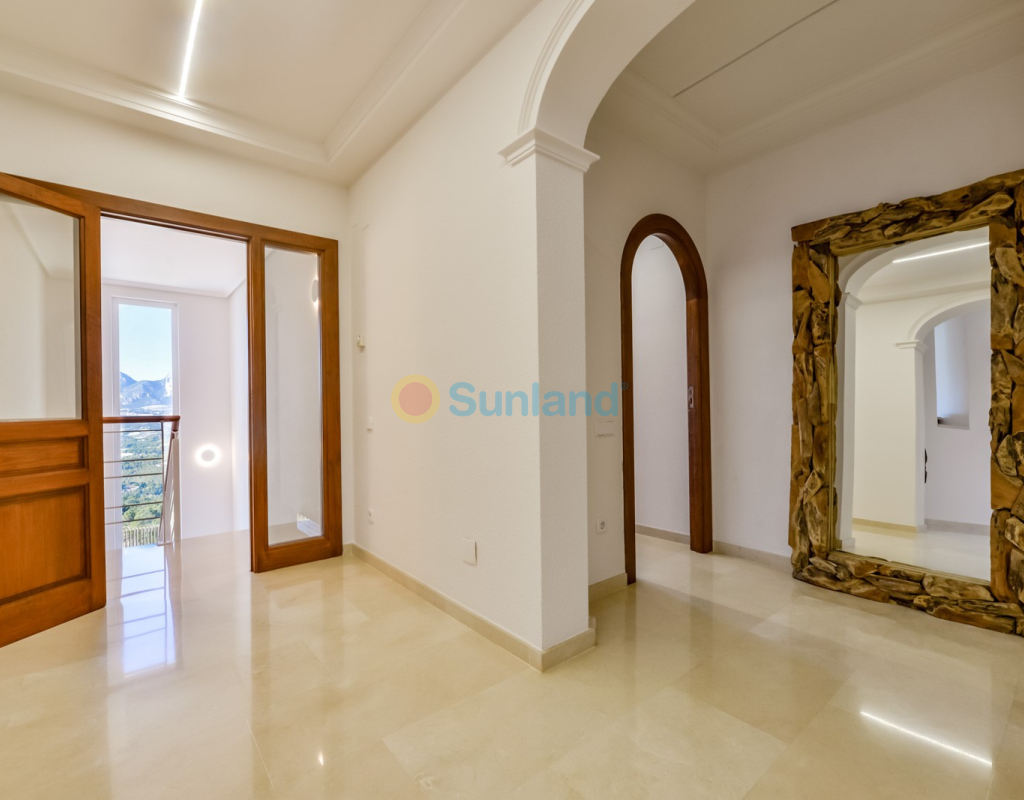 Nichée dans la prestigieuse Sierra de Altea, cette villa de luxe redéfinit l'exclusivité et le confort. Dès le premier instant, sa majesté et son design vous entourent, alliant parfaitement le charme méditerranéen à un style contemporain sophistiqué. Emplacement privilégié, intimité absolue A seulement 6 minutes des plages et du golf, et proche du centre d'Altea, cette propriété de 920 m² sur un terrain de 2 440 m² offre la combinaison parfaite entre tranquillité et accès aux meilleurs services de la Costa Blanca. Une maison conçue pour le plaisir En entrant dans l'élégant hall, une porte en bois massif vous accueille dans un espace ouvert et lumineux. L'impressionnant salon avec foyer, la salle à manger et la cuisine design avec îlot créent un environnement idéal pour recevoir et convivialité. De chaque coin, les grandes fenêtres encadrent les vues exceptionnelles sur la mer, la baie d'Altea et la majestueuse Sierra Helada, transformant le paysage en une œuvre d'art naturelle. Les hauts plafonds avec poutres en bois, les matériaux nobles et l'harmonie de chaque détail reflètent le luxe à son meilleur. Exclusivité à chaque étage La chambre principale offre une vue sur la mer, des armoires encastrées et une salle de bain avec douche, baignoire et double vasque. Deux chambres en suite, chacune avec sa propre salle de bain privative. Le rez-de-chaussée comprend un deuxième salon, salle à manger et cuisine ouverte, idéal pour les invités. Une salle de sport, un débarras et un garage fermé pour trois véhicules. Une villa conçue pour l'intimité et le confort Grâce à son agencement optimisé, cette villa est idéale pour les familles nombreuses ou ceux qui aiment recevoir, avec des espaces conçus pour l'intimité et le confort. À l'extérieur, un jardin parfaitement entretenu entoure la propriété, avec une grande variété de fleurs et d'arbres matures qui apportent fraîcheur et exclusivité. Juste en face d'un étang calme aux poissons exotiques se trouve le joyau de cette propriété : Maison d'hôtes à l'essence marocaine Une oasis indépendante au design évocateur, avec jardin privé et vue imprenable sur la mer. Entièrement équipé, il offre climatisation, télévision par câble, internet fibre optique et système de sécurité connecté. Vous souhaitez construire une autre villa de luxe ? La maison d'hôtes est située sur un terrain séparé, ce qui pourrait permettre la future construction d'une autre villa de luxe sur le même site. Plus qu'une maison, un style de vie Vivez dans un endroit où intimité, confort et beauté naturelle se fondent en parfaite harmonie.