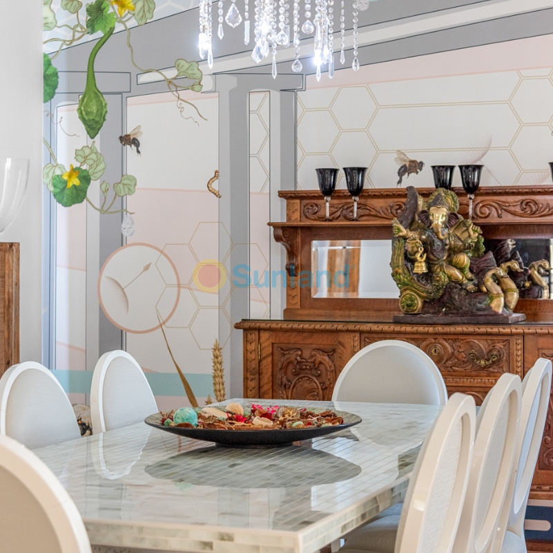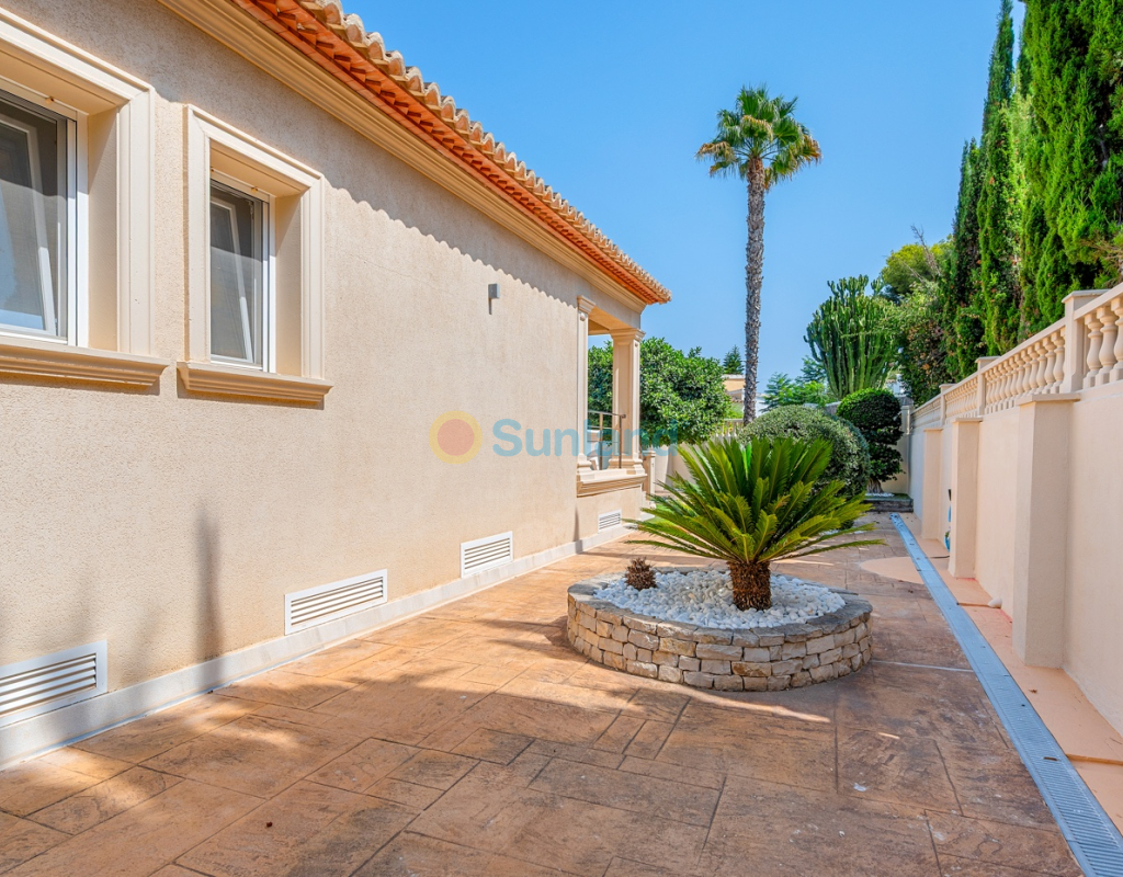 Cette superbe villa est située dans un quartier résidentiel calme de Benissa. Construite en 2004 et entièrement rénovée en 2012, la propriété offre un design moderne et fonctionnel, avec des finitions de grande qualité à l’intérieur comme à l’extérieur. Le terrain de 960 m² est soigneusement aménagé avec des palmiers et une végétation méditerranéenne, des zones dallées et du gazon artificiel haut de gamme sur la terrasse supérieure. Au centre se trouve une grande piscine privée avec un système de filtration qui reproduit la sensation de l’eau de mer. L’entrée principale dispose d’un spacieux porche couvert. Le rez-de-chaussée comprend un salon lumineux avec accès direct à la terrasse et à la piscine, une salle à manger indépendante et une cuisine entièrement équipée. Sur l’aile gauche se trouvent deux chambres et une salle de bains. L’étage supérieur est dédié à la suite parentale avec sa salle de bains privative et une terrasse privée offrant une vue dégagée. Le sous-sol abrite deux chambres supplémentaires, une salle de bains, une salle de sport, une buanderie, une salle technique et des espaces de rangement. La villa assure un confort optimal grâce à la climatisation dans toutes les chambres et le salon, au chauffage au gaz dans toute la maison, à un système de filtration d’eau potable, à des moustiquaires et à des volets roulants. D’autres atouts incluent des matelas haut de gamme neufs (2024) et un parking privé. Avec 302 m² de surface construite, cette villa combine espace, confort et situation exceptionnelle, idéale aussi bien comme résidence principale que comme maison de vacances.