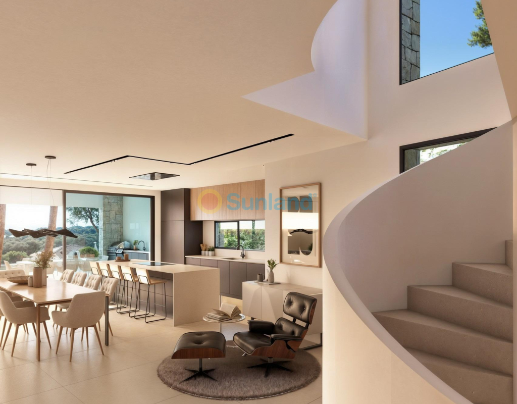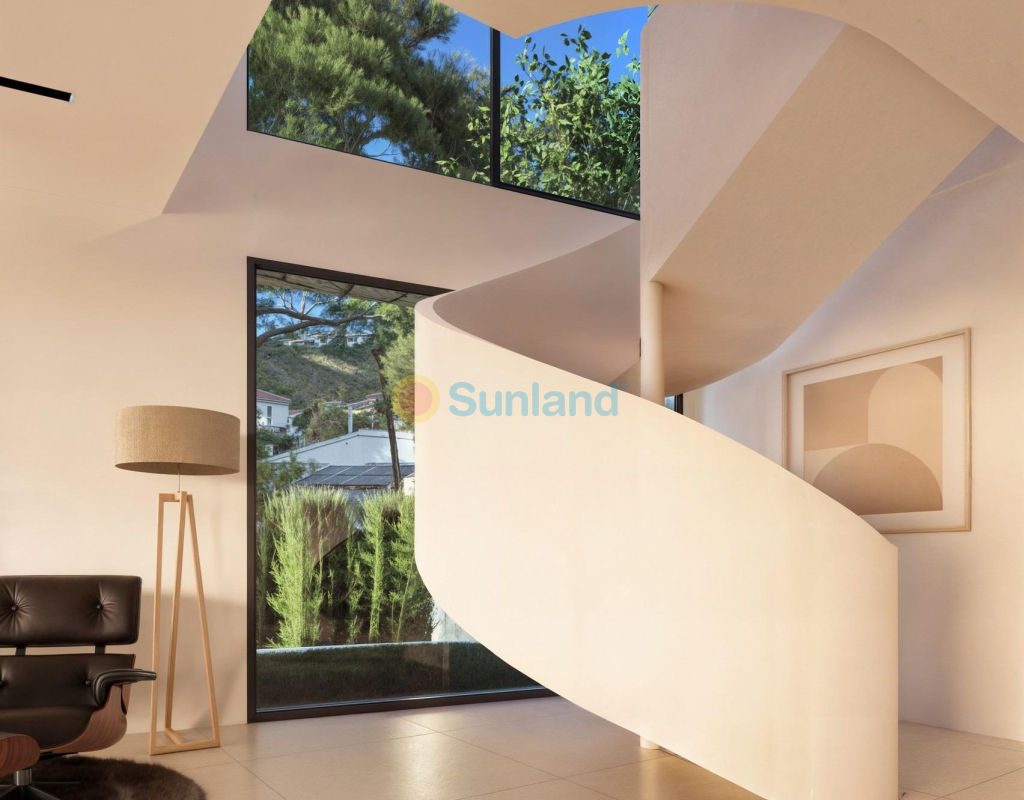 Villa neuve de luxe avec vue sur la mer à Moraira Emplacement privilégié à proximité de la plage et du centre-ville Cette villa de luxe à Moraira est idéalement située à seulement 1,8 km de la plage et du centre-ville animé, offrant un équilibre parfait entre intimité et commodité. Moraira, charmante ville côtière de la Costa Blanca, est connue pour ses plages de sable fin, ses eaux cristallines et son style de vie méditerranéen. La ville dispose d'un large choix de restaurants, de bars, de supermarchés et d'un port de plaisance animé. L'aéroport international d'Alicante est à environ 90 km (1h15) par l'autoroute A7, tandis que l'aéroport de Valence se trouve à une distance similaire au nord, ce qui rend l'accès simple et pratique. Design moderne et intérieurs spacieux Construite sur un terrain généreux de 912 m², cette villa offre une surface totale de 350 m² répartis sur deux étages. La maison comprend 4 chambres avec salle de bains privative et des toilettes pour invités, toutes finies avec des matériaux de première qualité. Le rez-de-chaussée comprend un salon et une salle à manger lumineux et ouverts, reliés à une cuisine moderne avec îlot central. De là, de grandes portes coulissantes s'ouvrent directement sur la terrasse, la cuisine d'été et la piscine privée. Une chambre avec salle de bains attenante, des toilettes pour invités, une buanderie et une pièce polyvalente complètent ce niveau. Étage supérieur élégant avec vue sur la mer Un escalier design mène à l'étage supérieur, qui comprend trois chambres supplémentaires avec salle de bains privative, ainsi qu'un hall d'entrée spacieux et une terrasse privée avec une vue spectaculaire sur la mer. La propriété dispose également d'un garage, d'un parking privé, du chauffage au sol, de la climatisation, du double vitrage et d'une porte de sécurité renforcée, garantissant un confort et une tranquillité d'esprit maximum. Une oasis méditerranéenne en plein air L'extérieur a été conçu comme un refuge privé, combinant des jardins paysagers, des terrasses couvertes et ouvertes, une piscine privée avec douche extérieure et un espace barbecue idéal pour recevoir. L'orientation sud-est garantit une lumière naturelle abondante tout au long de la journée, rendant chaque coin de la villa lumineux et accueillant. Le mode de vie à Moraira Moraira est réputée pour son atmosphère détendue et cosmopolite. Les familles apprécieront sa plage de sable sûre, tandis que les amoureux de la nature pourront profiter de superbes promenades côtières avec vue sur le Peñón de Ifach à Calpe, situé à seulement 12 km. Les amateurs de golf trouveront également d'excellents terrains de golf à 10-15 km. La villa de vos rêves vous attend Découvrez la vie de luxe à Moraira avec cette villa exclusive. Contactez-nous dès aujourd'hui pour organiser une visite et faire de ce paradis méditerranéen votre nouvelle maison.