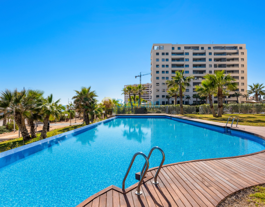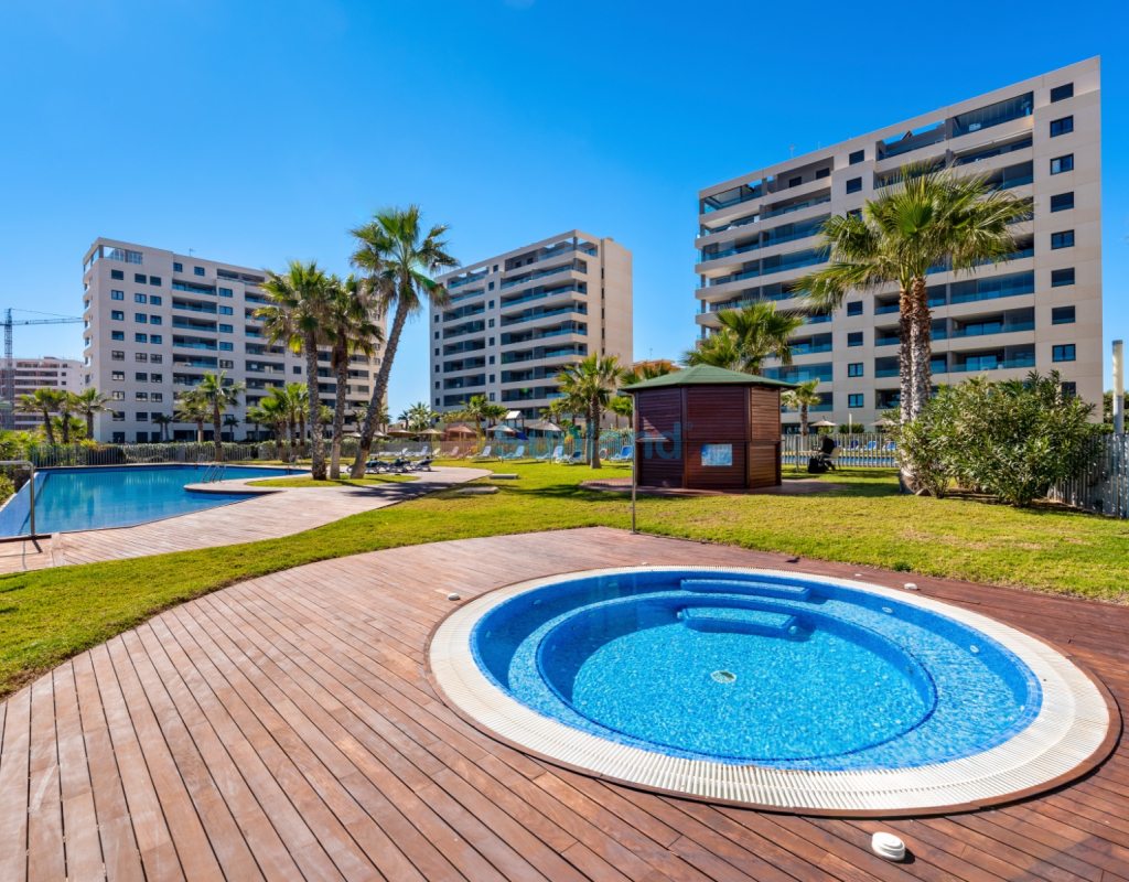 Bienvenue dans cet appartement spacieux et bien conçu de deux chambres et deux salles de bains, situé dans le très recherché Residential Panorama Park, construit en 2020. Offrant un mélange parfait de confort, de style et de commodité, cette maison est idéale pour ceux qui recherchent une retraite côtière moderne. En entrant, vous êtes accueilli par un salon et une salle à manger à aire ouverte, idéaux pour se détendre et se divertir. De grandes portes coulissantes mènent à un vaste balcon orienté au nord, apportant beaucoup de lumière naturelle et offrant une vue imprenable sur la mer. La cuisine est conçue de manière efficace avec des appareils modernes, un grand plan de travail et un accès pratique à la salle à manger, ce qui facilite la préparation et l'accueil des repas. De plus, un deuxième balcon orienté au sud est accessible depuis la cuisine, assurant une atmosphère lumineuse et aérée dans tout l'appartement. La chambre principale sert de retraite privée, avec une salle de bain attenante et un accès direct au grand balcon, parfait pour profiter du café du matin ou des couchers de soleil en soirée. Une deuxième chambre de bonne taille est située à l'extrémité opposée de l'unité, offrant intimité et flexibilité aux invités, aux membres de la famille ou à un bureau à domicile. À côté, une autre salle de bain complète assure commodité et confort. Cette propriété comprend un parking souterrain et un local de rangement privé, ajoutant une praticité supplémentaire à votre expérience de vie. Le complexe Panorama Park dispose de trois piscines, dont une chauffée, offrant un plaisir toute l'année.