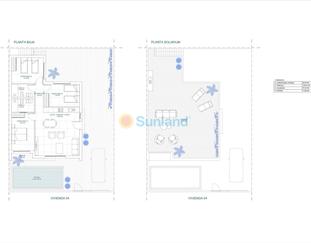 NOUVELLES VILLAS DE PLAIN-PIED À BALSICAS, MURCIA Nouvelle construction résidentielle de 6 villas individuelles de plain-pied, avec terrasse, piscine privée, parking sur le terrain et solarium avec cuisine d'été, pour profiter de toutes les heures de soleil chaque jour de l'année. Chaque propriété dispose de 3 chambres et de 2 salles de bains équipées. La propriété a été conçue avec un style contemporain et un concept ouvert, avec une cuisine entièrement équipée et un salon-salle à manger. La propriété répondra aux normes les plus élevées et sera équipée de : Cuisine entièrement meublée et équipée d'un four, d'un réfrigérateur et d'un lave-vaisselle intégrés, d'une plaque de cuisson et d'une hotte aspirante. Zone de travail en îlot de cuisine. Éclairage : à l'intérieur de la propriété (salle à manger, cuisine, couloirs et salles de bains), ainsi que dans les espaces extérieurs. Armoires doublées avec tiroirs. Salles de bains entièrement équipées avec toilettes, meuble-lavabo, miroir et douche avec panneaux de séparation. Pré-installation de la climatisation par conduits. Solarium avec cuisine d'été, avec pré-installation d'appareils électroménagers et portes coulissantes. Piscine privée avec douche extérieure. Place de parking sur le terrain. Balsicas est un lieu idéal pour les amateurs de golf et pour tous ceux qui apprécient les espaces verts comme lieux de loisirs, de beauté et de tranquillité. Son emplacement stratégique permet à la famille qui décide de vivre dans ce complexe d'avoir à portée de main tout ce que l'on peut souhaiter : un climat où le soleil brille presque toute l'année, des plages proches, la Mar Menor et ses boues naturelles aux vertus curatives prouvées. Complexe situé à 20 minutes de l'aéroport de Murcia - Corvera et à 1 heure de l'aéroport d'Alicante.