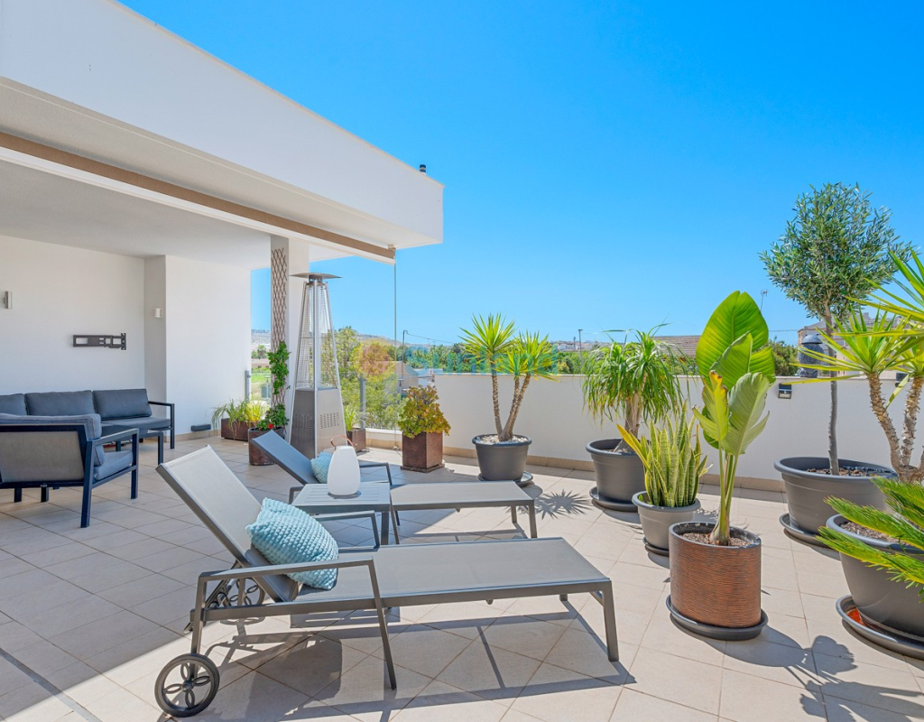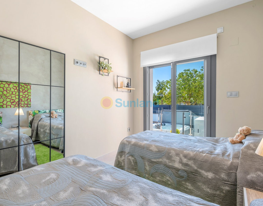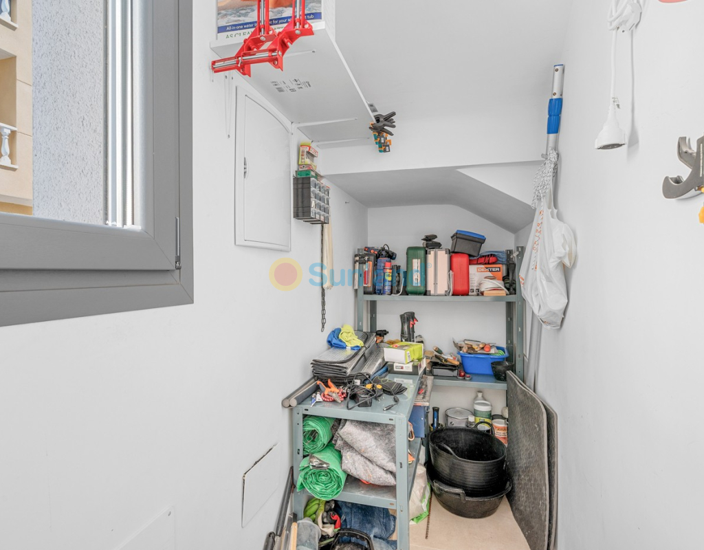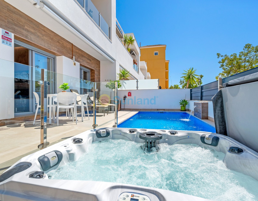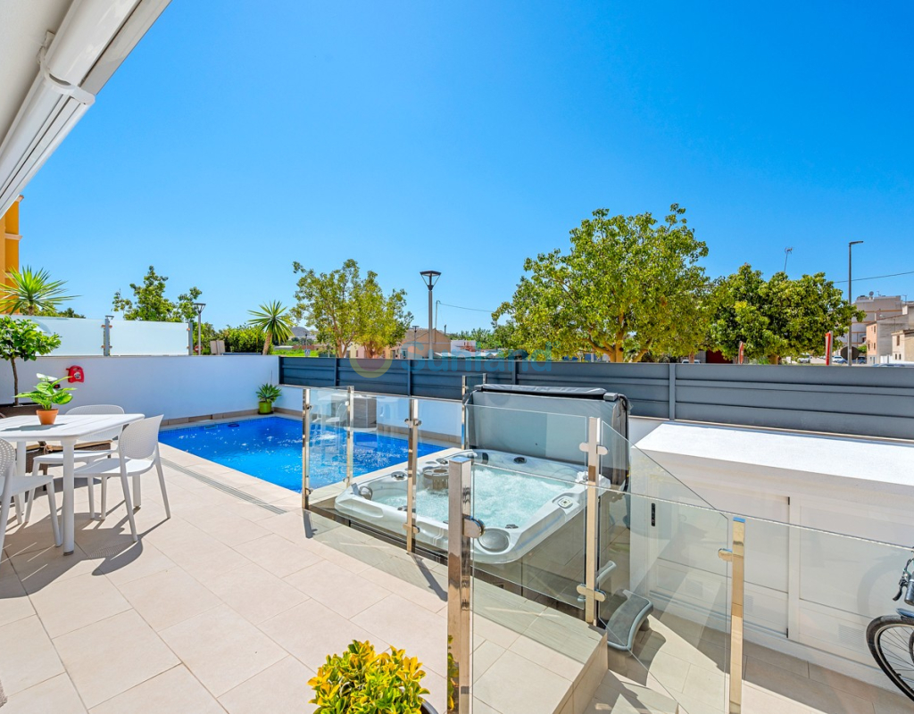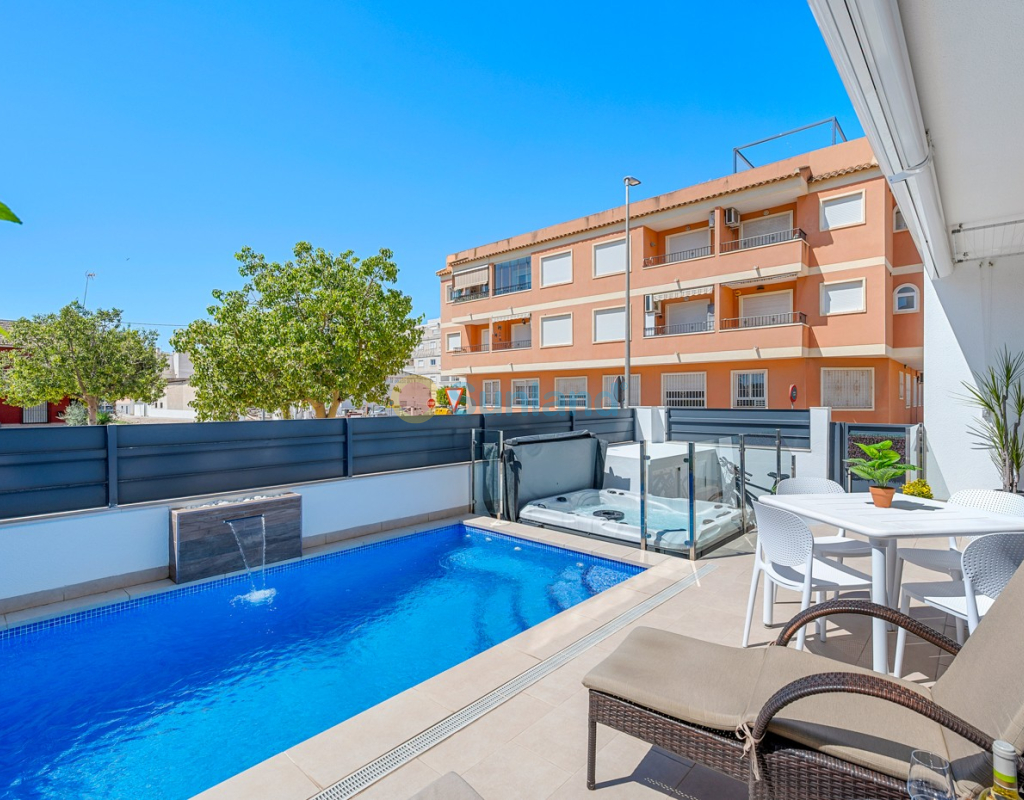 Située au cœur du charmant et authentique village espagnol de Formentera del Segura, cette maison de ville soigneusement entretenue allie confort moderne et atmosphère traditionnelle. Construite en 2018, elle fait partie d’une petite communauté exclusive de seulement quatre logements. C’est la première revente dans cette résidence, une opportunité rare et précieuse. La propriété offre trois chambres spacieuses et deux salles de bains élégantes, dont une en suite. Deux chambres se trouvent au rez-de-chaussée, rendant la maison pratique et confortable à vivre toute l’année. L’intérieur est décoré avec goût et meublé avec des pièces de haute qualité — tout est inclus dans la vente. Une véritable maison clé en main, en excellent état. À l’extérieur, vous profiterez d’une piscine privée avec cascade ainsi que d’un jacuzzi privé — l’endroit idéal pour se détendre. Le toit-terrasse offre un grand potentiel : il est déjà préparé pour l’ajout d’une troisième salle de bains privée, avec les raccordements d’eau et d’électricité en place. Avec des stores intégrés, des panneaux de confidentialité et un espace lounge couvert, la terrasse est parfaite pour recevoir ou profiter de la vue imprenable. La maison est équipée de : Système de filtration d’eau pour toute la maison (eau potable directement au robinet) Climatisation centrale au rez-de-chaussée et unité séparée à l’étage Excellente ventilation, sans problèmes d’humidité Internet fibre avec couverture jusque sur la terrasse — idéal pour télétravailler Vendue entièrement meublée. Formentera del Segura offre une communauté internationale accueillante, tout en conservant son authenticité espagnole. Cafés, boulangeries et restaurants se trouvent à quelques minutes à pied, le supermarché le plus proche est à seulement deux minutes. L’école norvégienne est à 8 minutes en voiture, et les plages dorées de Guardamar del Segura à seulement 10 minutes. Plusieurs parcours de golf, pistes cyclables et parcs naturels complètent l’environnement. Une maison vraiment spéciale dans un emplacement exceptionnel — parfaite pour ceux qui recherchent confort, style et qualité de vie sur la Costa Blanca.