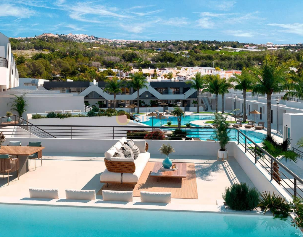 Appartements neufs avec vue dégagée à Alfaz del Pi Résidence exclusive sur la Costa Blanca Découvrez ce complexe résidentiel exclusif à Alfaz del Pi, une charmante ville de la Costa Blanca entourée par la nature méditerranéenne et proche de tous les services essentiels. Conçu pour ceux qui apprécient la tranquillité, le bien-être et le confort moderne, ce complexe propose 123 appartements neufs avec des agencements spacieux, de grandes terrasses, des espaces paysagers et l'accès à de belles piscines communes. À seulement 4 km des plages d'El Albir et d'Altea, c'est l'endroit idéal pour profiter du style de vie méditerranéen toute l'année. Appartements spacieux et lumineux Choisissez parmi des appartements de 1, 2 ou 3 chambres à coucher, dotés de salons ouverts avec cuisine intégrée, de grandes fenêtres et d'un accès direct à des terrasses orientées au sud qui inondent chaque logement de lumière naturelle. Les chambres principales sont spacieuses et finies avec des matériaux de qualité. Les options comprennent : Rez-de-chaussée avec jardins privés Étages intermédiaires avec larges terrasses Penthouses avec solariums privés Pour une touche d'exclusivité supplémentaire, il est possible d'ajouter une piscine privée ou un jacuzzi au rez-de-chaussée ou sur les solariums. Toutes les résidences disposent d'une place de garage au sous-sol ou dans le parking en surface. Caractéristiques haut de gamme et équipements collectifs Ces maisons sont construites selon des spécifications de haute qualité afin de garantir confort et style : Cuisines entièrement équipées avec plans de travail en quartz et armoires de rangement Fenêtres à double vitrage avec menuiserie à rupture de pont thermique Volets électriques dans les chambres Portes d'entrée blindées Installation complète de climatisation par conduits La communauté fermée comprend deux piscines avec accès de style plage, des jardins paysagers, des ascenseurs pouvant accueillir 8 personnes et un service de conciergerie. Alfaz del Pi : nature, sports et connectivité Situé à seulement 1,5 km du centre-ville, les résidents ont facilement accès aux commerces, restaurants et services quotidiens. Le club de sport Alfaz del Sol, à seulement 2 minutes à pied, propose des courts de tennis, des terrains de padel, de basket-ball et de futsal, une salle de sport et une atmosphère communautaire dynamique. Les amoureux de la nature apprécieront la proximité du parc naturel de Serra Gelada et de la montagne Puig Campana, tandis que les cyclistes pourront explorer certaines des routes les plus pittoresques d'Espagne. Les amateurs de golf trouveront des parcours à proximité, tels que Don Cayo Golf (6 km), Villaitana Golf (9 km) et Puig Campana Golf (12 km). L'aéroport d'Alicante est à seulement 60 km, ce qui facilite les voyages internationaux. Assurez-vous dès aujourd'hui votre nouvelle maison méditerranéenne Que vous recherchiez une résidence permanente, une maison de vacances ou un investissement intelligent, ces appartements neufs à Alfaz del Pi offrent la combinaison parfaite entre vie moderne et environnement naturel. Contactez-nous dès aujourd'hui pour organiser une visite et réserver la maison de vos rêves sur la Costa Blanca.