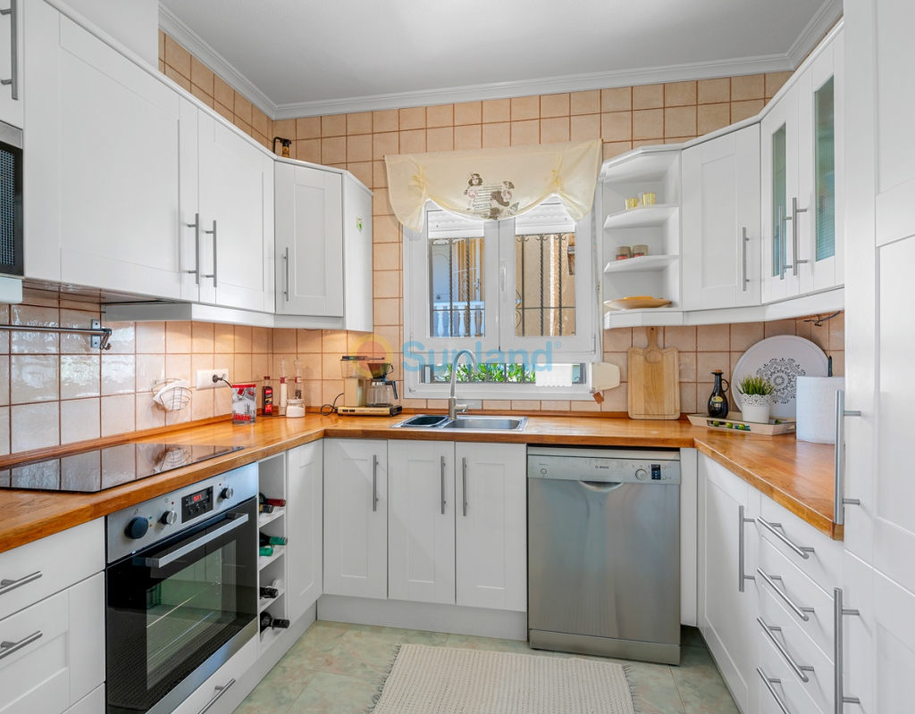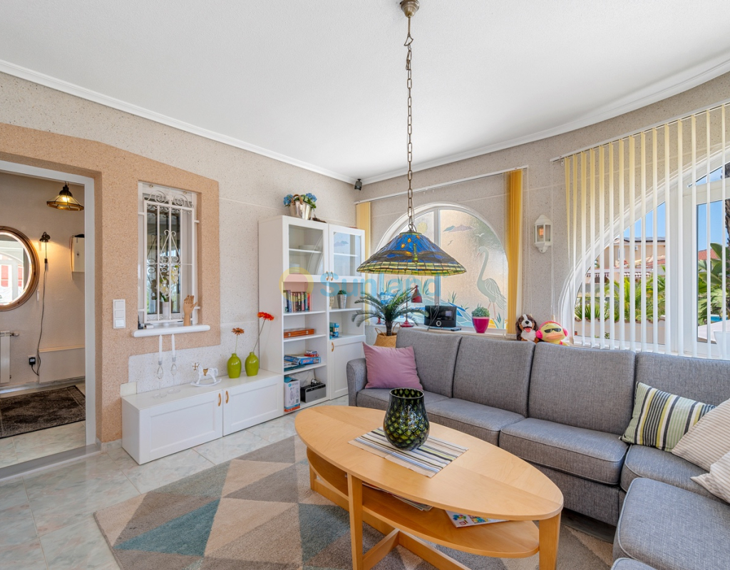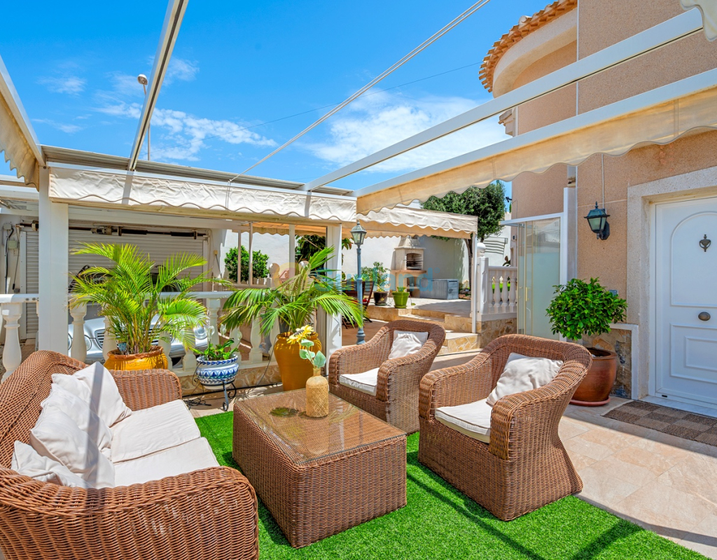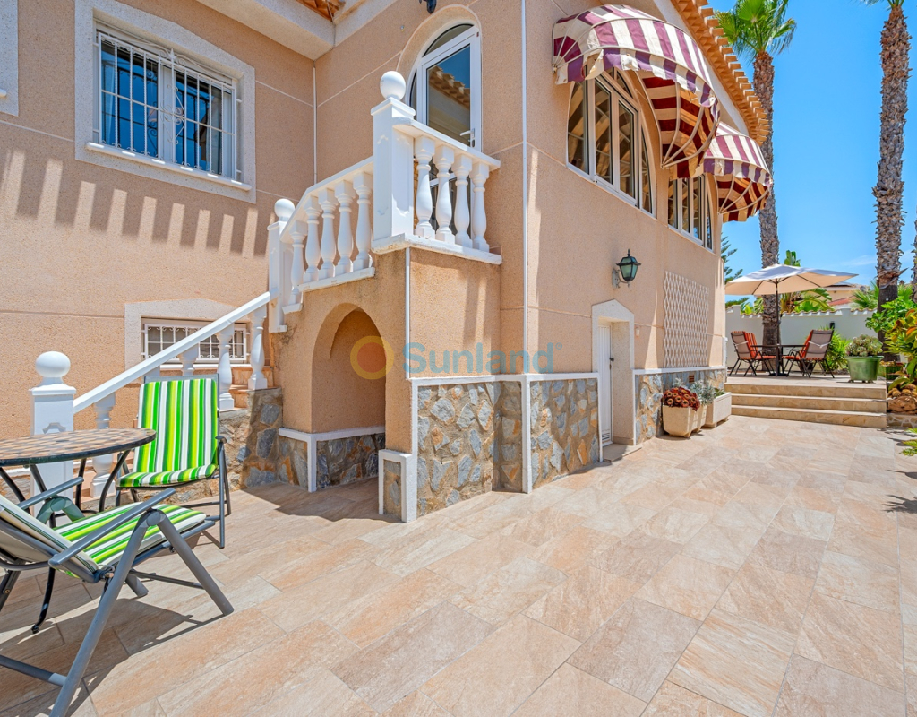 Charmante villa de style méditerranéen avec 3 chambres, située à proximité du centre de Ciudad Quesada. La villa dispose d’une surface habitable totale de 238 m² répartie sur deux niveaux : l’étage principal et un appartement indépendant au rez-de-chaussée. L’étage principal comprend deux chambres doubles et deux salles de bains, dont une attenante à la chambre parentale. On y trouve également une entrée, une cuisine ouverte, un séjour avec cheminée, une salle à manger, ainsi qu’une véranda aménagée en salon et salle à manger supplémentaire. À l’entrée de la villa se trouve une terrasse couverte et depuis la véranda, vous accédez directement à l’espace piscine. Au rez-de-chaussée se situe un appartement d’invités indépendant composé d’un salon, d’une cuisine, d’une grande chambre et d’une salle de bains. La villa est équipée du chauffage central (au gaz), de la climatisation, d’une cheminée dans le séjour, d’un système d’alarme et d’un filtre à osmose. Espace extérieurLa villa est implantée sur un terrain orienté plein sud de 500 m². Le jardin est bien entretenu avec carrelage et végétation. Vous y trouverez une piscine au sel, une douche extérieure, un carport, un espace barbecue, un débarras et plusieurs espaces de détente. Le jardin dispose d’un système d’arrosage automatique. La villa est située à seulement quelques minutes à pied de la rue principale de Ciudad Quesada où vous trouverez de nombreux services.
