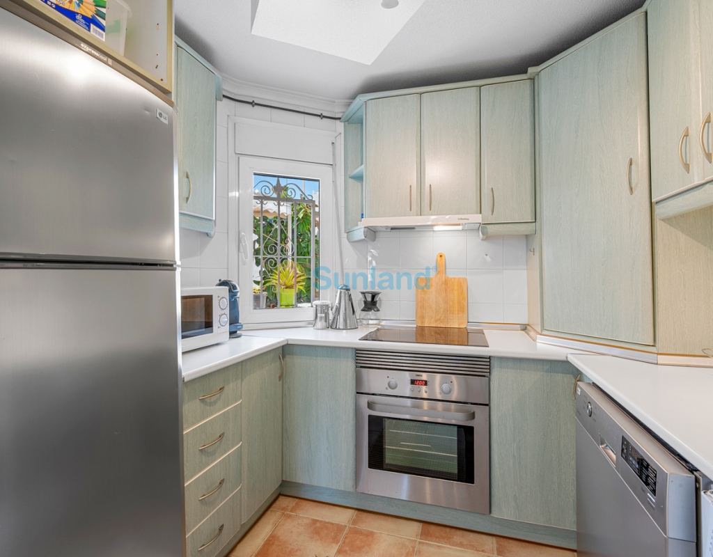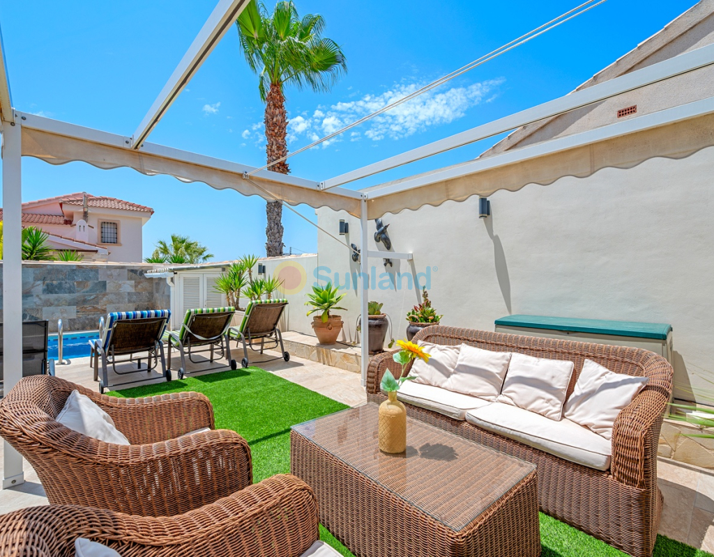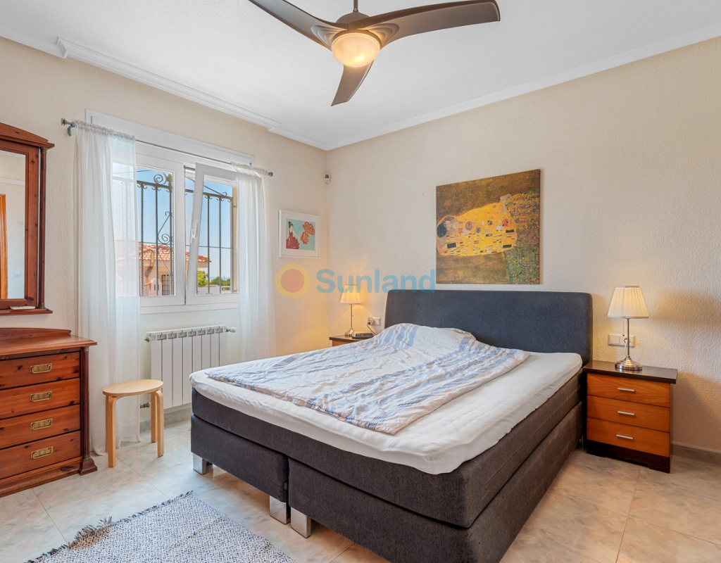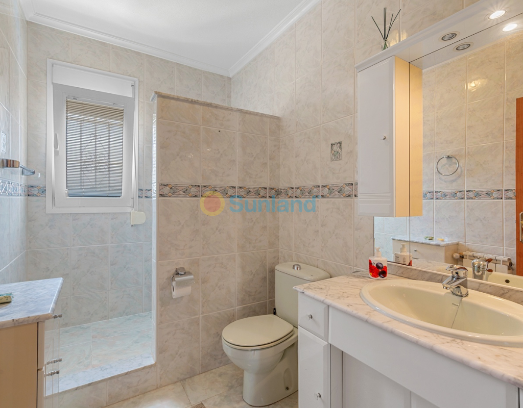 Charmante villa de style méditerranéen avec 3 chambres, située à proximité du centre de Ciudad Quesada. La villa dispose d’une surface habitable totale de 238 m² répartie sur deux niveaux : l’étage principal et un appartement indépendant au rez-de-chaussée. L’étage principal comprend deux chambres doubles et deux salles de bains, dont une attenante à la chambre parentale. On y trouve également une entrée, une cuisine ouverte, un séjour avec cheminée, une salle à manger, ainsi qu’une véranda aménagée en salon et salle à manger supplémentaire. À l’entrée de la villa se trouve une terrasse couverte et depuis la véranda, vous accédez directement à l’espace piscine. Au rez-de-chaussée se situe un appartement d’invités indépendant composé d’un salon, d’une cuisine, d’une grande chambre et d’une salle de bains. La villa est équipée du chauffage central (au gaz), de la climatisation, d’une cheminée dans le séjour, d’un système d’alarme et d’un filtre à osmose. Espace extérieurLa villa est implantée sur un terrain orienté plein sud de 500 m². Le jardin est bien entretenu avec carrelage et végétation. Vous y trouverez une piscine au sel, une douche extérieure, un carport, un espace barbecue, un débarras et plusieurs espaces de détente. Le jardin dispose d’un système d’arrosage automatique. La villa est située à seulement quelques minutes à pied de la rue principale de Ciudad Quesada où vous trouverez de nombreux services.