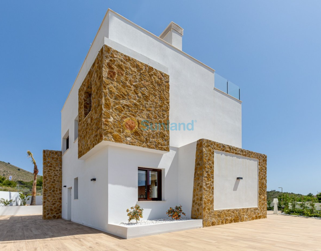 VILLAS DE NOUVELLE CONSTRUCTION À BALCON DE FINESTRAT Nouvelle construction de villas modernes à Balcon de Finestrat. Villas larges et lumineuses avec 3 chambres à coucher et 2 salles de bain, cuisine ouverte sur le salon-salle à manger, belle terrasse, jardin privé avec piscine et parking. La combinaison du bois et de la pierre naturelle rend la maison moderne et rustique à la fois. Villas situées à 10 minutes de Benidorm et à seulement 2 km de Finestrat. Le trajet jusqu'à Tierra Mitica, où vous pourrez passer de bons moments en famille, prendra 6 minutes. Cet emplacement en fait un excellent choix pour une maison de vacances. Finestrat est situé dans la région de Marina Baixa de la Costa Blanca, près de la ville voisine de Benidorm et à environ 40 kilomètres de la ville d'Alicante et de l'aéroport international. Le village est situé sur le flanc de la montagne de Puig Campana et offre de belles vues sur les montagnes, la côte et la mer Méditerranée. Benidorm se trouve à cinq minutes en voiture des propriétés et offre tous les services dont vous pourriez avoir besoin, notamment des magasins, des bars, des restaurants, des supermarchés, des banques, des pharmacies et plusieurs écoles internationales privées. À proximité des plages de Levante, Poniente et Cala de Finestrat, avec plus de 6 km de long qui sont parmi les meilleures d'Europe, récompensées par l'Union européenne avec des drapeaux bleus. Tous les services de loisirs tels que les parcs à thème d'Aqua Natura, Terra Mítica, Terra Natura, Aqualandia et Mundomar, les terrains de golf de Sierra Cortina et Villaitana, la randonnée et l'escalade à Puig Campana un cadre naturel incomparable ou la pratique de sports nautiques.
