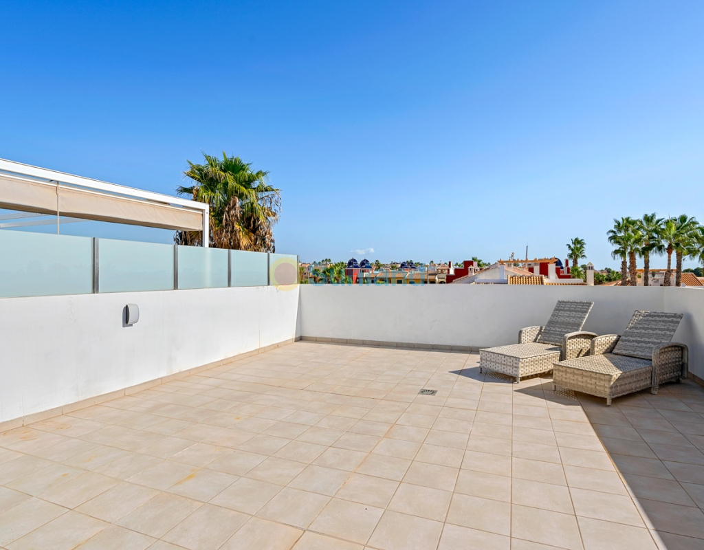 Nous vous présentons une propriété exceptionnelle – une maison mitoyenne moderne et élégante située dans l’un des quartiers les plus prisés de la Costa Blanca. Cette résidence allie parfaitement le confort du quotidien, le charme de l’architecture espagnole et le luxe d’une demeure de vacances. Au rez-de-chaussée se trouvent un spacieux et lumineux salon avec cuisine ouverte, une chambre, une buanderie ainsi qu’un accès direct à la terrasse et au jardin privé – l’endroit idéal pour savourer un café matinal ou un dîner en plein air entouré de verdure. À l’étage, deux chambres confortables disposent chacune de leur propre salle de bain et d’un balcon. Sur le toit, un grand solarium offre un espace privé parfait pour se détendre et profiter du soleil tout au long de l’année. L’ensemble résidentiel se distingue par sa haute qualité de finition : intérieurs modernes, matériaux élégants, équipements complets et mobilier soigneusement sélectionné créent une atmosphère de luxe et de confort. Les résidents profitent d’une magnifique piscine commune, entourée de jardins paysagers et d’espaces de détente propices à la vie méditerranéenne. Ciudad Quesada bénéficie d’un emplacement idéal – à proximité de grands supermarchés, restaurants, boutiques, cafés et prestigieux terrains de golf. Les plages de Guardamar et La Mata ne sont qu’à 8 km, et l’aéroport d’Alicante se trouve à environ 35 minutes en voiture. Vivre en Espagne, c’est profiter de plus de 300 jours d’ensoleillement par an, d’un rythme de vie paisible, d’une gastronomie exceptionnelle et d’une communauté internationale accueillante. Cette maison représente la parfaite combinaison de style, de qualité et de confort, idéale comme résidence principale ou comme investissement locatif rentable.