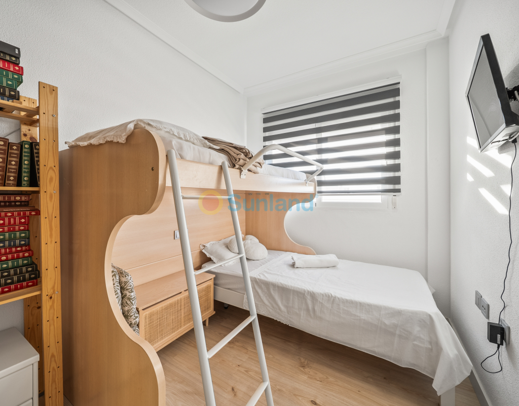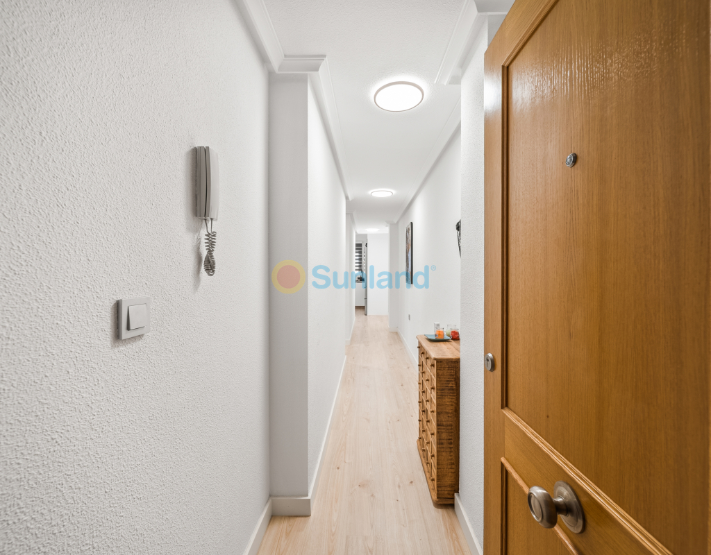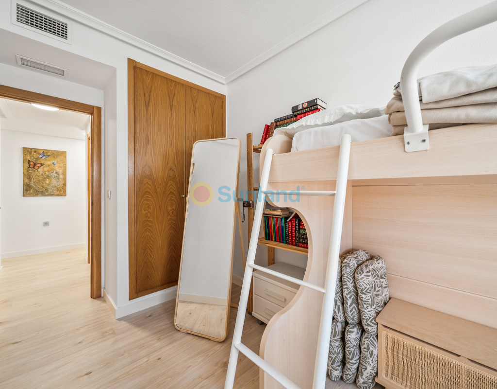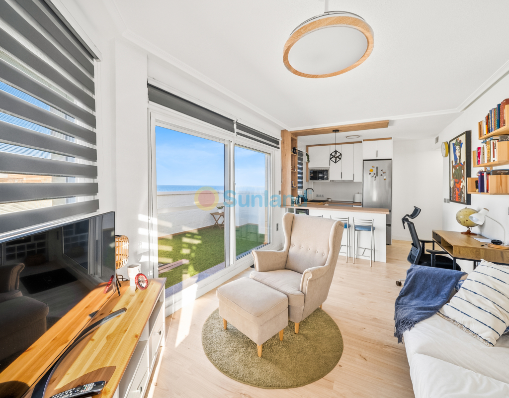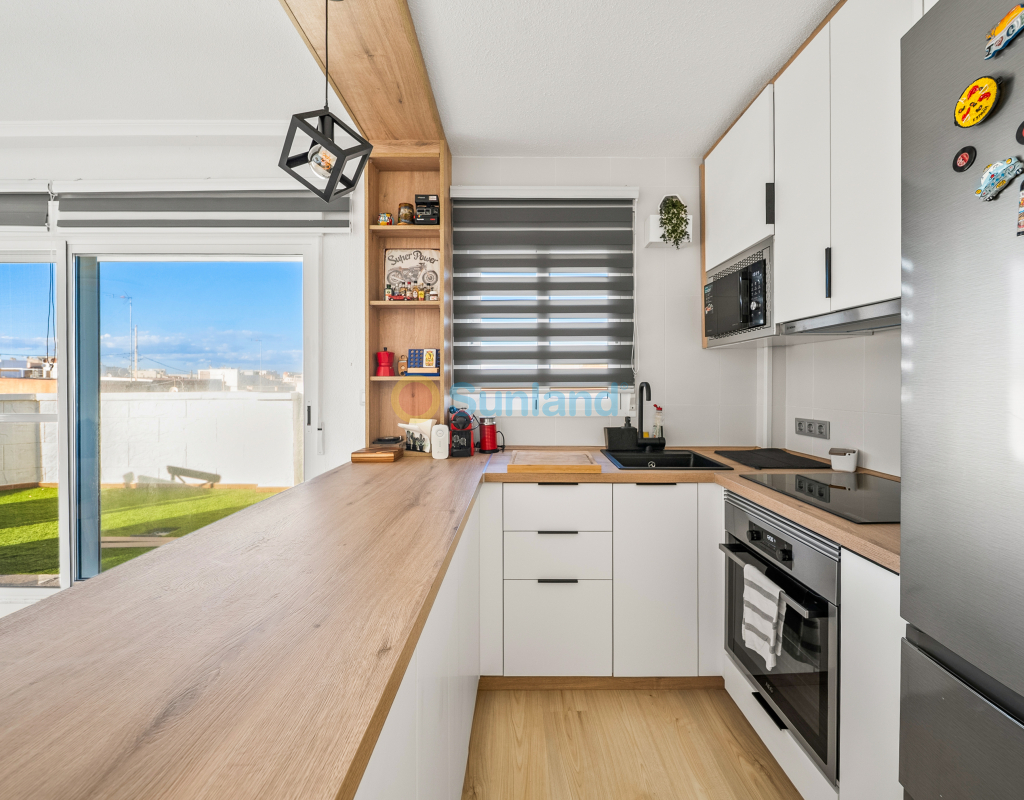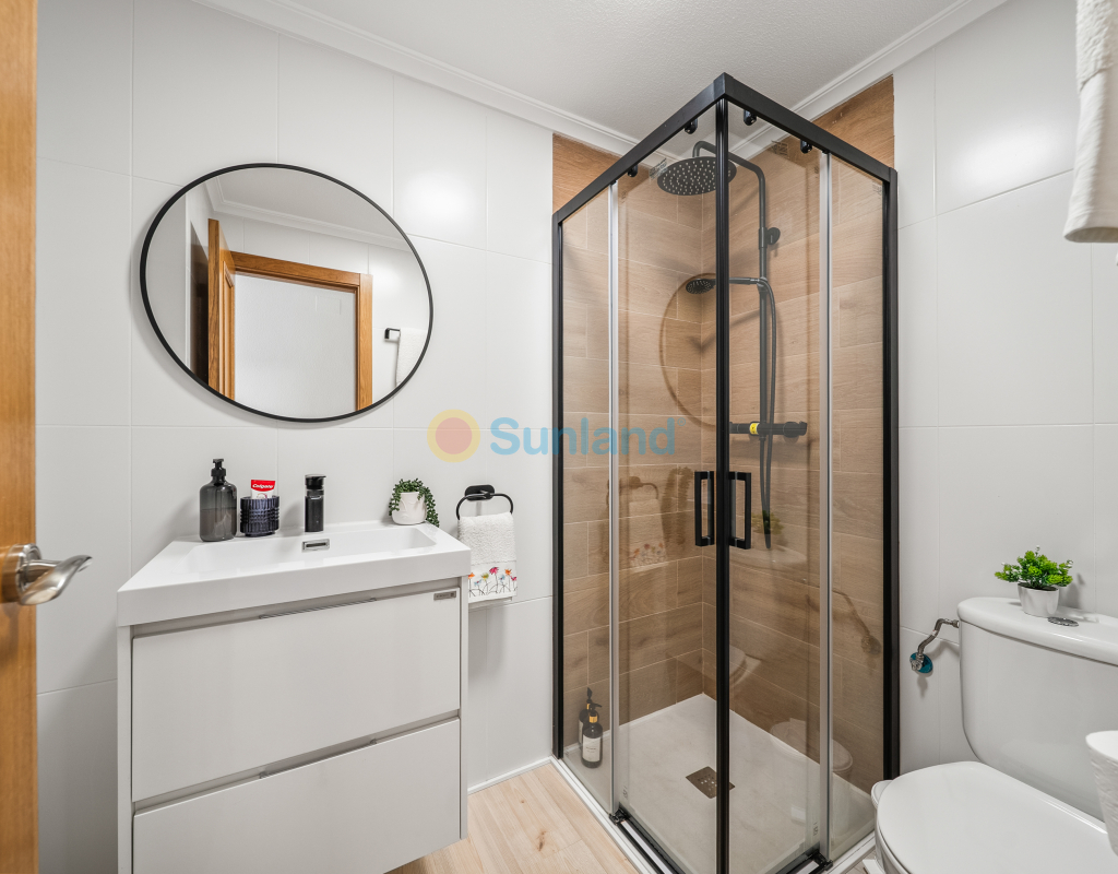 Penthouse d’angle rénové avec vue sur la mer à La Mata. Penthouse situé au 5ᵉ étage, récemment rénové et à seulement 50 mètres de la plage de La Mata. Le logement dispose de 90 m² construits et d’une grande terrasse de 45 m² avec vue sur la mer. Il comprend 2 chambres, 2 salles de bain, une cuisine ouverte et un salon lumineux avec accès direct à la terrasse. Vendu entièrement meublé et équipé, avec climatisation et orientation ouest. Caractéristiques principales : 2 chambres 2 salles de bain 90 m² construits Terrasse de 45 m² avec vue sur la mer Cuisine ouverte Climatisation Orientation ouest 5ᵉ étage Meublé Immeuble avec ascenseur Charges annuelles : IBI : 250 € Communauté : 400 € Emplacement : À 50 m de la plage de La Mata À 50 m des bars et restaurants À 100 m du supermarché À 500 m du parc naturel Laguna Salada de La Mata