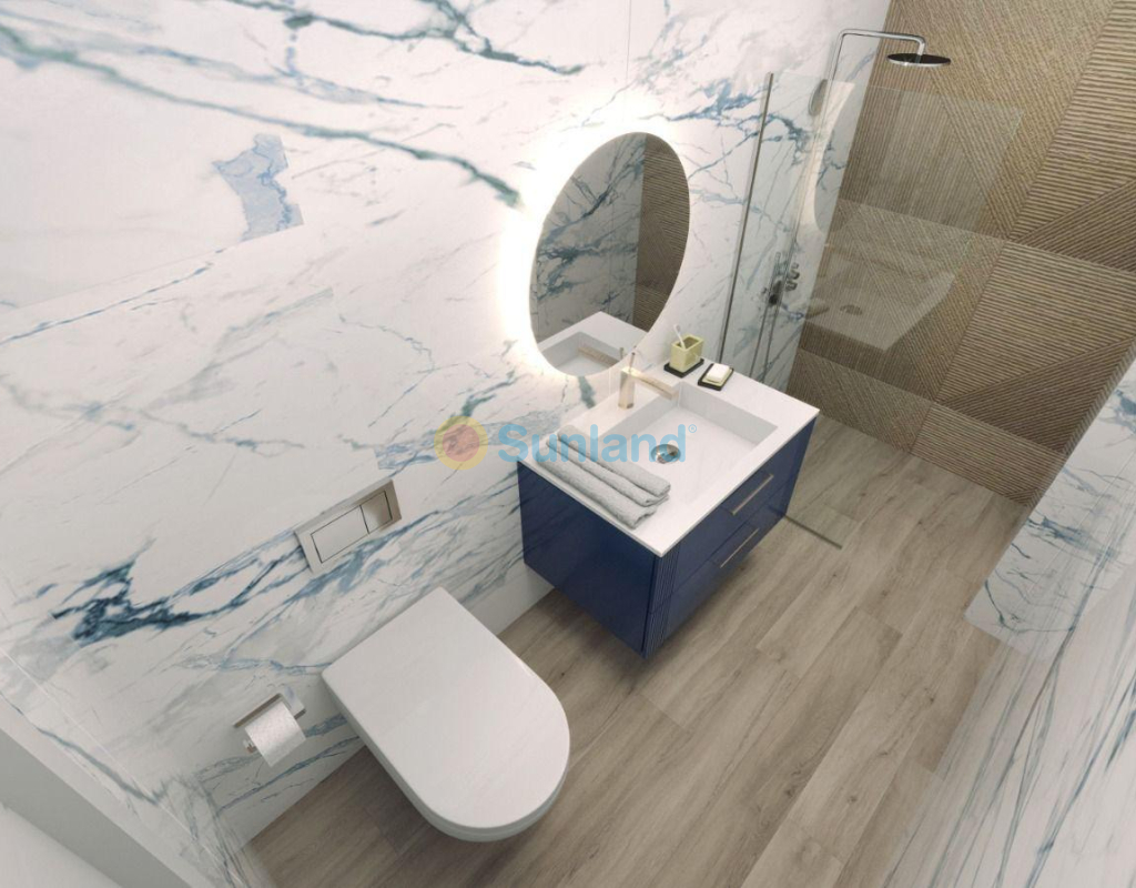 Appartements modernes neufs dans le centre de Torrevieja, Costa Blanca Complexe résidentiel exclusif avec équipements haut de gamme Découvrez un projet immobilier haut de gamme comprenant 35 appartements modernes au cœur de Torrevieja. Proposant des agencements de 1, 2 ou 3 chambres et 2 ou 3 salles de bains, cette résidence comprend également des penthouses de luxe avec solariums privés. Conçue pour offrir confort et élégance, cette communauté allie une architecture contemporaine à des finitions de haute qualité et des équipements communs exceptionnels. Emplacement privilégié dans le centre de Torrevieja Situé à seulement 600 mètres de la plage d'Acequion, ce complexe bénéficie d'un emplacement privilégié à Torrevieja. Avec des supermarchés, des restaurants, des services médicaux, des magasins et les transports publics à quelques minutes à pied, c'est le choix idéal pour ceux qui recherchent un style de vie méditerranéen confortable à proximité de tout. Torrevieja est célèbre pour son climat méditerranéen doux, ses belles plages de sable et ses promenades en bord de mer animées, ce qui en fait une destination de choix sur la Costa Blanca. Des installations de style resort pour le bien-être et la détente Le bâtiment comprend une gamme exceptionnelle d'équipements communs. Au rez-de-chaussée, vous trouverez une piscine chauffée, un espace club social et une salle de sport entièrement équipée. Le solarium sur le toit offre une véritable oasis de détente avec des chaises longues, un sauna finlandais, un espace barbecue et un mini jacuzzi. Des escaliers et un ascenseur mènent au toit, offrant confort et accessibilité à tous les résidents. Des logements de haute qualité au design contemporain Ces appartements neufs disposent de cuisines ouvertes de style américain intégrées au salon, de terrasses spacieuses, d'armoires encastrées et de cuisines entièrement équipées avec des appareils électroménagers. Les salles de bains comprennent des meubles, des parois de douche et le chauffage au sol pour un confort maximal. Il y a également une pré-installation pour la climatisation gainable. Un parking souterrain et des débarras sont disponibles en option moyennant un supplément. Entouré par la nature et la beauté du littoral Torrevieja est célèbre pour ses lagunes salées naturelles et ses parcs naturels protégés. Le parc naturel de La Mata et Torrevieja est situé à proximité de la ville et offre de magnifiques sentiers de randonnée et de superbes lacs salés roses et verts. Cet environnement unique permet un mode de vie sain et offre des paysages à couper le souffle. Distances par rapport aux principaux points d'intérêt Plage d'Acequion 0,6 km Port de Torrevieja 1,5 km Parc naturel de La Mata 4 km Golf de Villamartin 8 km Aéroport d'Alicante 45 km Aéroport de Murcie 60 km Vivez le style de vie méditerranéen Ne manquez pas l'occasion d'acquérir une maison moderne dans l'une des villes côtières les plus prisées d'Espagne. Contactez-nous dès aujourd'hui pour organiser une visite et réserver votre place dans ce nouveau programme immobilier exceptionnel.