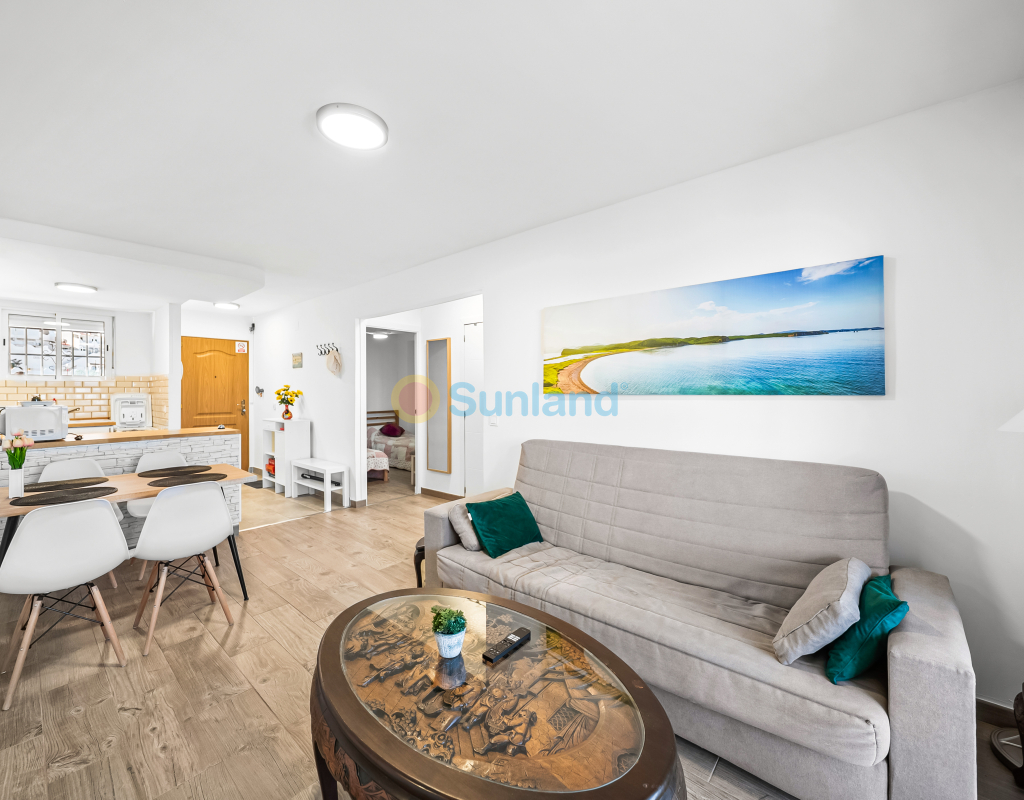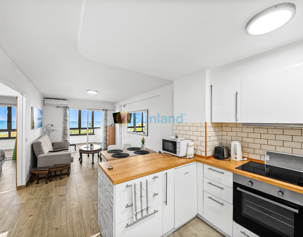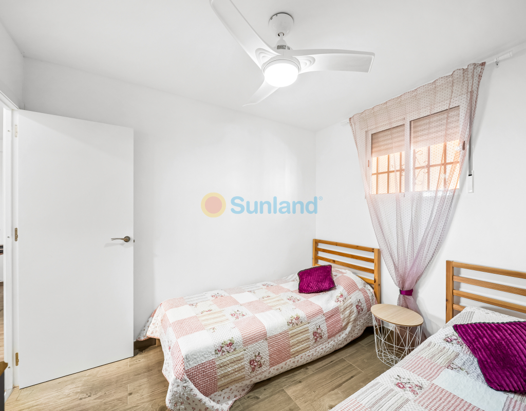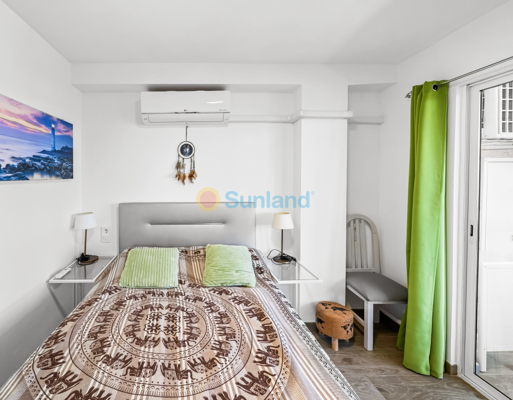 Appartement rénové avec vue frontale sur la mer à Cabo Cervera, Torrevieja. Appartement situé au deuxième étage avec orientation est et vue dégagée sur la mer, à seulement 300 mètres de la plage de Cabo Cervera. Il comprend 2 chambres, 1 salle de bain, une cuisine entièrement équipée et une terrasse vitrée de 15 m². Vendu meublé, avec climatisation, licence touristique et place de parking communautaire. Possibilité d’acquérir un accès à la piscine communautaire de l’immeuble voisin. Caractéristiques principales 2 chambres 1 salle de bain 63 m² construits Terrasse de 15 m² avec vue frontale sur la mer Deuxième étage Cuisine entièrement équipée Meublé Climatisation Licence touristique Parking communautaire Orientation est Frais annuels IBI : 190 € Charges de copropriété : 260 € Emplacement 300 m de la plage de Cabo Cervera 200 m des bars, restaurants et chiringuitos 700 m du parc Molino del Agua 800 m de l’école 900 m du supermarché 5 min en voiture du centre de Torrevieja