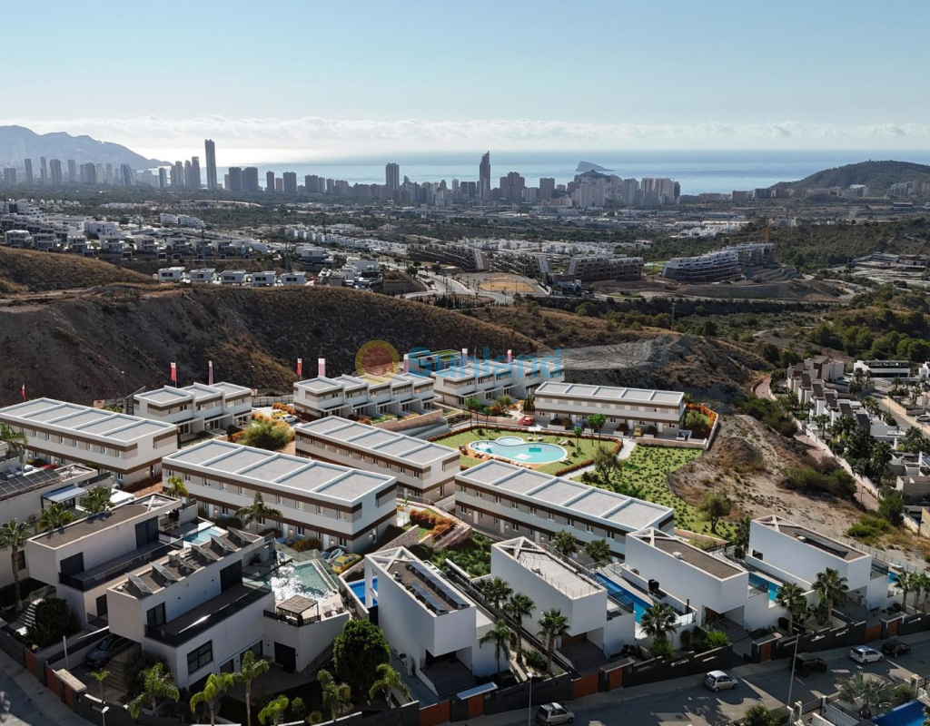 Maisons de ville modernes de 3 chambres à vendre à Balcon de Finestrat, Costa Blanca Maisons contemporaines dans un emplacement méditerranéen privilégié Ce nouveau complexe résidentiel de maisons de ville comprenant 3 chambres, 2 salles de bains et 1 WC invités est situé à Balcon de Finestrat, un quartier paisible et bien entretenu de la Costa Blanca. À quelques minutes de Benidorm et à proximité du terrain de golf Puig Campana, cet emplacement offre un équilibre idéal entre nature, mer et services essentiels. La région est réputée pour ses magnifiques paysages montagneux, son accès facile aux zones de loisirs et son climat agréable tout au long de l'année. Design moderne avec des intérieurs lumineux et fonctionnels Les maisons de ville présentent un agencement moderne et ouvert. Le rez-de-chaussée comprend une cuisine spacieuse, un coin repas et un salon baignés de lumière naturelle, ainsi que des toilettes pour invités. À l'étage, les chambres doubles et les salles de bains entièrement équipées offrent confort et intimité à toute la famille. Certaines unités comprennent un sous-sol de 50 m² avec une pré-installation pour une salle de bains supplémentaire et un espace ouvert que les propriétaires peuvent personnaliser, avec un accès direct au jardin. Des espaces extérieurs conçus pour la vie méditerranéenne Chaque propriété dispose de terrasses spacieuses, idéales pour profiter de la vue sur la nature environnante et du climat ensoleillé de la Costa Blanca. La communauté dispose d'une piscine, de jardins paysagers et d'espaces de détente en plein air, créant un environnement paisible pour les résidents. Finitions de haute qualité et efficacité énergétique Les maisons comprennent des salles de bains entièrement équipées avec meubles, miroirs et parois de douche, une installation complète de climatisation, des panneaux solaires pour l'alimentation électrique, une porte d'entrée blindée et un certificat énergétique A. Les sous-sols sont pré-équipés pour l'installation de climatiseurs split. Excellente connectivité et services à proximité Les plages de sable de Benidorm et Villajoyosa sont à seulement 4 km, et le centre commercial La Marina, qui propose des restaurants, des boutiques et des divertissements, est à quelques minutes en voiture. Vous trouverez à proximité des écoles internationales, des supermarchés et toutes les commodités quotidiennes. Distances utiles : aéroport d'Alicante à 40 km, parcours de golf Puig Campana à 1 km, plages de Benidorm à 4 km, port de Villajoyosa à 9 km. Un style de vie confortable et pratique Chaque propriété comprend une ou deux places de parking extérieures privées, garantissant praticité et confort tout au long de l'année. Contactez-nous dès aujourd'hui pour organiser une visite et acquérir votre nouvelle maison à Balcon de Finestrat.
