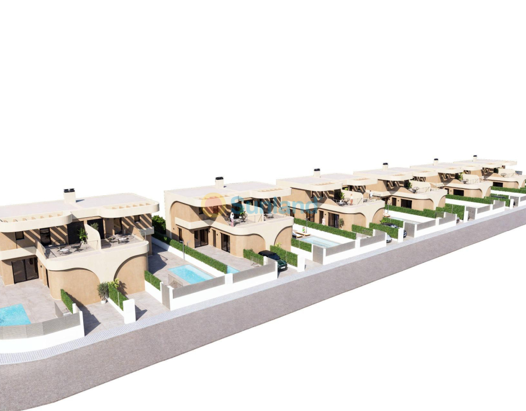 Villas jumelées modernes à Daya Nueva, au design contemporain et très bien desservies Une vie paisible à Daya Nueva Ces nouvelles villas jumelées sont situées dans la charmante ville de Daya Nueva, au sud d'Alicante. Réputée pour son atmosphère rurale paisible, Daya Nueva offre un cadre de vie confortable, entouré de vergers et de paysages ouverts, tout en étant à quelques minutes en voiture des zones côtières animées de la Costa Blanca. La ville offre tous les services essentiels, des restaurants et des commerces de proximité, et se trouve à seulement 10 km des plages de La Marina del Pinet et Guardamar del Segura. L'aéroport international d'Alicante est à environ 25 km, ce qui le rend très accessible pour les propriétaires internationaux. Les amateurs de golf apprécieront la proximité du golf La Marquesa, à 12 km, et du golf Vistabella, à 15 km. Une architecture élégante et une construction de qualité Ce développement exclusif a été conçu avec une grande attention aux détails, incorporant un style architectural lumineux, frais et moderne. Les lignes courbes de la façade créent un look contemporain unique, tandis que les finitions de haute qualité garantissent un confort durable. Aménagement fonctionnel sur deux étages Chaque villa est répartie sur deux niveaux dans le nouveau quartier résidentiel de Daya Nueva, à quelques pas du centre-ville. Le rez-de-chaussée comprend un salon et une salle à manger avec une cuisine ouverte, un accès direct au jardin, une chambre avec salle de bains attenante et dressing, des toilettes pour invités et une place de parking privée sur le terrain. Une piscine privée peut être ajoutée moyennant un supplément. L'étage supérieur comprend deux autres chambres, une salle de bains complète et une terrasse ouverte de 19 m² offrant une vue agréable. Confort et équipements modernes Les maisons sont équipées de salles de bains aménagées comprenant des meubles, des miroirs et des parois de douche. Les équipements supplémentaires comprennent la pré-installation de la climatisation, des cuisines équipées, des volets électriques dans les chambres, un éclairage LED intérieur et extérieur et trois panneaux solaires photovoltaïques. Emplacement idéal pour la vie côtière et rurale Les villas sont situées dans un nouveau quartier résidentiel calme, avec un accès facile à l'autoroute A 70. Les plages, les terrains de golf, les marinas et les villes voisines sont tous à proximité, ce qui en fait un emplacement idéal pour les vacances et pour y vivre toute l'année. Contactez-nous dès aujourd'hui pour planifier une visite et réserver votre nouvelle maison à Daya Nueva.