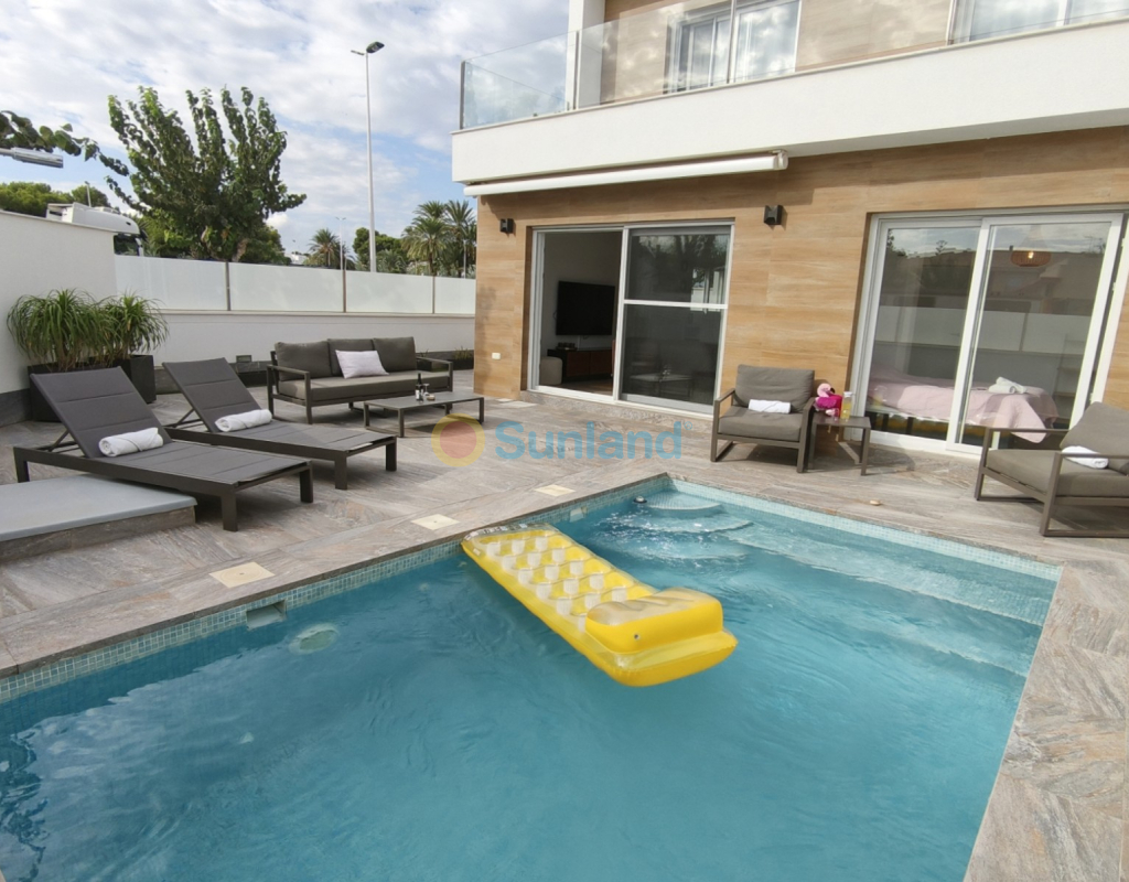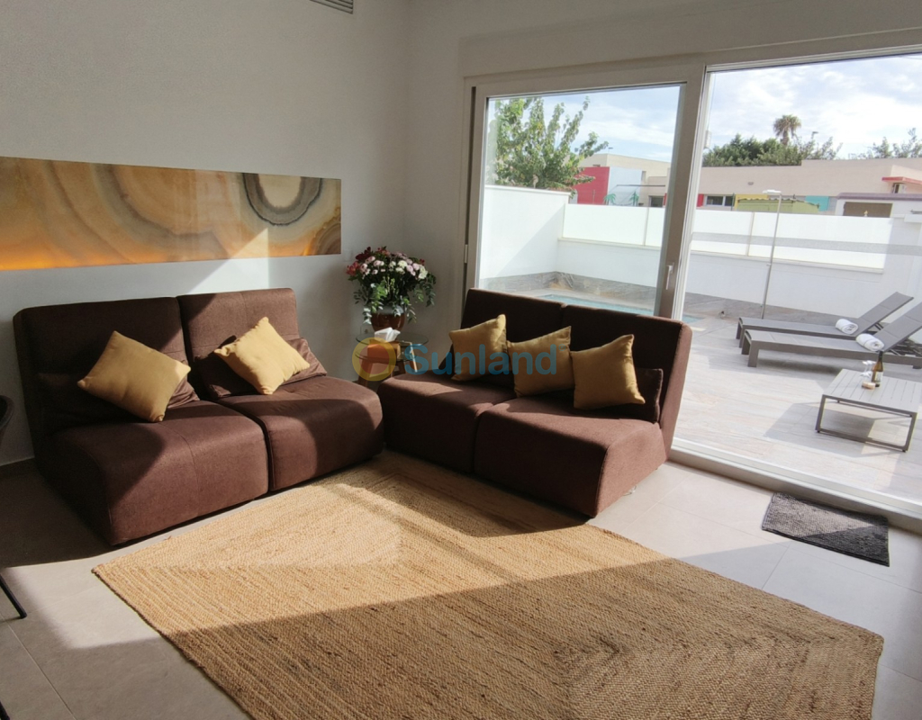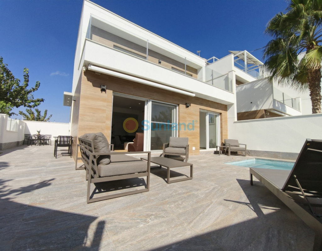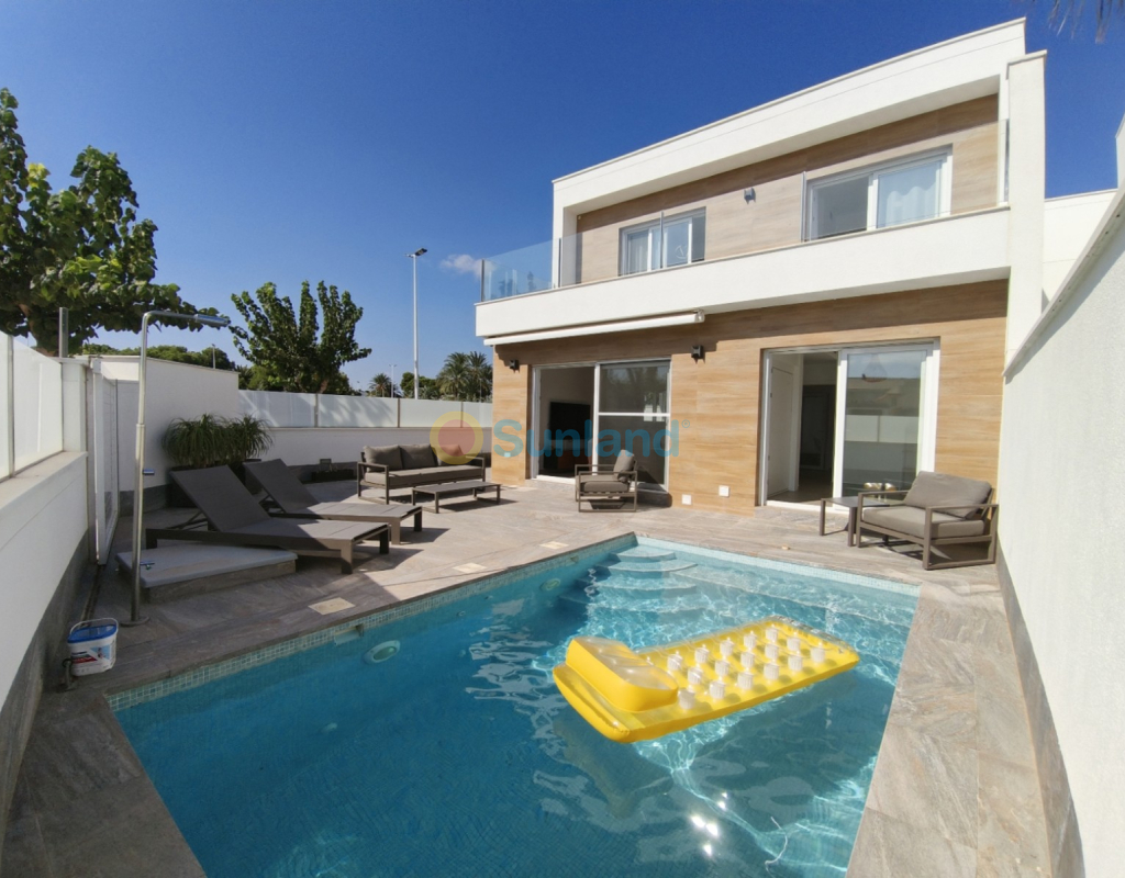 Cette superbe villa d'angle à San Pedro del Pinatar allie design moderne , lignes élégantes et matériaux haut de gamme dans un emplacement privilégié à seulement 2 km de la mer . Construite il y a à peine quatre ans , la propriété est en parfait état et prête à accueillir ses nouveaux occupants pour profiter pleinement du style de vie méditerranéen. La villa offre une surface habitable de 114,10 m² sur un terrain d'angle de 177,86 m² , répartie dans des pièces spacieuses, lumineuses et parfaitement agencées. Elle comprend trois chambres.   et deux salles de bains , toutes baignées par la chaleur naturelle que procure son orientation sud . À l'extérieur, cette villa dispose d'une superbe piscine privée de 3 x 5 mètres avec jacuzzi , intégrée à une vaste terrasse et équipée d'un store électrique pour un confort optimal toute l'année. À l'étage, deux des chambres offrent un accès direct à un solarium privé , un havre de paix idéal pour se détendre au soleil en toute intimité. La propriété comprend également une buanderie et un espace de rangement sous l'escalier , conçus pour un rangement impeccable sans compromis sur l'esthétique. Son architecture contemporaine, ses finitions haut de gamme et sa proximité avec les commodités et les plages de la Costa Cálida font de cette villa un choix exceptionnel pour ceux qui recherchent un style de vie alliant design, confort et fonctionnalité . Prêt à réaliser votre rêve espagnol ? Contactez-nous et découvrez cette magnifique propriété. Climat: Le climat de la Costa Cálida, souvent considéré comme le meilleur d'Europe, favorise un mode de vie sain et convivial, caractérisé par des activités de plein air, des infrastructures sportives et de loisirs modernes, et des villes touristiques dynamiques et cosmopolites qui se distinguent par leurs prestations haut de gamme, parfois exclusives et luxueuses. L'ensemble de ces établissements s'adresse à une clientèle exigeante en quête de qualité et d'un service personnalisé. La Costa Cálida bénéficie de plus de 300 jours d'ensoleillement par an. Un paradis parfaitement desservi par les transports en commun vers toute l'Europe. Autour: S'il est un endroit où le soleil brille toute l'année, c'est bien la région de Murcie. Une région au climat doux et aux eaux calmes qui caressent ses côtes, où le bleu cristallin d'un ciel limpide et lumineux imprègne chaque recoin, accompagnant le quotidien de ses habitants. La Costa Cálida continue d'attirer des gens de toute l'Europe et d'autres parties du monde, car elle offre une qualité de vie unique dans un cadre magnifique sur les rives du Mar Menor, entourée de montagnes et d'une végétation luxuriante. Outre les parcours de golf et les ports de plaisance qui jalonnent la côte, la région offre également la possibilité de skier dans les stations voisines de la Sierra Nevada, de Javalambre ou de Valdelinares , véritables paradis pour les amateurs de sports d'hiver aux paysages naturels époustouflants. La Costa Cálida propose un art de vivre exceptionnel, où les plus belles plages et criques de la Méditerranée se conjuguent à un intérieur montagneux parsemé de villages abritant un patrimoine culturel et historique unique au monde. Carthagène , avec ses bâtiments modernistes bordant les avenues qui descendent vers le port et flanquent le théâtre romain, est une ville de contrastes. Elle s'ouvre sur un port naturel formé par la baie et est entourée d'enclaves naturelles telles que Calblanque à l'est et Cabo Tiñoso à l'ouest. La ville est un port de transit pour les grands navires de croisière qui viennent explorer la région et apprécier sa culture, sa gastronomie et ses festivals, reconnus d'intérêt touristique international. Murcie , la capitale la plus accueillante. Murcie a connu son âge d'or durant les périodes baroque et contemporaine, lorsqu'elle regorgeait de palais et d'églises ornées de magnifiques retables. La façade de la cathédrale, l'un des plus beaux exemples d'architecture baroque espagnole, date de cette même époque. Aujourd'hui, c'est une ville dynamique, riche en services et en vie, facilement accessible grâce à son vaste réseau autoroutier la reliant aux différentes villes de la région ainsi qu'aux provinces voisines. Elle compte de nombreux hôpitaux, publics et privés, offrant un excellent réseau de soins de santé et de services sociaux. Les eaux calmes du Mar Menor caressent les plages de cette vaste lagune marine unique, idéale pour les sports nautiques et la baignade en famille. Au-delà de la digue qui la sépare de la mer s'étend la Méditerranée, avec ses longues plages le long de La Manga del Mar Menor. On y trouve deux ports de plaisance : Lo Pagán, un havre sur le Mar Menor pour une navigation paisible et abritée, et San Pedro del Pinatar, près des marais salants naturels, d'où l'on peut naviguer le long de la côte méditerranéenne. Une éducation de qualité à votre portée. À proximité se trouvent deux écoles britanniques, King's College et El Limonar, où des élèves espagnols et européens étudient ensemble dès leur plus jeune âge. Deux universités, l'Université de Murcie et l'UCAM (établissement privé), complètent l'offre éducative de la ville. Nous avons un cadeau pour vous : Notre agence immobilière vous accompagne dans la transformation de votre nouveau bien en la maison de vos rêves grâce à une visite technique gratuite de notre bureau d'études. Notre équipe vous conseillera sur les améliorations possibles et les options de décoration. Entièrement gratuit ! IMPORTANT! Sachez que nos services n'augmentent JAMAIS le prix final du bien pour nos clients . Notre expérience du secteur fait de nous votre allié, un conseiller de confiance qui vous aidera à choisir la maison de vos rêves dans le meilleur quartier, vous informera sur le prix du marché des biens qui vous intéressent, la