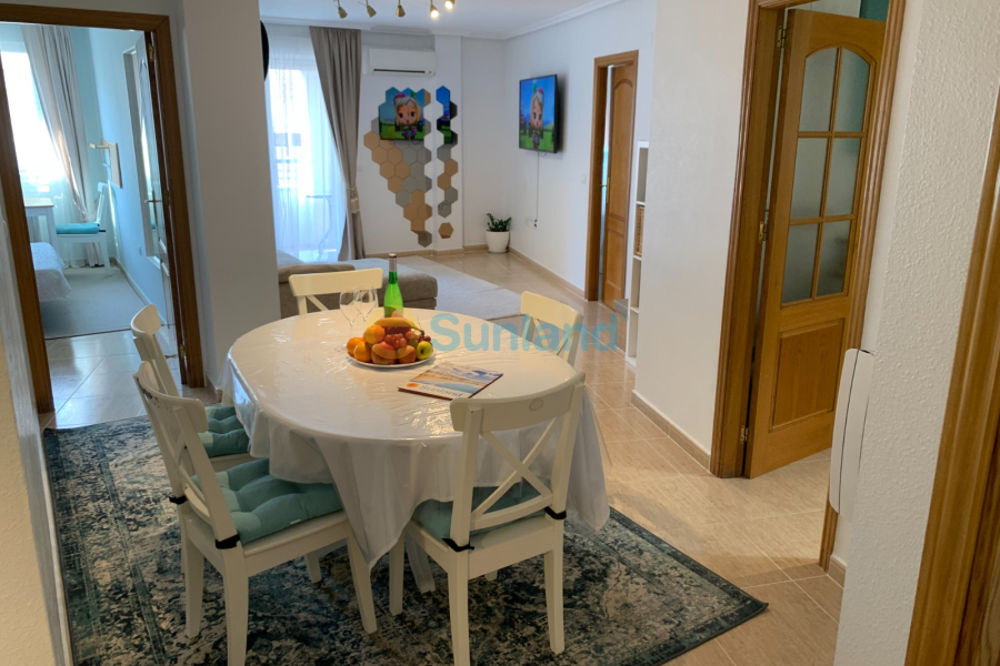 A vendre appartement de trois chambres et deux salles de bain. Très ensoleillé et confortable, bon état. Il est livré avec tout ce qui est entièrement meublé, cuisine indépendante, équipée d'appareils électroménagers. Climatisation installée (chaud/froid), radiateurs de chauffage. Un salon spacieux avec accès à la terrasse. Toutes les chambres ont une grande taille.