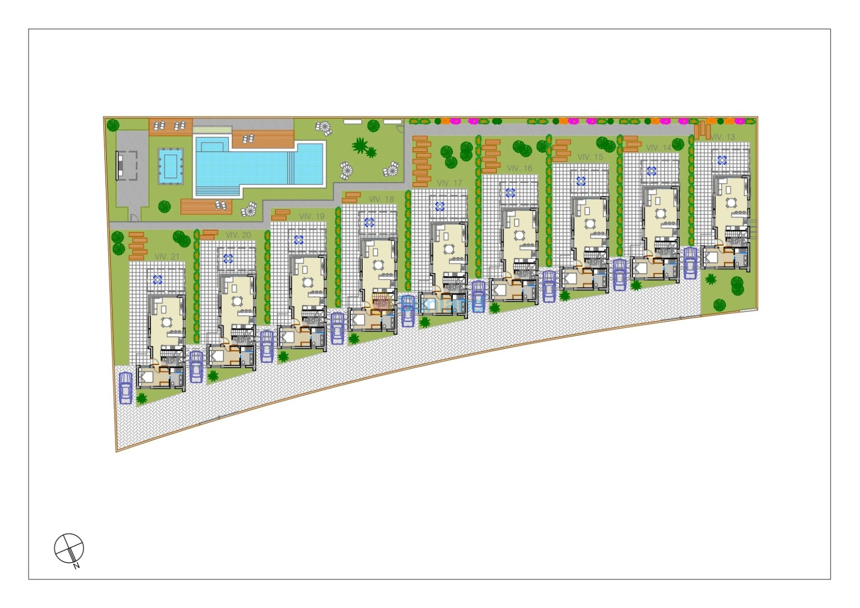 Er zijn 9 gemeenschapsvilla's met 3 slaapkamers en 3 badkamers, een eigen tuin, een zonneterras en een eigen parkeerplaats, evenals een gemeenschappelijke ruimte voor de villa-eigenaren met een gedeeld zwembad, jacuzzi, barbecue en lounge.